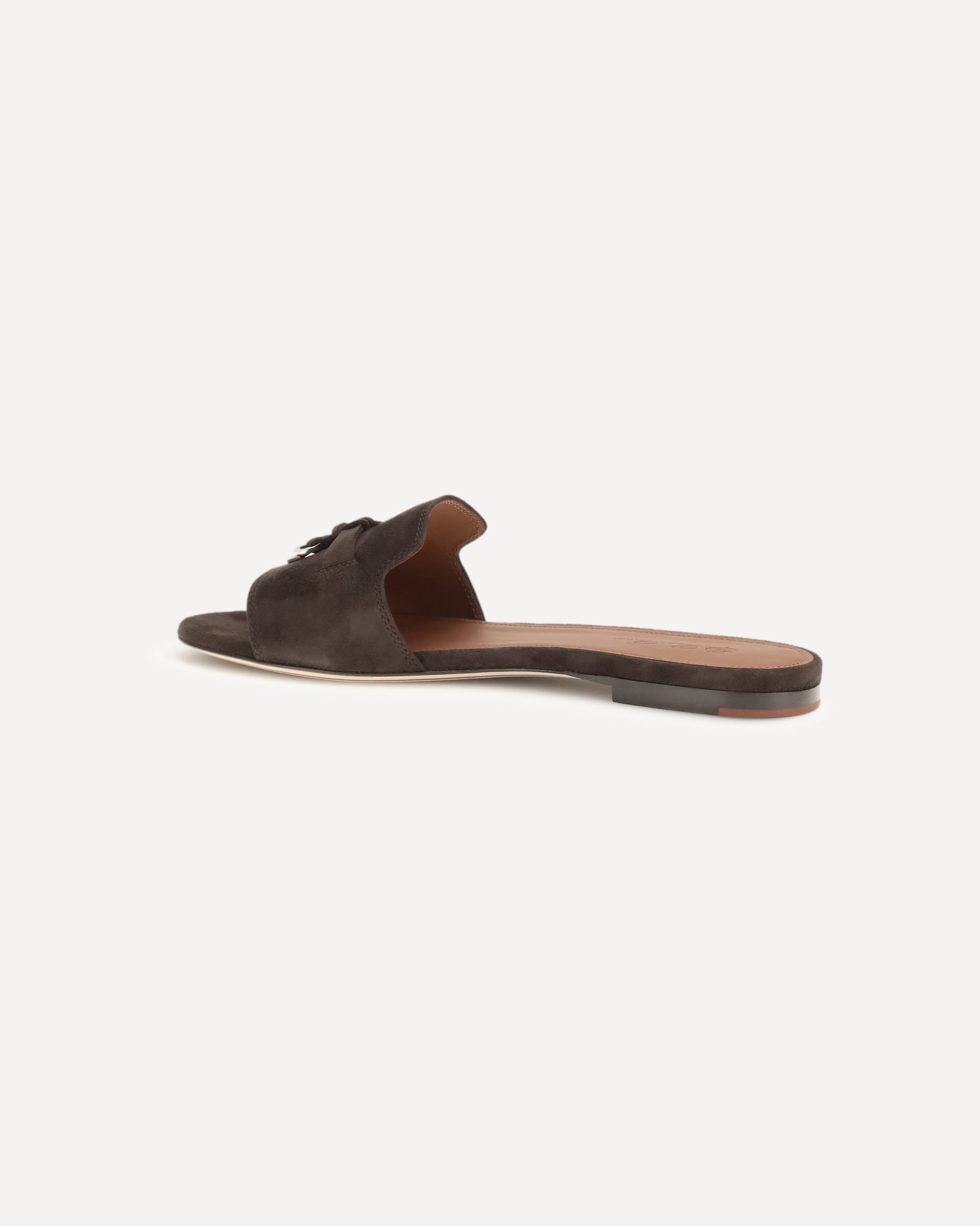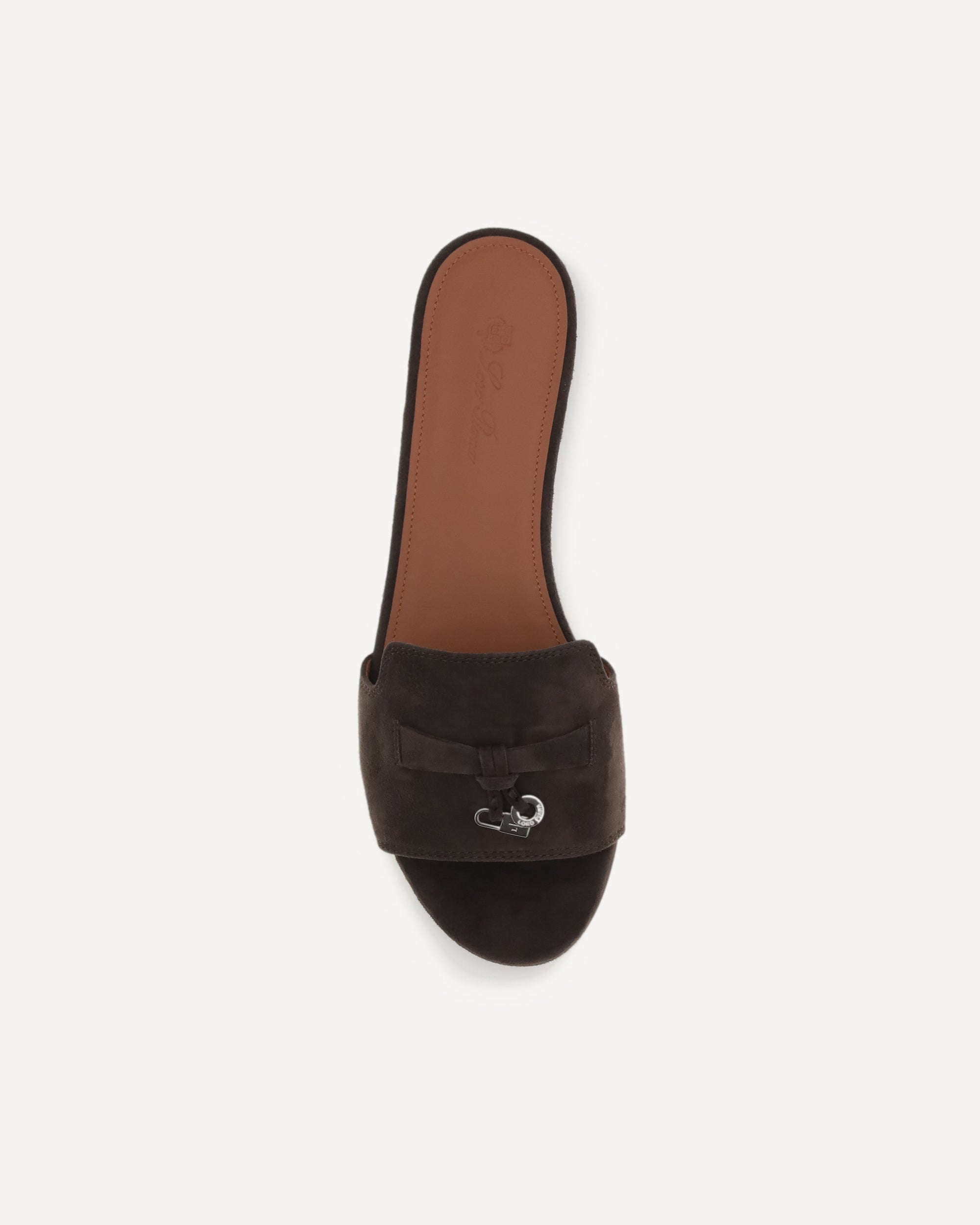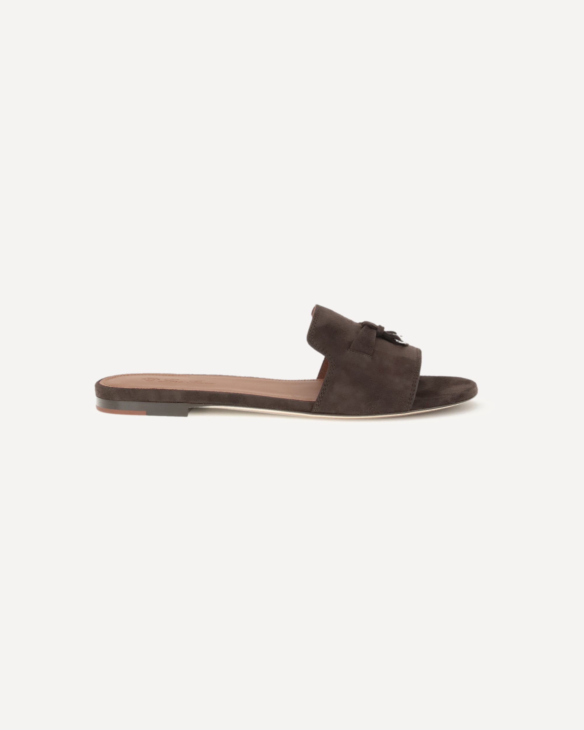 The leather Charms Sandals by Loro Piana are an elegant and refined accessory, ideal for a sophisticated summer look. The flat sole ensures comfort, while the slightly elongated toe adds a touch of understated elegance. The suede front band is embellished with an appliqué detail featuring the brand's engraved monogram, giving it a distinctive and recognizable touch. The branded insole completes the design with an additional luxury detail.
