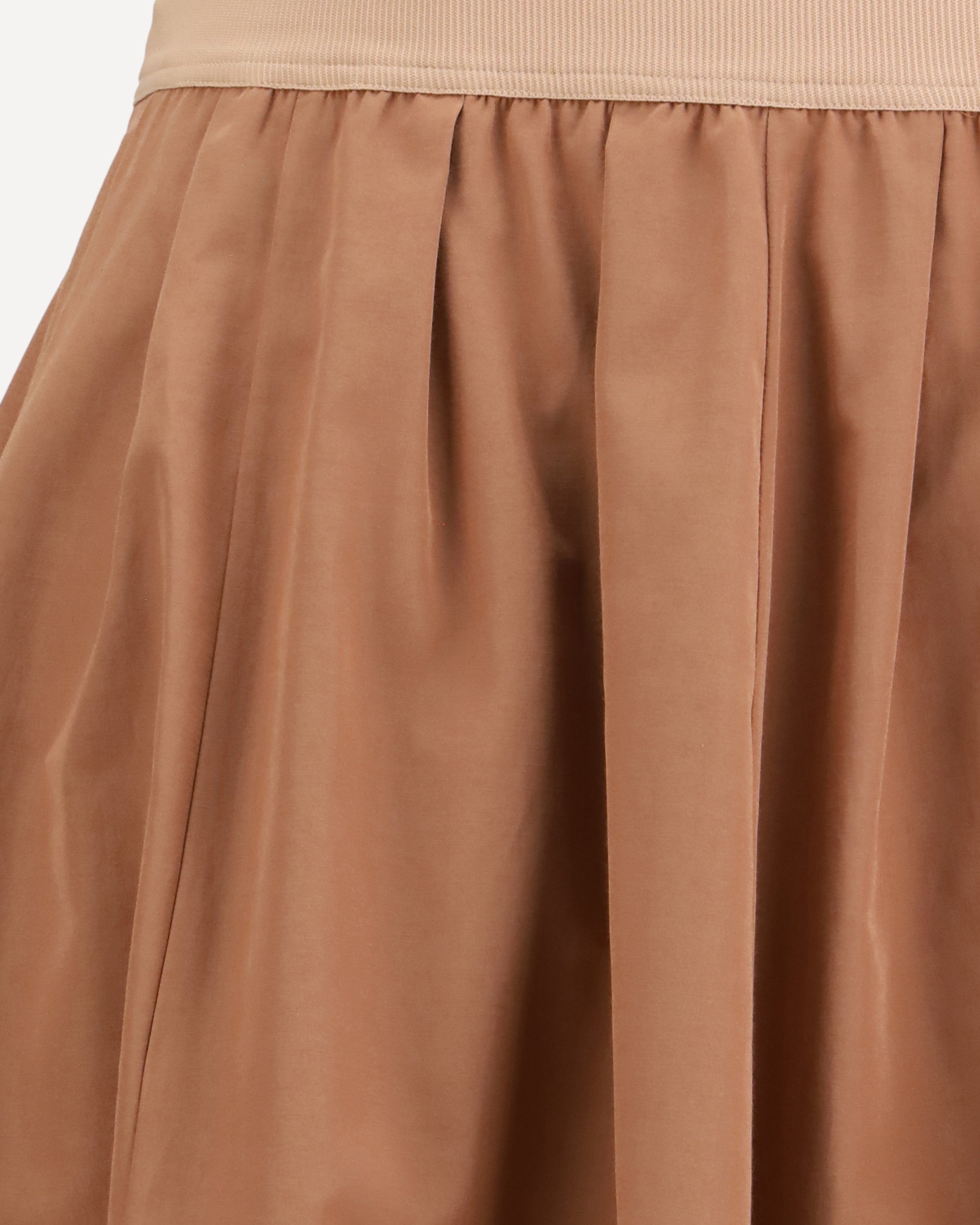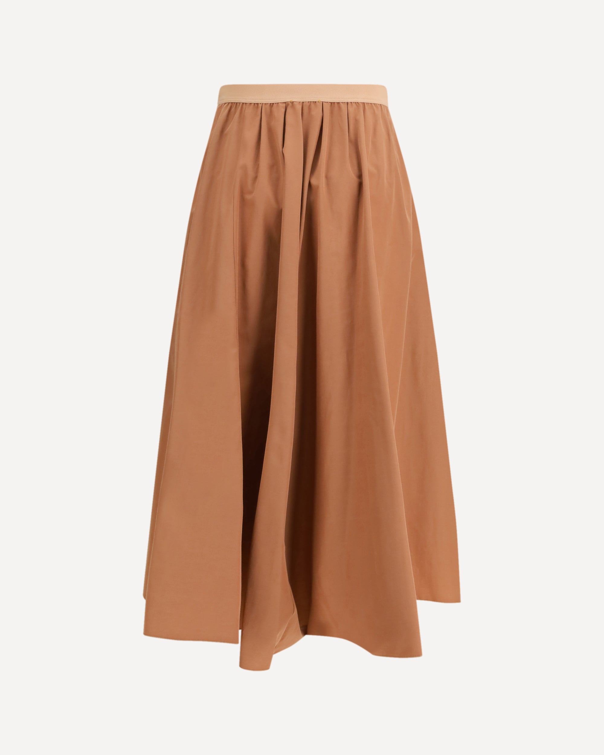 The taffettas longuette Skirt by Forte Forte offers a refined take on modern elegance, balancing structure with lightness. Crafted from crisp, luminous taffeta, this longuette skirt features a sculptural yet fluid volume that moves gracefully with the body. The contrasting elastic waistband introduces a contemporary graphic accent, softening the formality of the fabric while ensuring comfort and ease of wear. A sophisticated piece designed to elevate even the simplest looks with understated style.