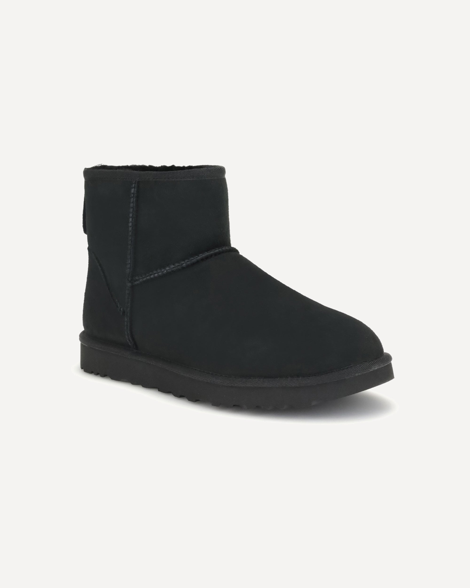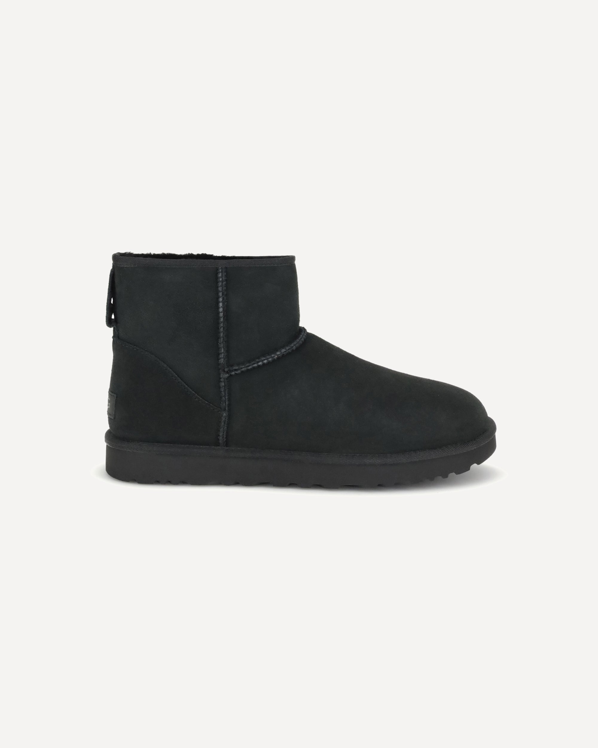 The mini leather Boots by UGG feature a sleek, comfortable ankle design. Crafted from suede, they feature a round toe, flat textured sole, and raised stitching. The look is completed by the brand's iconic monogram on the heel, a signature UGG signature.