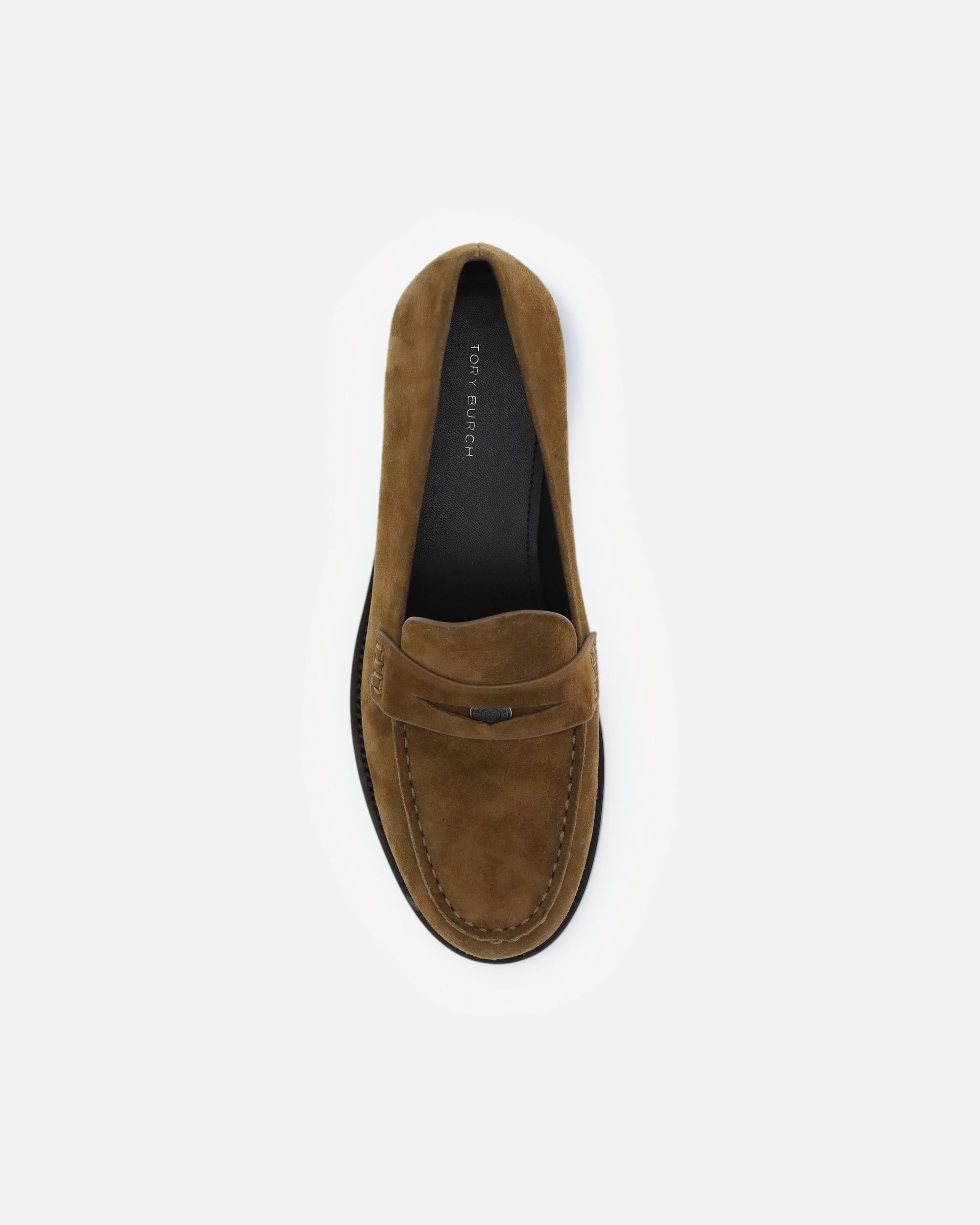 The Classic Penny Loafers by Tory Burch combine elegance and comfort with a suede exterior enhanced by a metal logo coin. The padded leather insole and Nappa leather lining ensure a smooth fit, while the polished leather sole completes the design with a refined, timeless touch.
