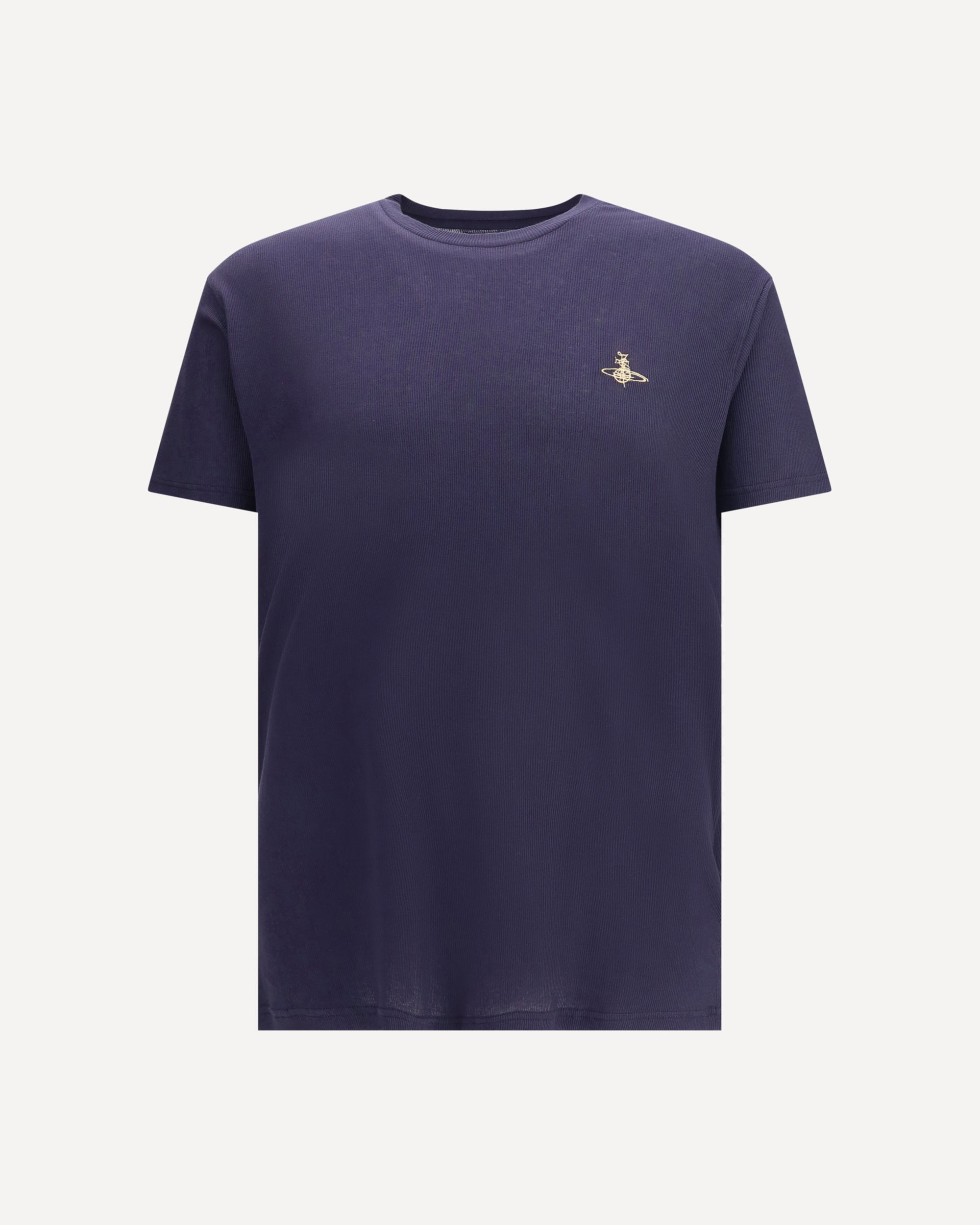 Vivienne Westwood's Ribbed T-Shirt is an essential garment with a bold and recognizable style. Made of ribbed fabric that enhances the fit, it is enhanced by the iconic Orbit logo sewn on the front, a distinctive detail of the Maison. A perfect blend of simplicity and identity.