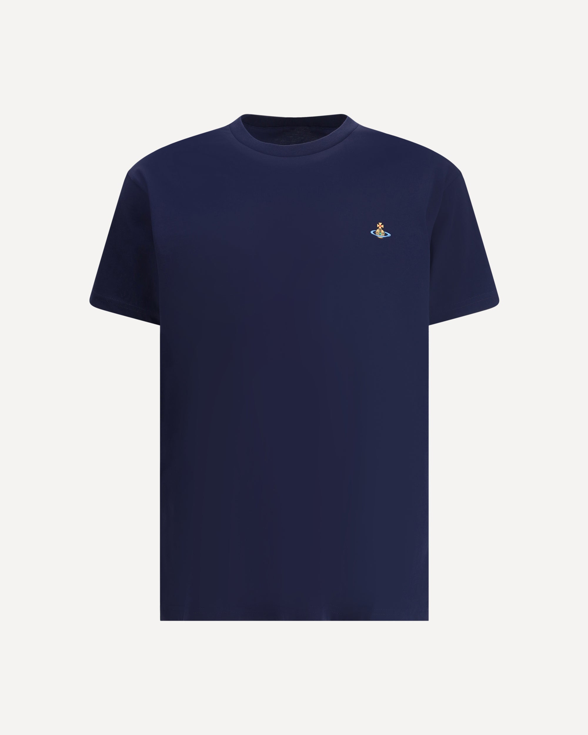 Vivienne Westwood's cotton T-Shirt is an essential garment with distinctive character. Made from soft cotton, it features a classic ribbed crew neck and the iconic Orb logo embroidered in contrast on the front for a recognizable and timeless touch.