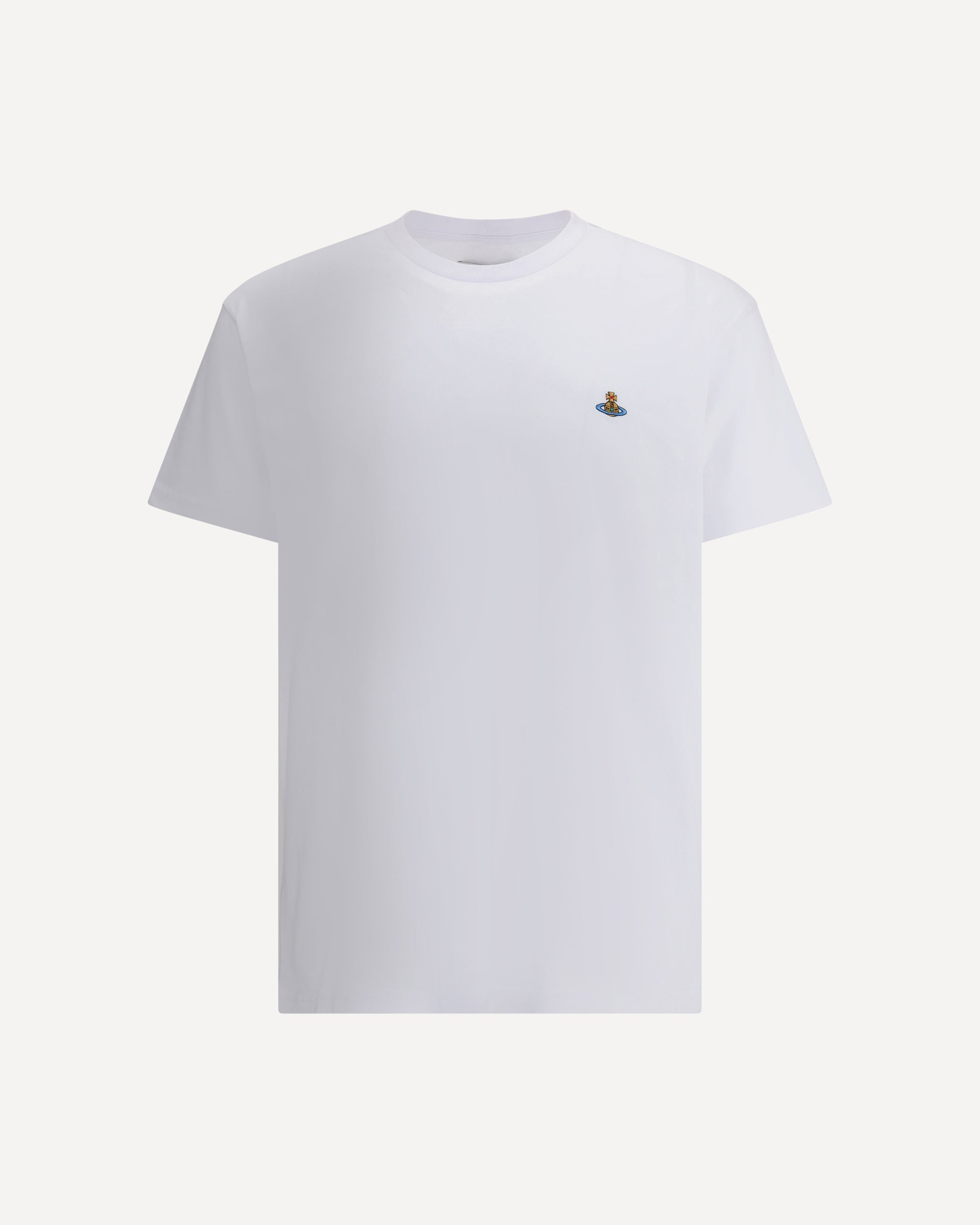 Vivienne Westwood's cotton T-Shirt is an essential garment with distinctive character. Made from soft cotton, it features a classic ribbed crew neck and the iconic Orb logo embroidered in contrast on the front for a recognizable and timeless touch.