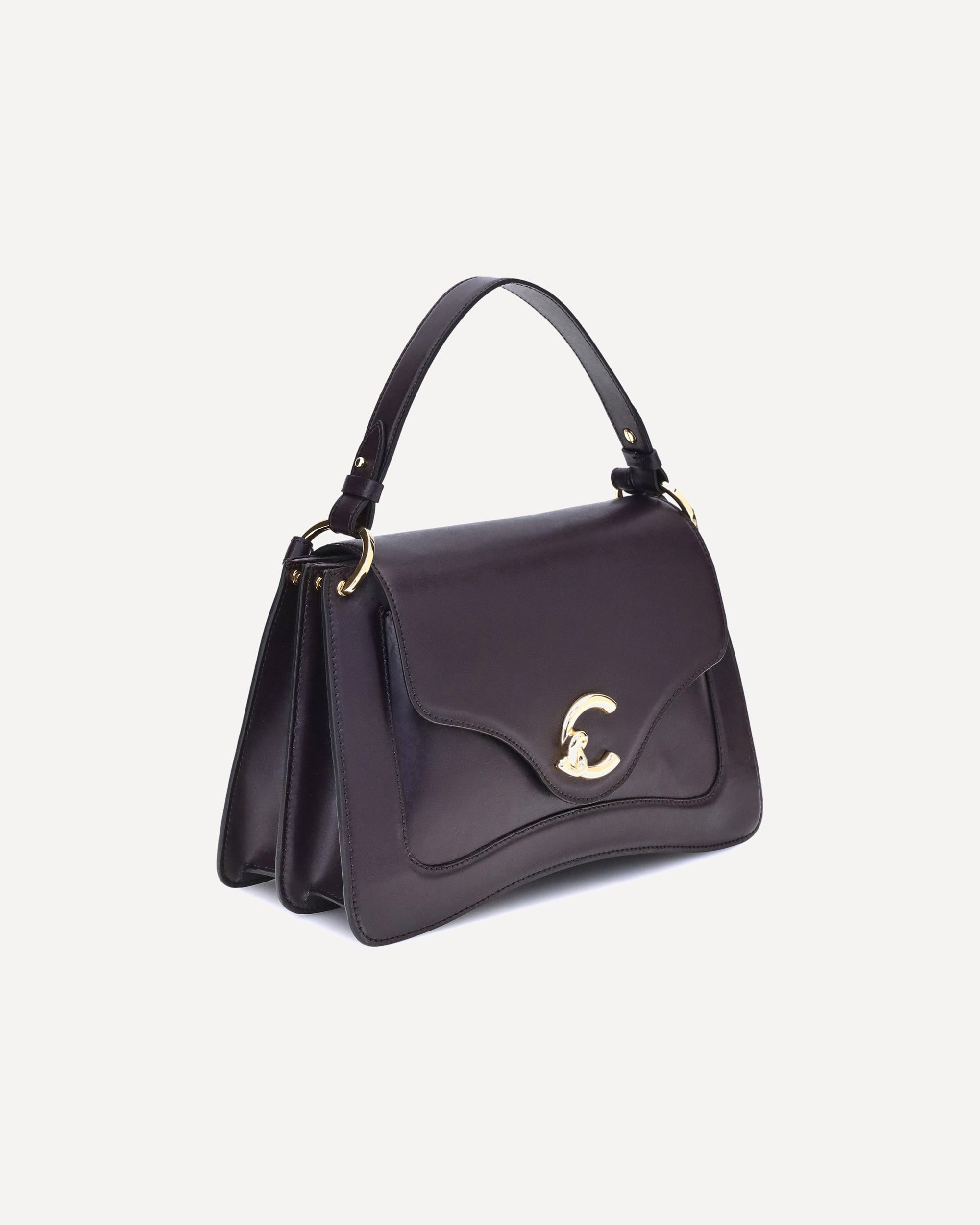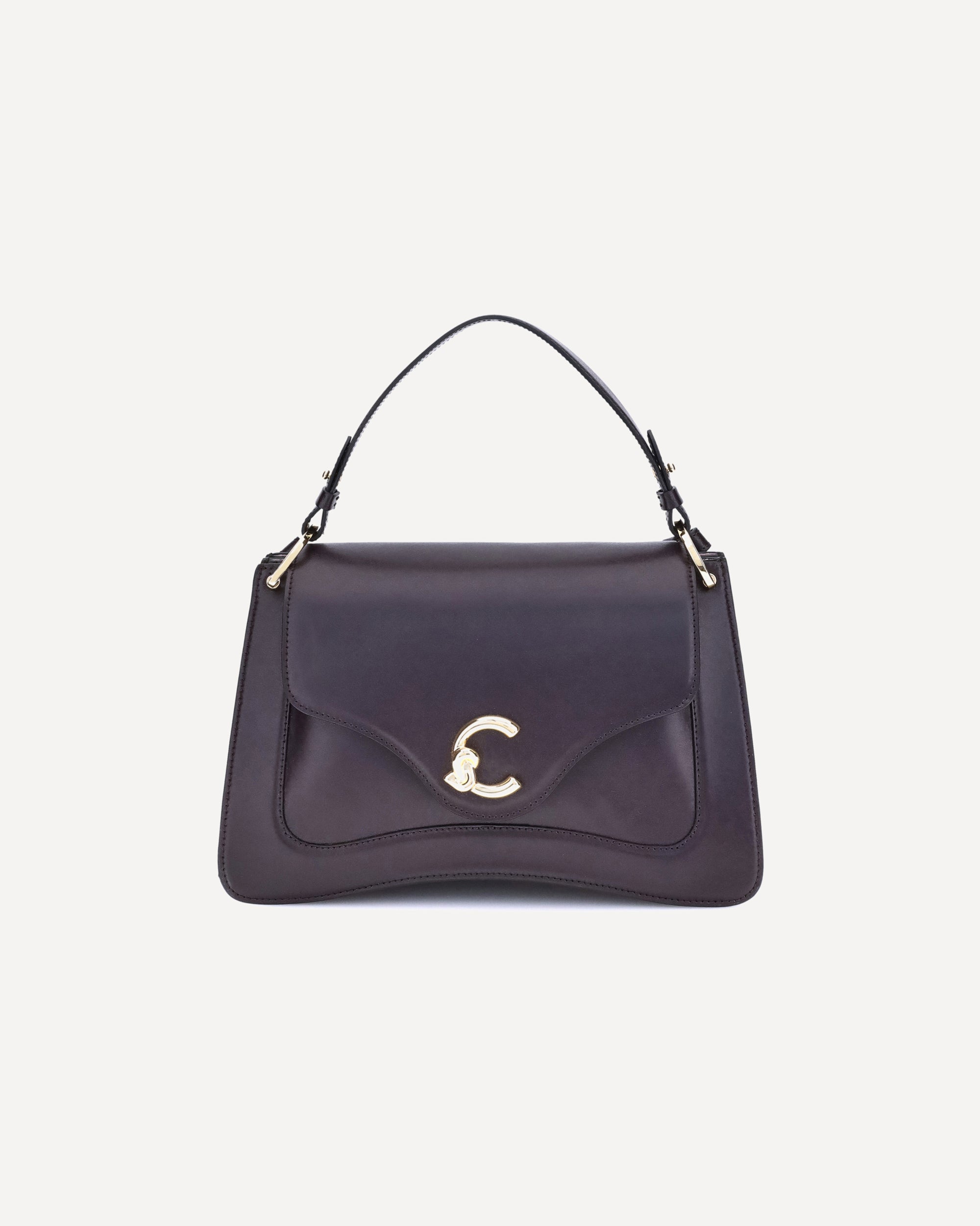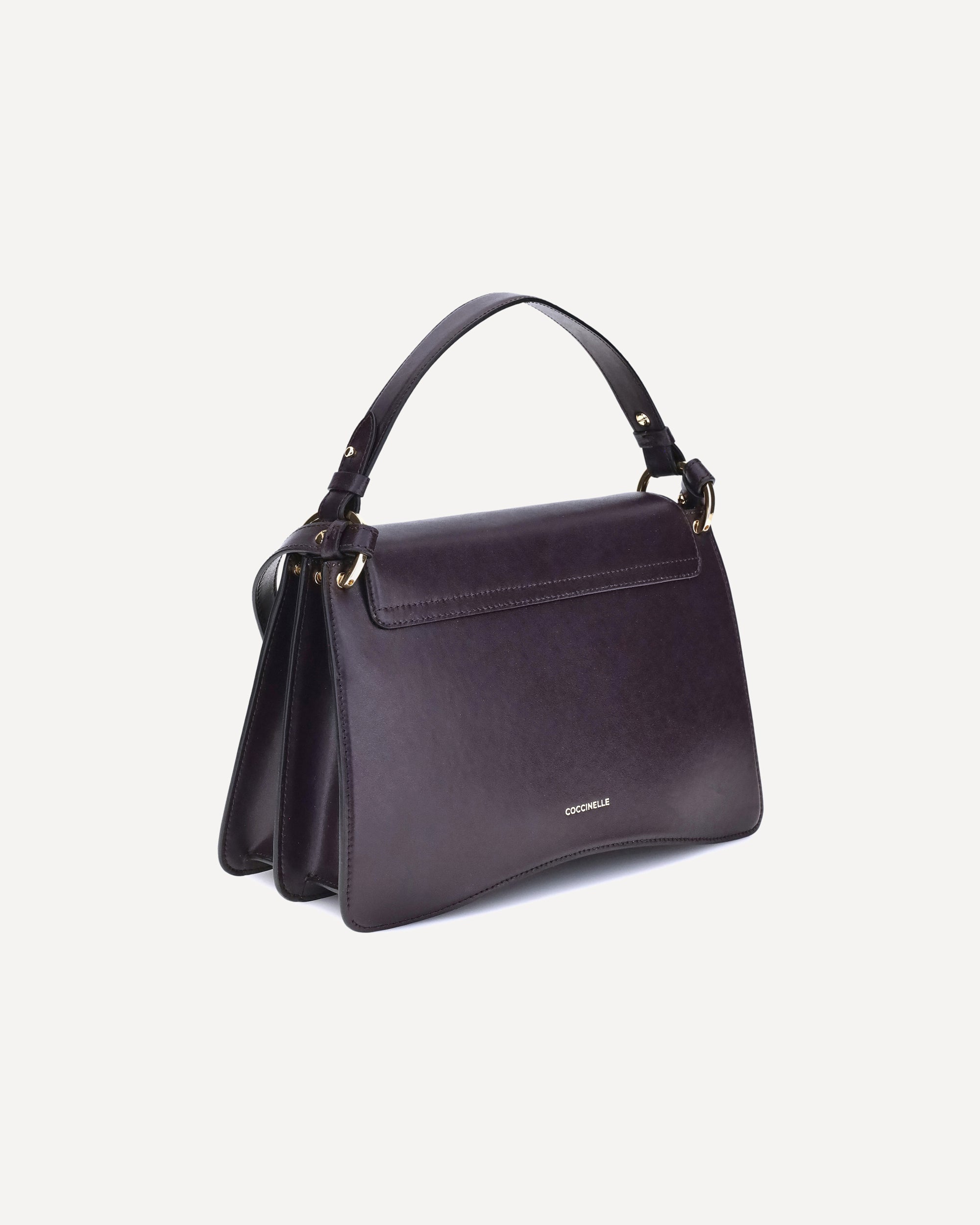 The medium C-Me Handbag by Coccinelle, made of smooth leather, combines functionality and essential style. Featuring the distinctive C-Me logo in gold metal, it has a magnetic closure and a gusset design that provides structure and capacity. The removable handle allows for versatile portability, while the adjustable leather shoulder strap allows you to wear it on the shoulder or crossbody. Equipped with a front pocket, three internal compartments and a zipped partition, it guarantees excellent organization. The embossed gold logo completes with discreet elegance an accessory designed to accompany you every day in style.