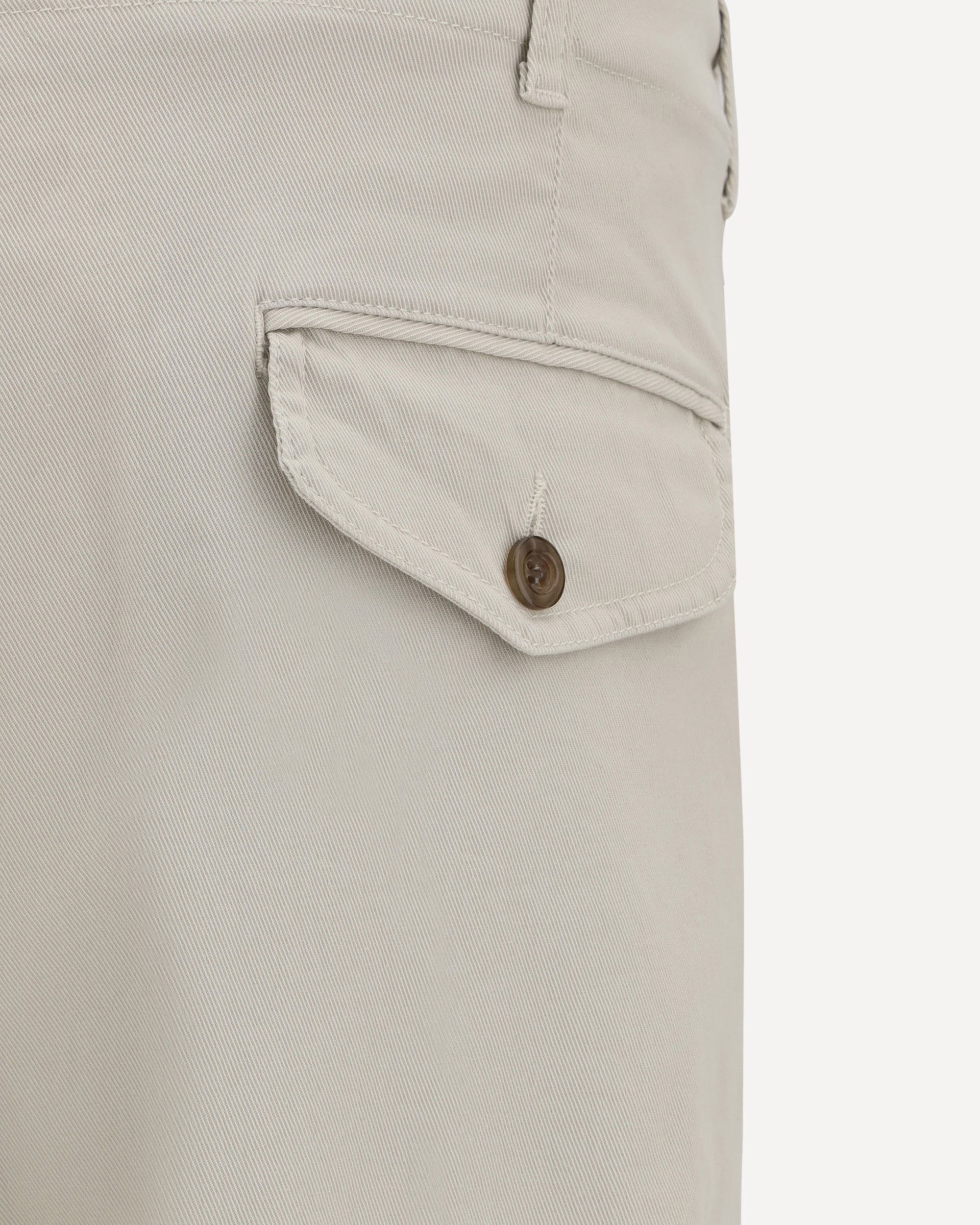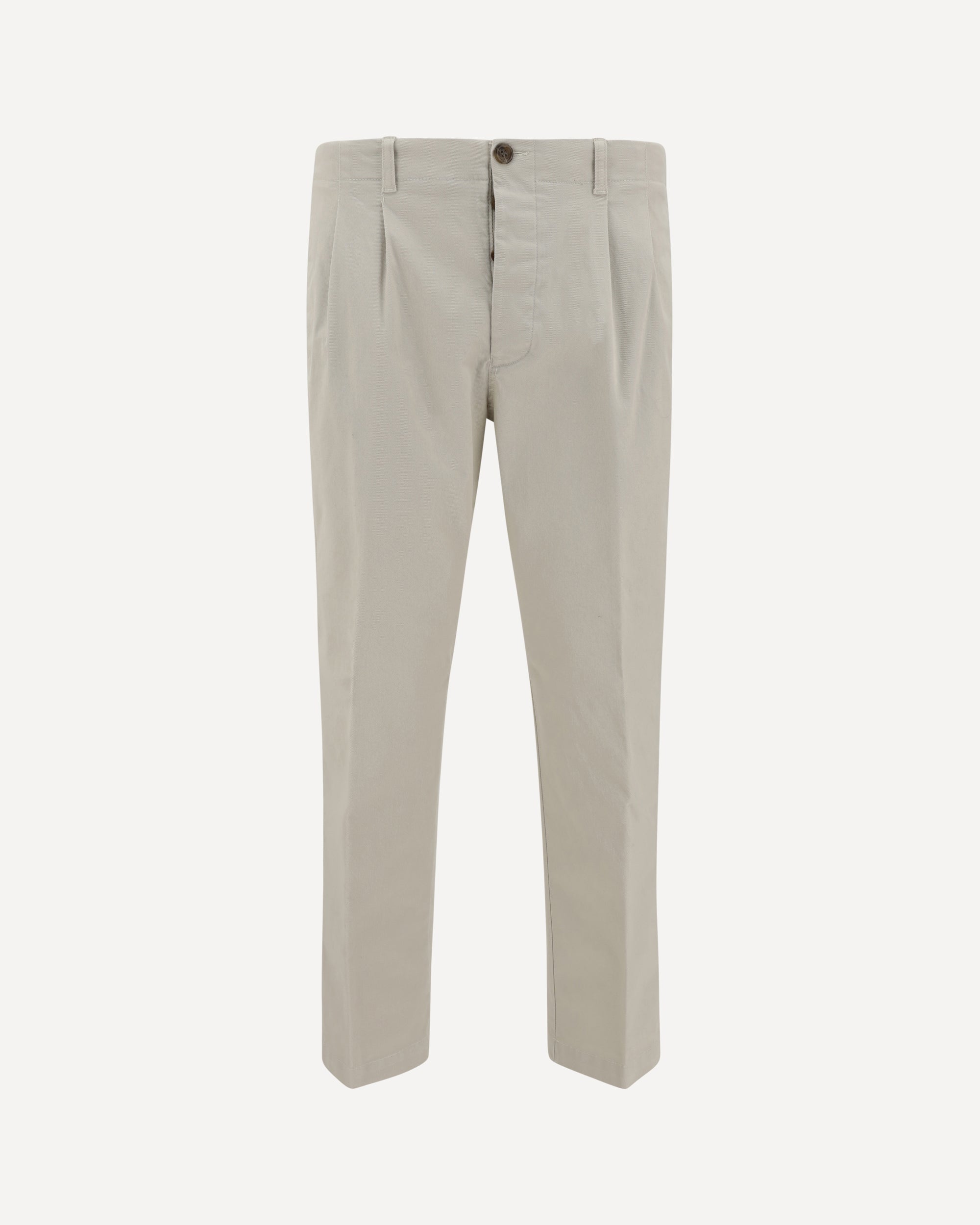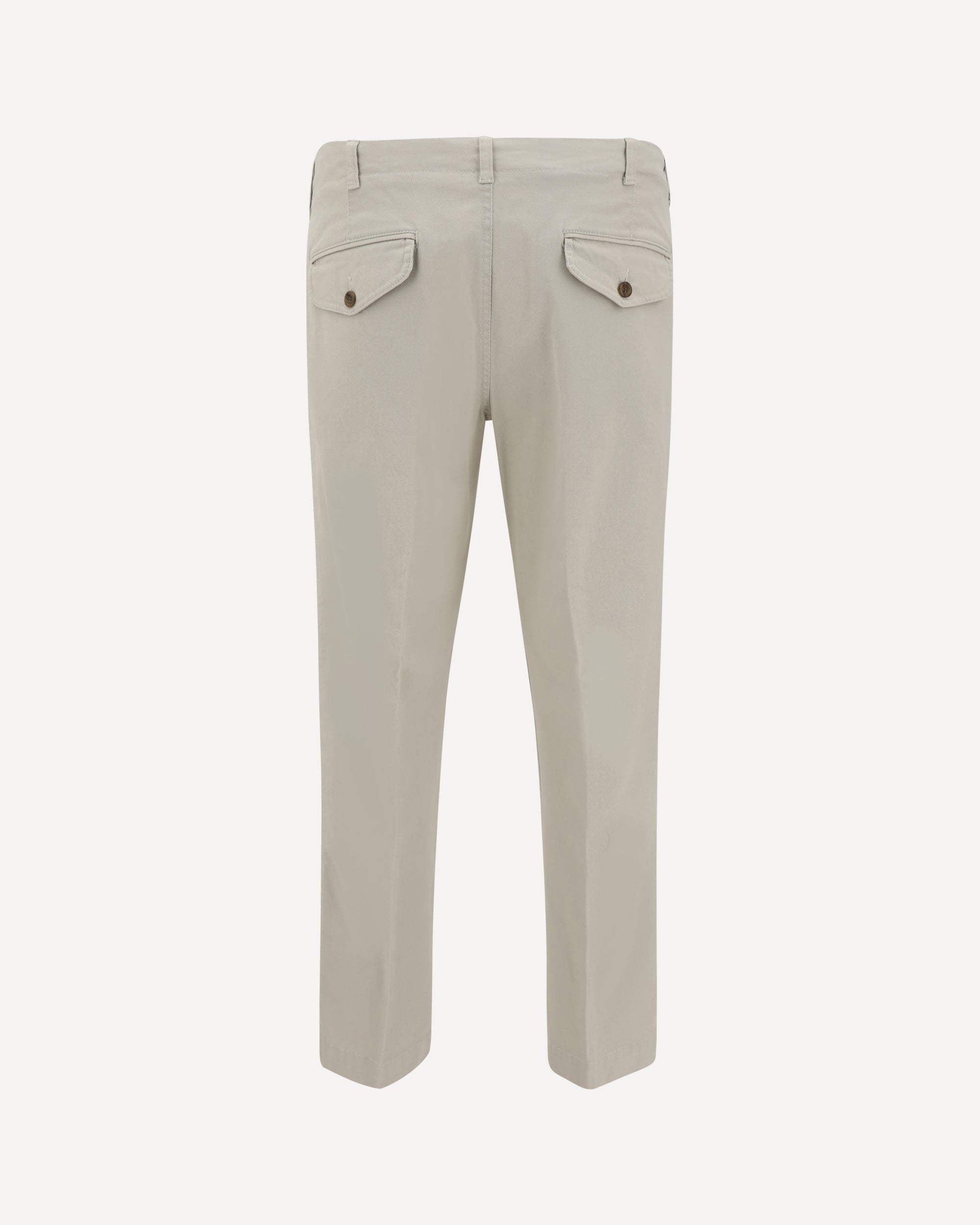 Germano's cotton Pants have a front button closure, giving them an elegant and distinctive touch. They feature two side slash pockets, ideal for a functional, clean look, and two welt pockets on the back. The waistband has belt loops, while the turn-up hem adds a sartorial and refined detail, perfect for a casual-chic look.