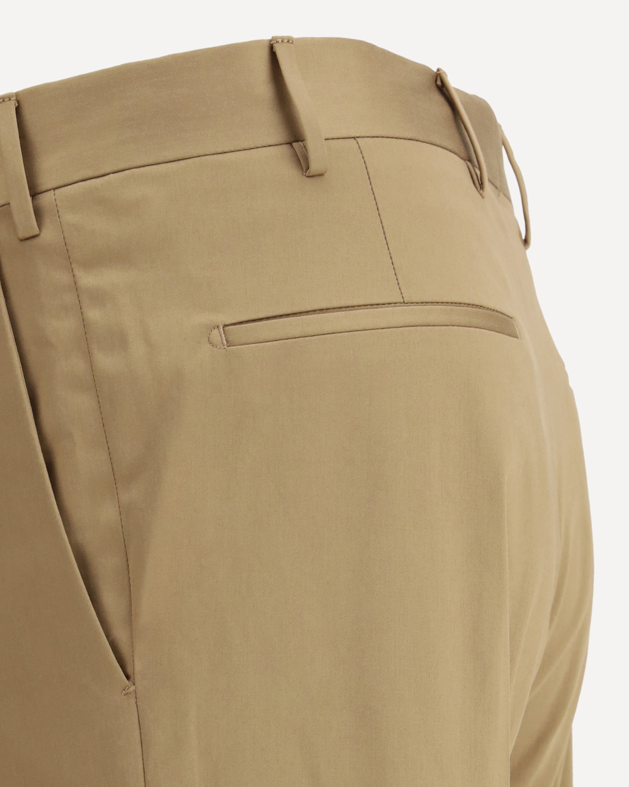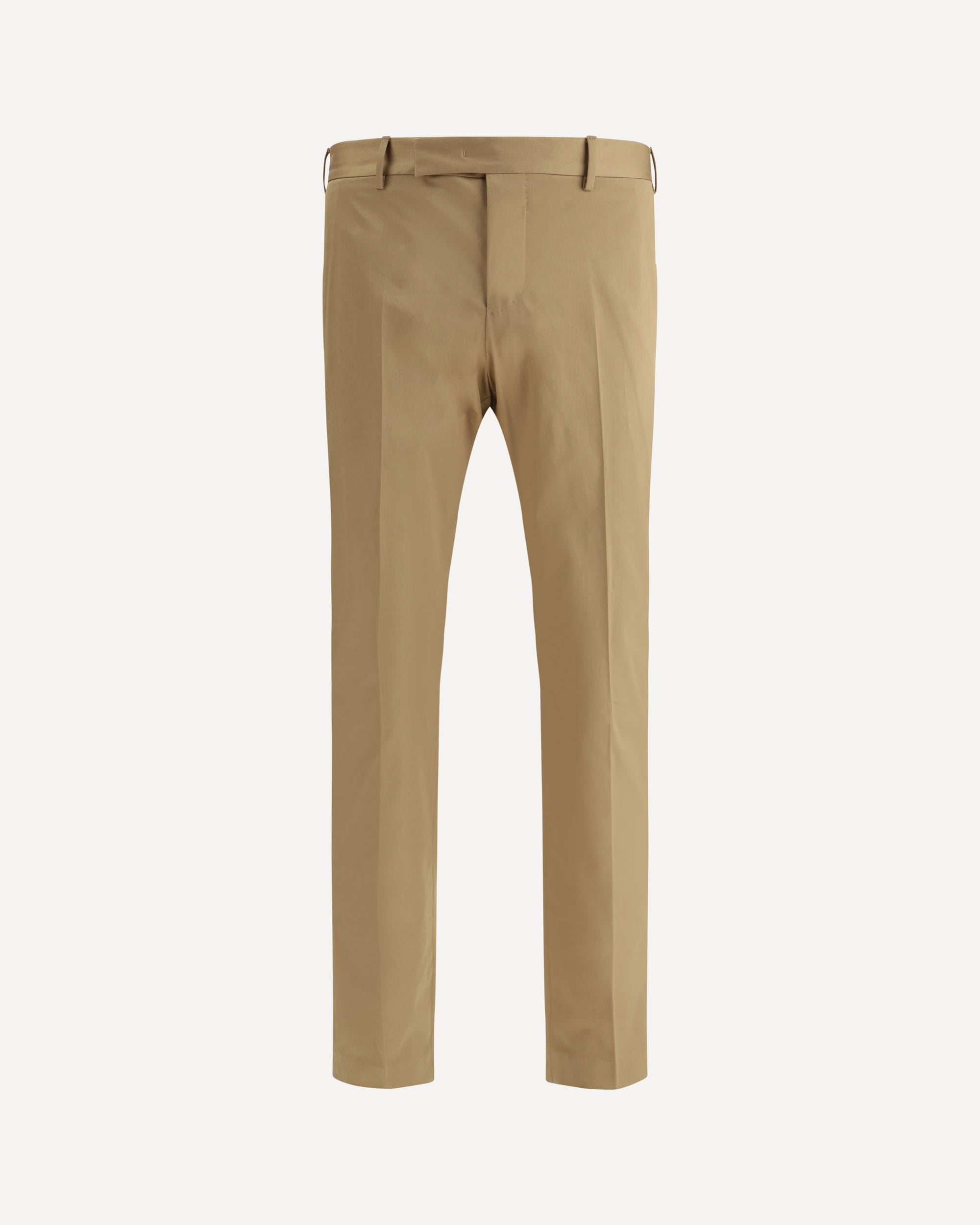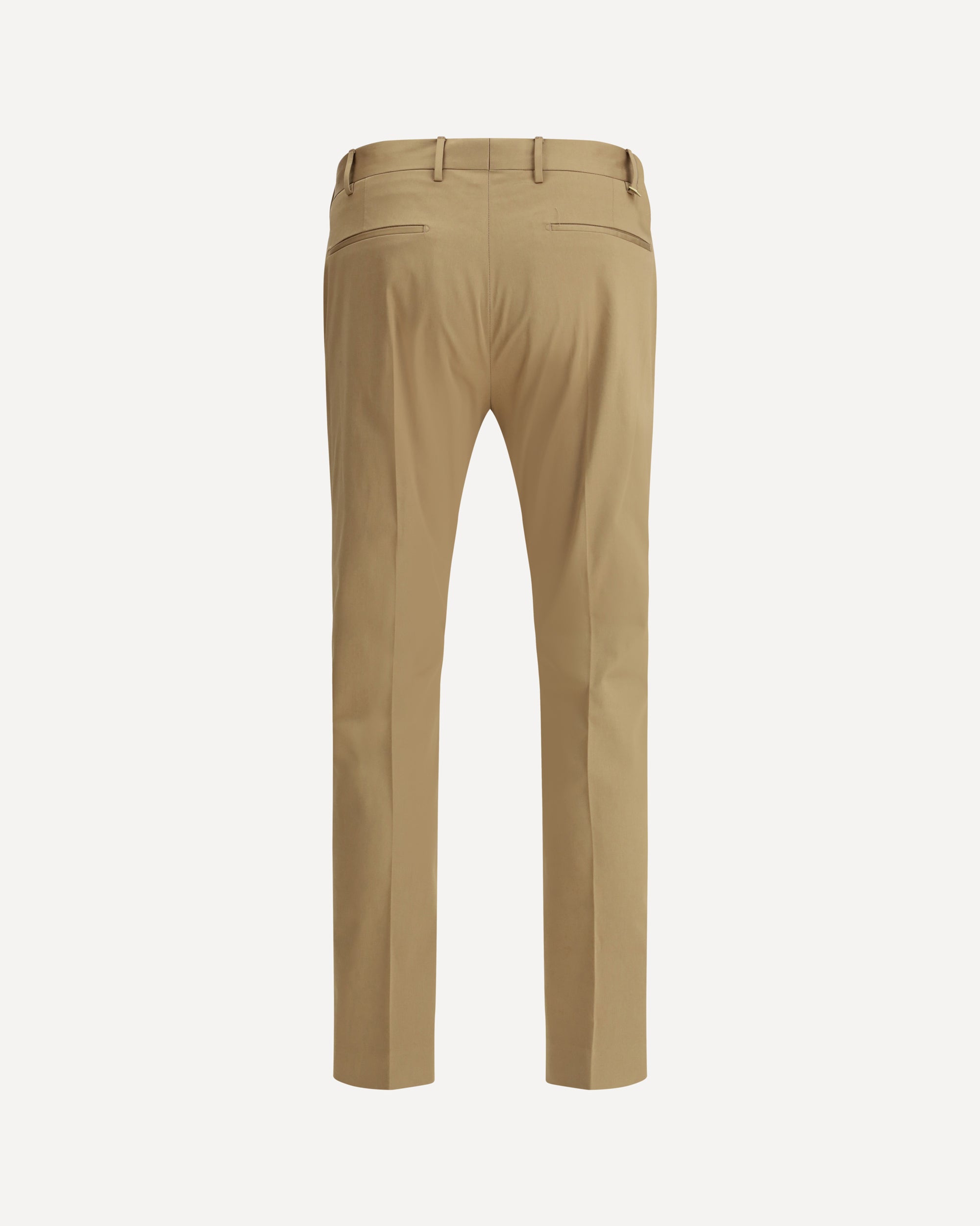 PT Torino's Cotton Pants combine elegance and practicality with a detail-oriented design. The front closure with hidden hooks and zipper gives a clean, sophisticated look, while the two side slash pockets offer a classic, functional touch. Back welt pockets, enhanced by a removable feather detail applied to one of them, add a distinctive and unique accent. Belt loops on the waistband allow you to customize the fit, while the regular fit ensures comfort and a modern silhouette.