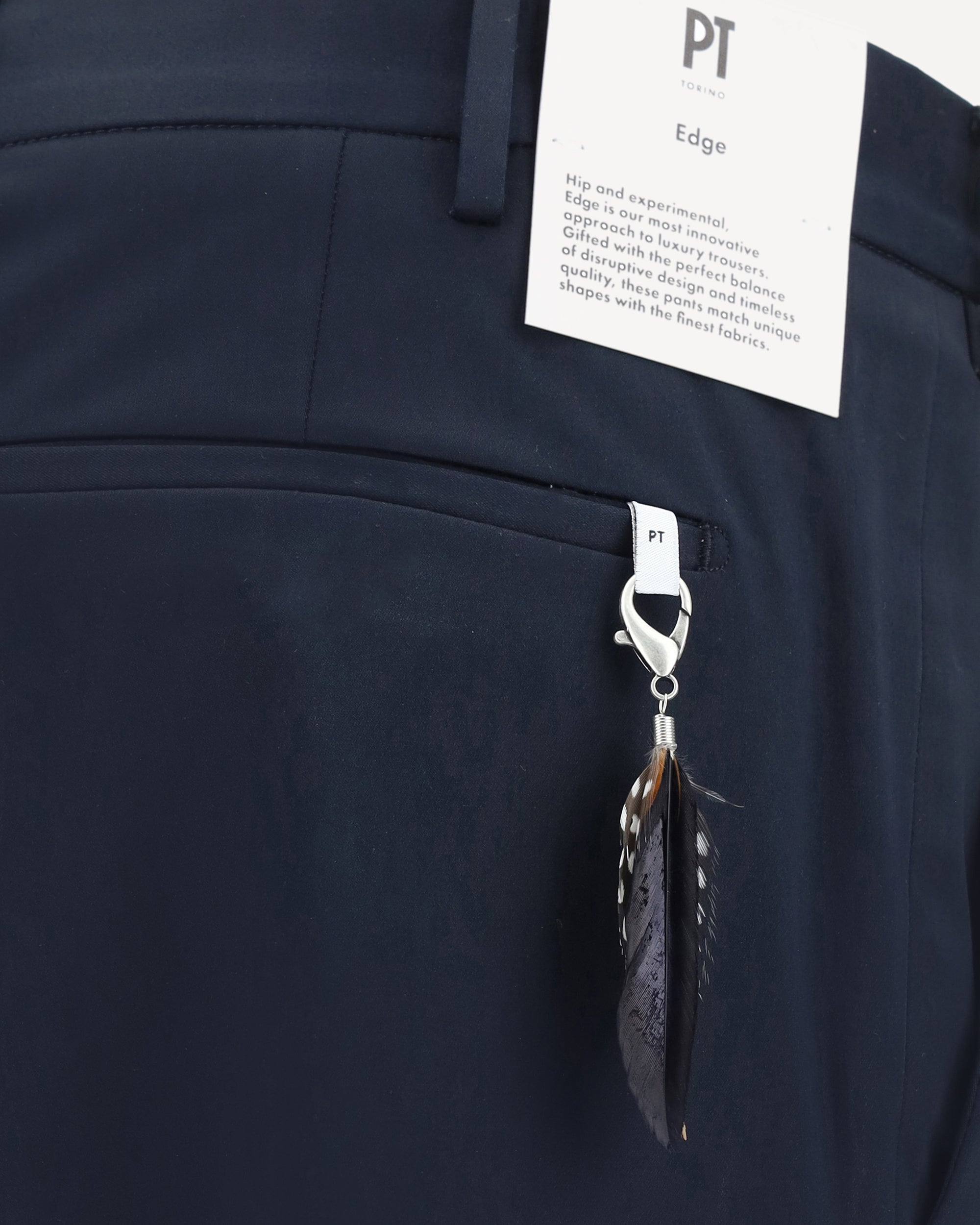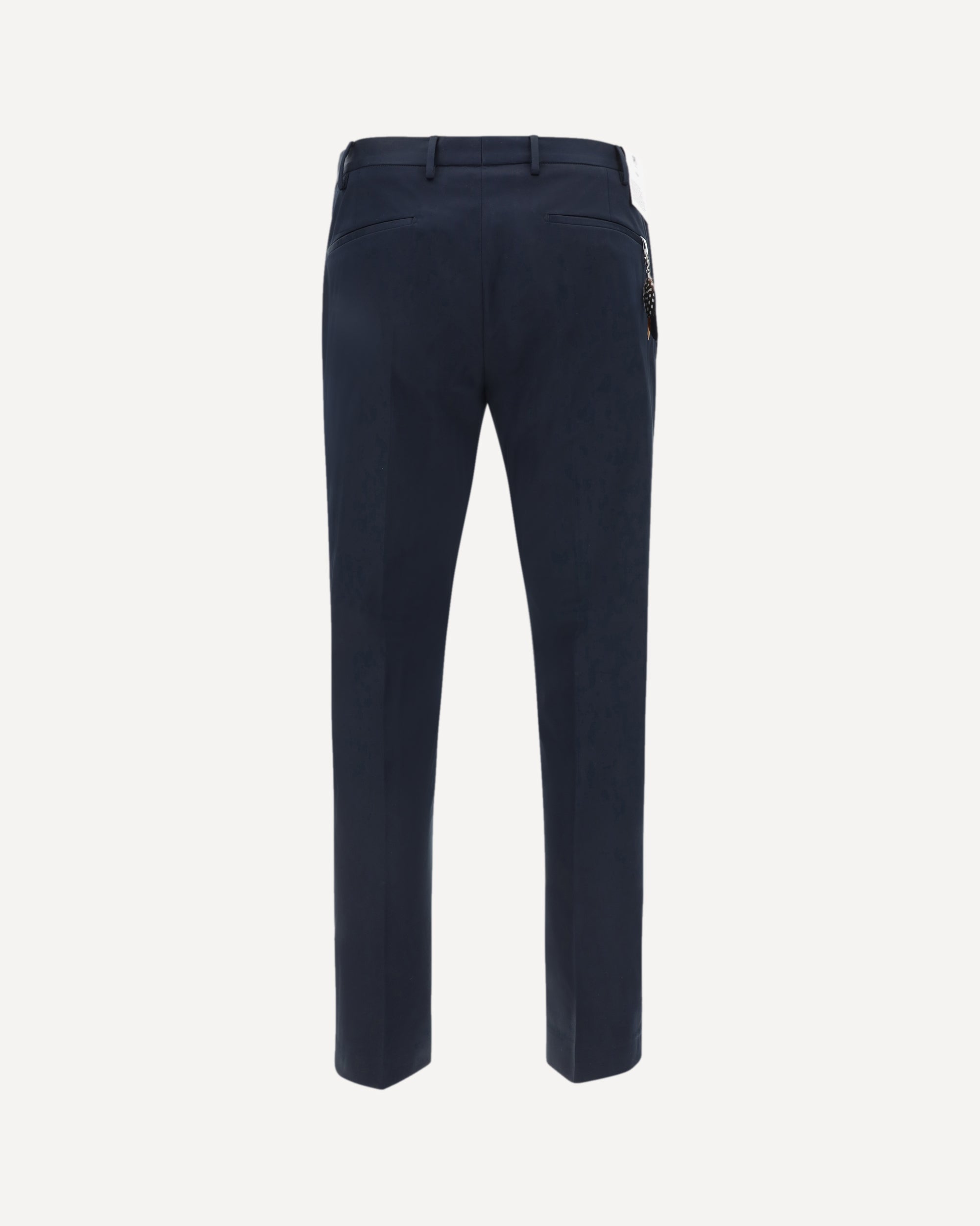The Cotton Pants by PT Torino combine elegance and practicality with a detail-oriented design. The front closure with hidden hooks and zipper gives a clean, sophisticated look, while the two side slash pockets offer a classic, functional touch. Back welt pockets, enhanced by a removable feather detail applied to one of them, add a distinctive and unique accent. Belt loops on the waistband allow you to customize the fit, while the regular fit ensures comfort and a modern silhouette.