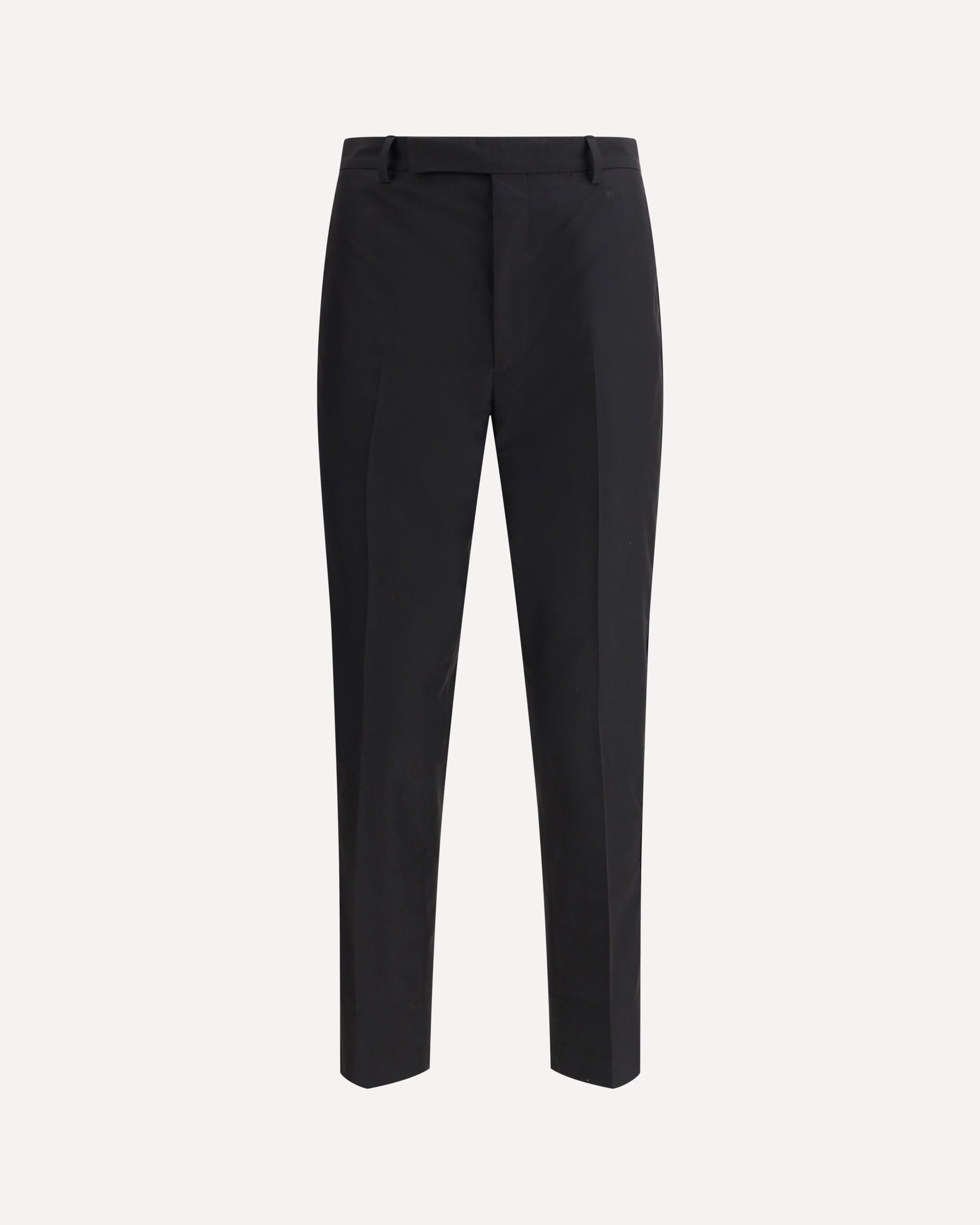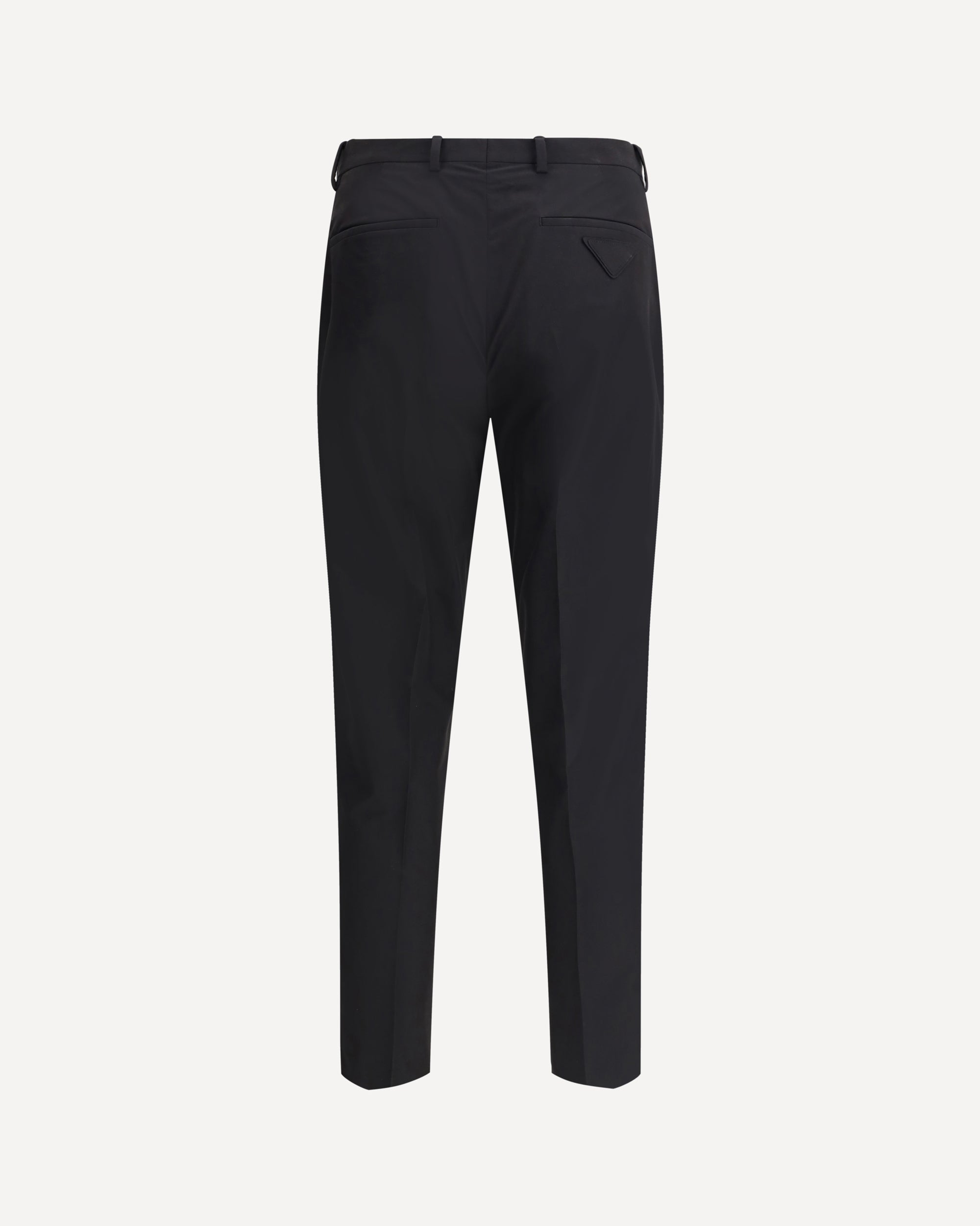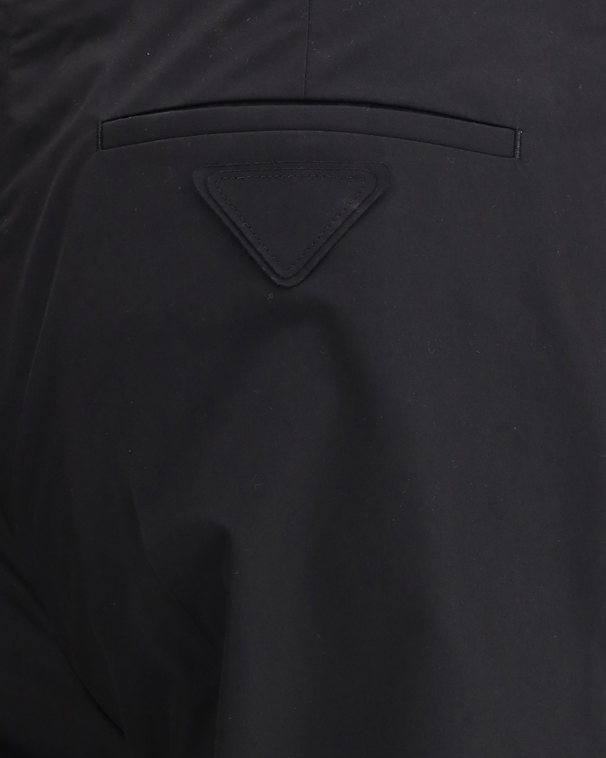 Prada's Cotton Pants are an elegant and versatile piece, perfect for those seeking comfort and refined style. The front button and zip fastening offers a secure and practical fit, while the two side slash pockets add a classic and functional touch. The two welt pockets on the back are a discreet detail that completes the design. The belt loops at the waist allow you to add a belt to further customize the fit. With a monochrome pattern, these trousers easily adapt to various outfits, while the regular fit guarantees comfort without sacrificing a modern and clean style. Perfect for a casual or formal look, these trousers embody the timeless elegance of Prada.