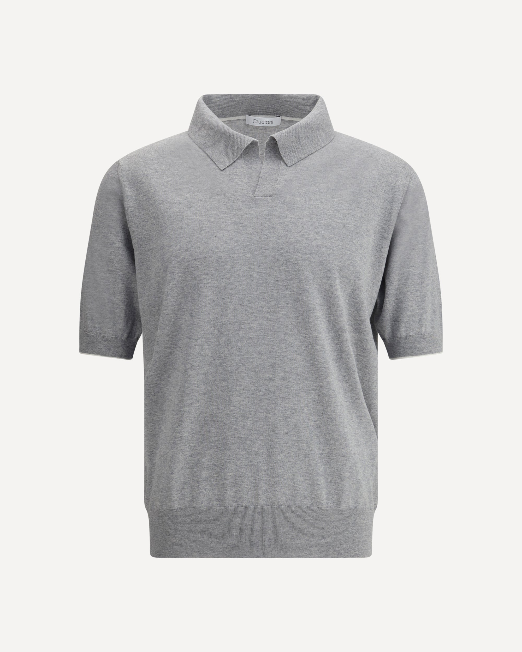 Cotton Polo Shirt by Cruciani features a classic collar and front opening for a stylish and practical look. The ribbed hem offers a fitted fit, while the contrasting sleeve hem adds a distinctive detail that enhances the design. A simple yet refined garment perfect for casual and sophisticated style.
