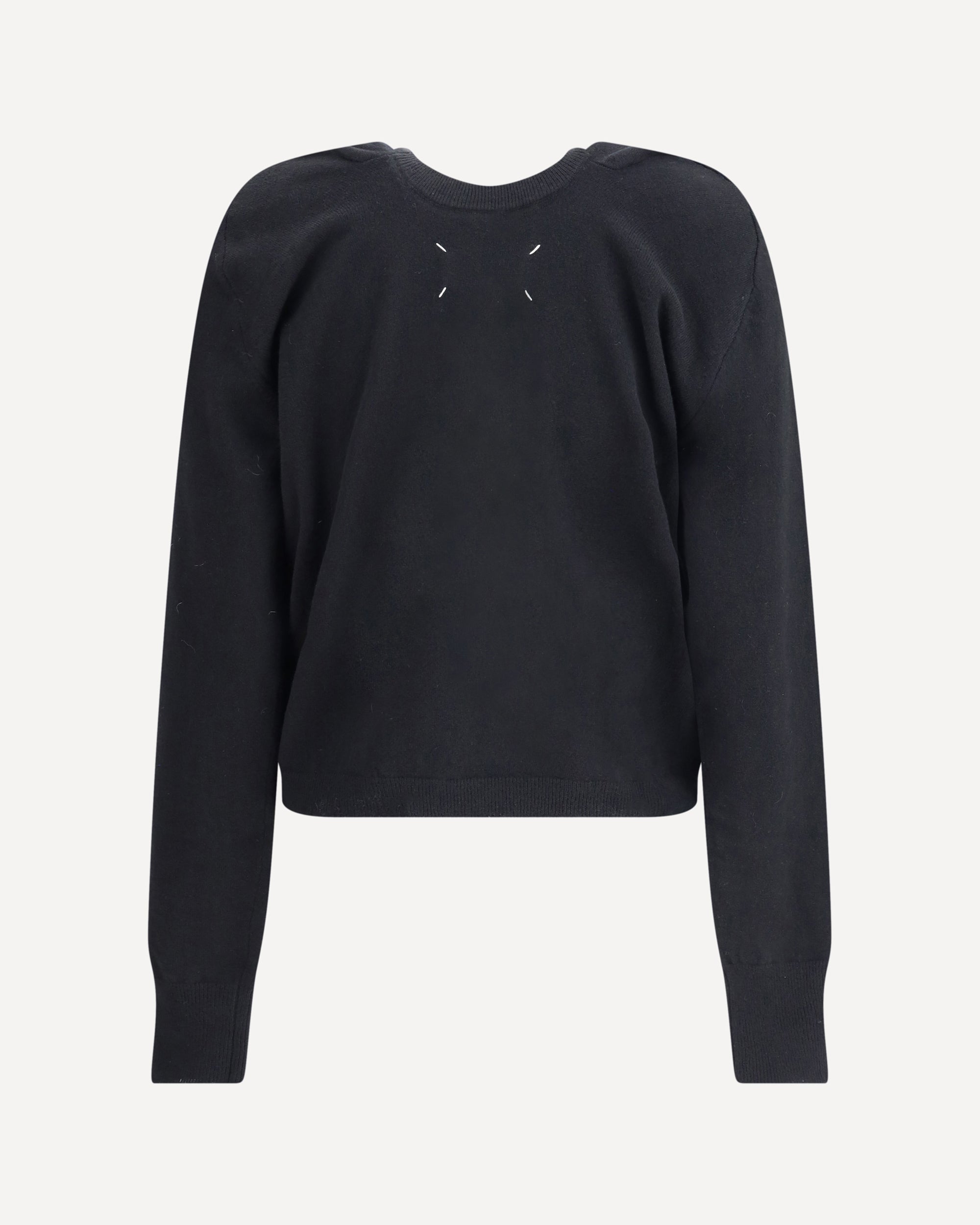 The balloon-sleeve Sweater by Maison Margiela embodies sophisticated elegance through its refined, tailored details. Crafted from wool, it offers a soft and warm texture, while the crew neck and clean lines provide balance to the design. The long balloon sleeves add volume and fluidity, elevating this timeless staple into a statement of contemporary style.
