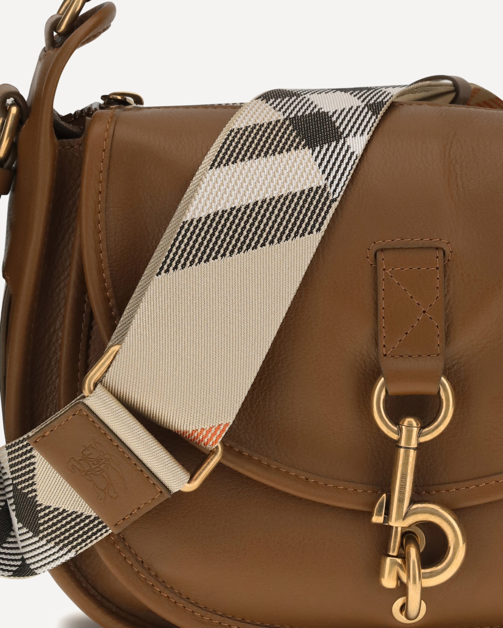 The small B Clip Crossbody Bag by Burberry blends elegance and functionality in a compact, contemporary design. Featuring a leather top handle and an adjustable webbing strap, it includes a zip closure, an external pocket with the signature “B” clip fastening, and brushed metal hardware. Hand-painted edges and the embossed Equestrian Knight Design on the strap complete the piece with a distinctive and refined touch.