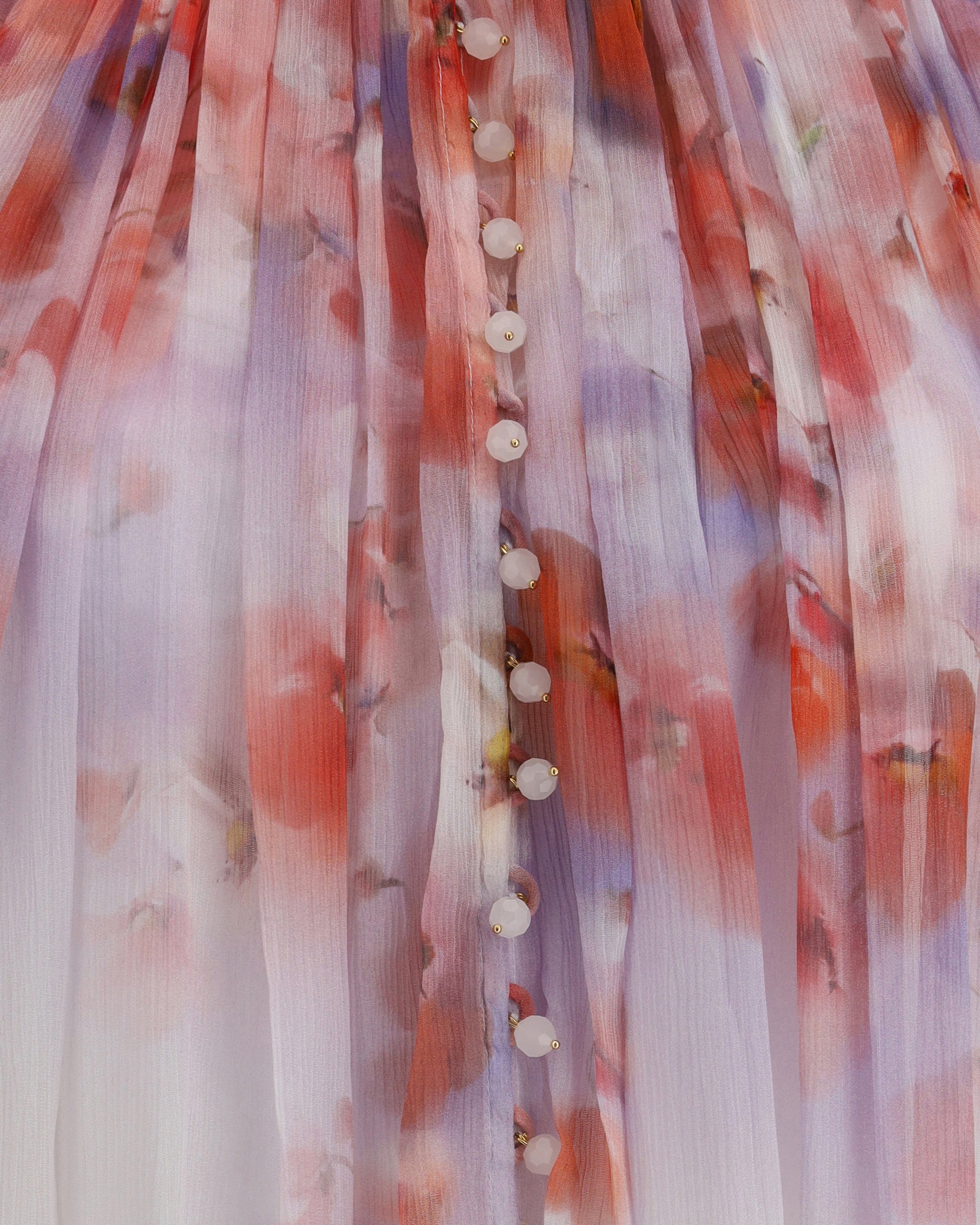 Zimmermann's Crush Blouse is an elegant, lightweight piece featuring an eye-catching all-over floral print. The button-front closure and semi-sheer design lend a delicate allure, while the draped details add movement and femininity to the style.
