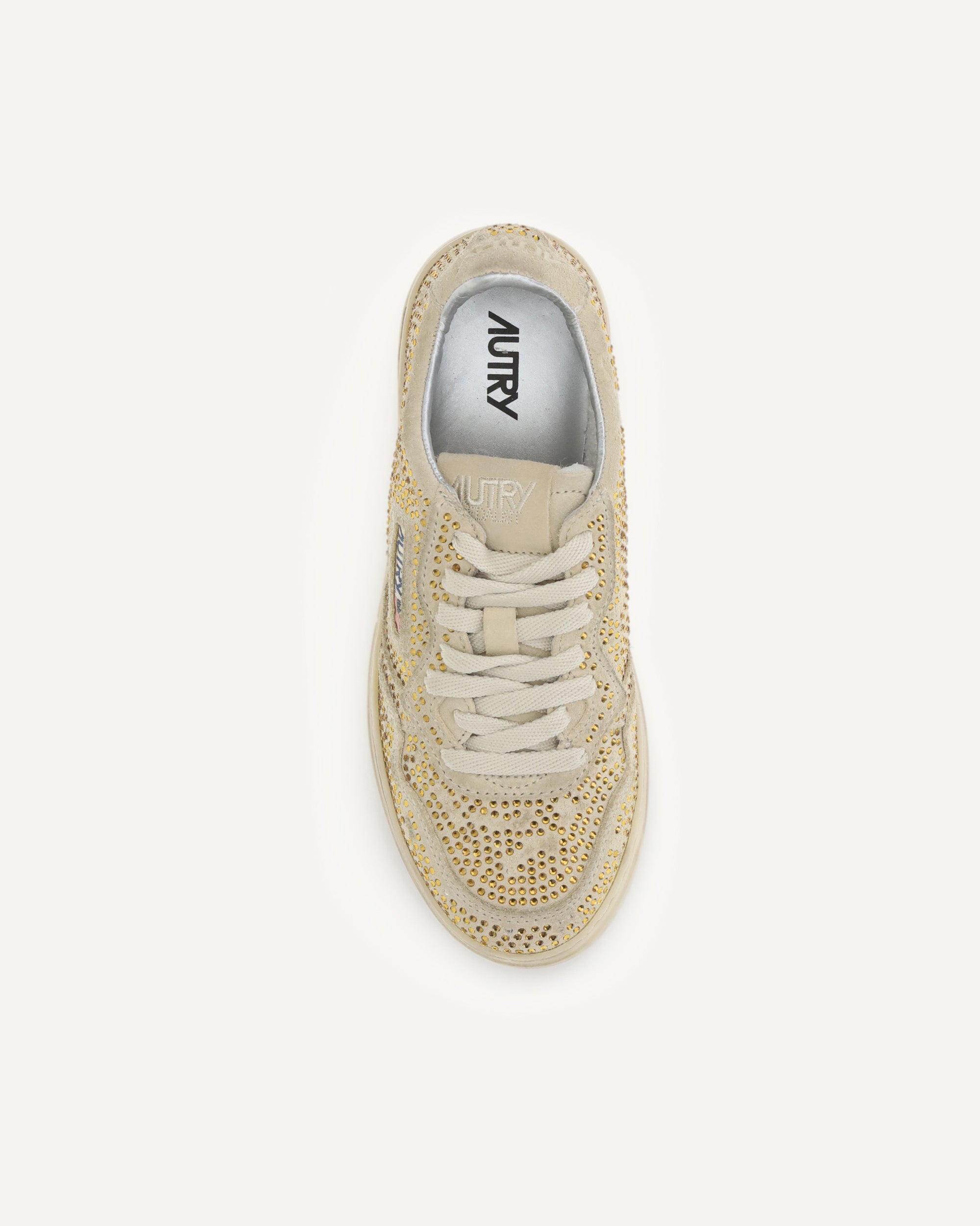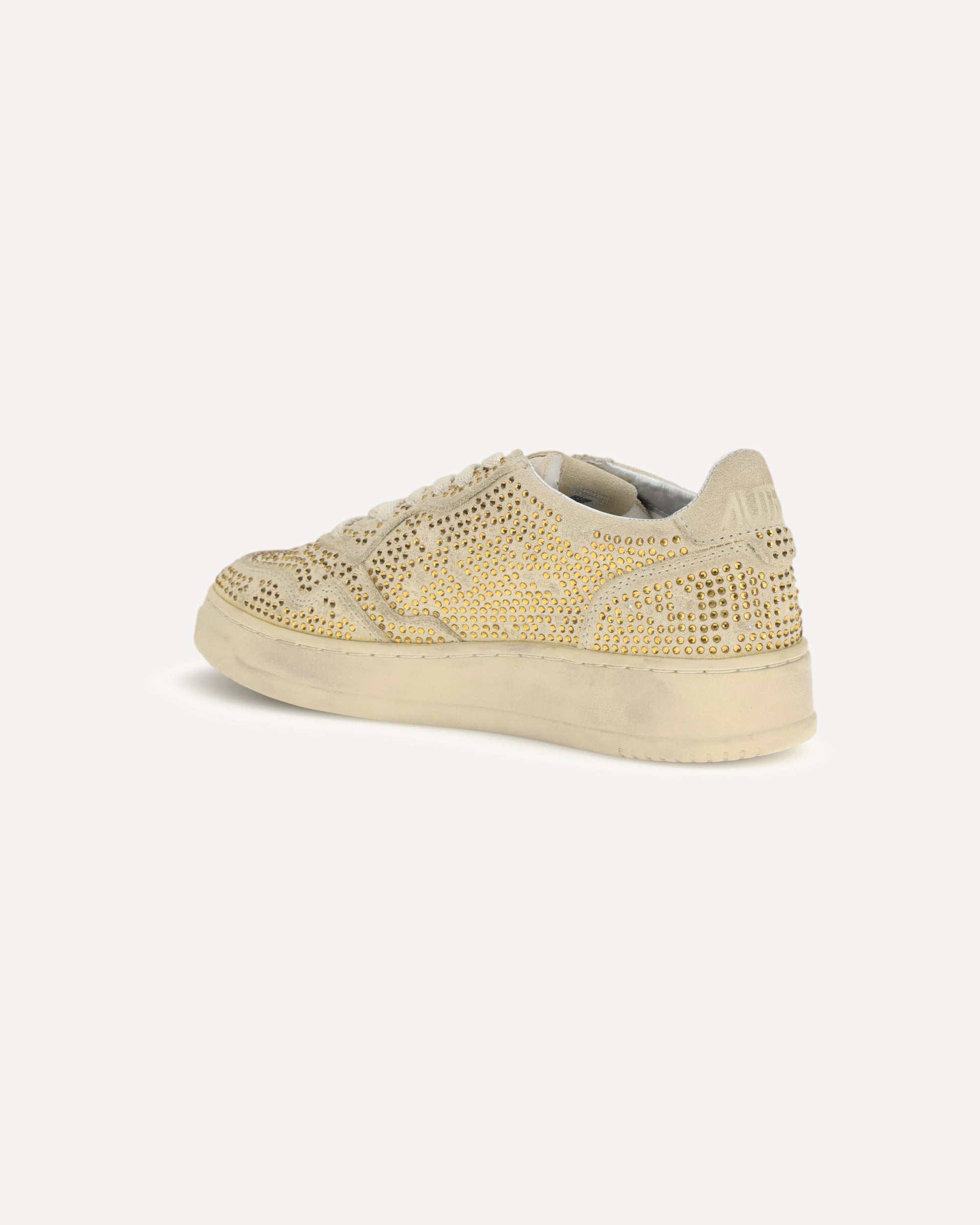 Crystal Medalist Sneakers by Autry combine elegance and comfort in a contemporary design. The suede upper decorated with micro rhinestones lends shine, while the flat cotton laces and padded collar ensure comfortable fit. The embroidered label on the tongue, jacquard logo, leather and cotton terry lining and rubber sole complete the design for the perfect balance of style and practicality.