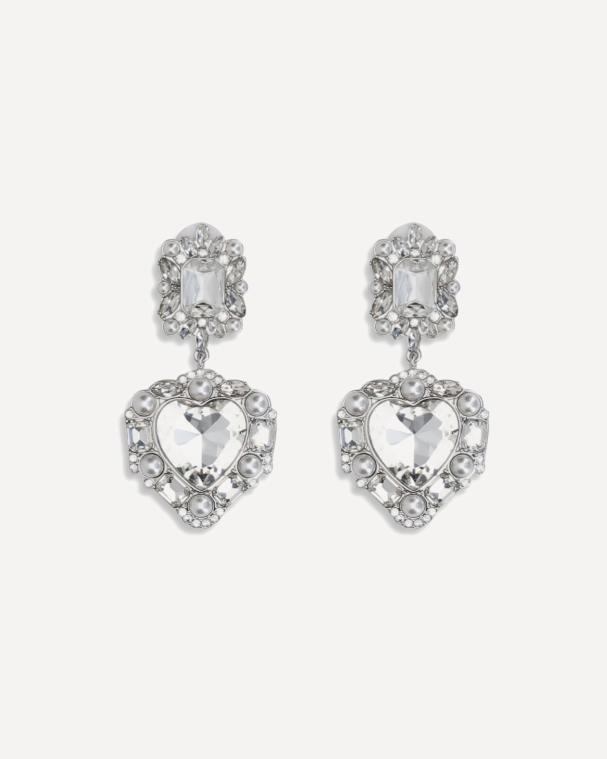 Self-Portrait Earrings with a heart-shaped pendant, embellished with shiny jewels that give a touch of light and sophistication. The classic clasp ensures comfort and security while wearing. A romantic and elegant accessory, perfect to complete any look with style.