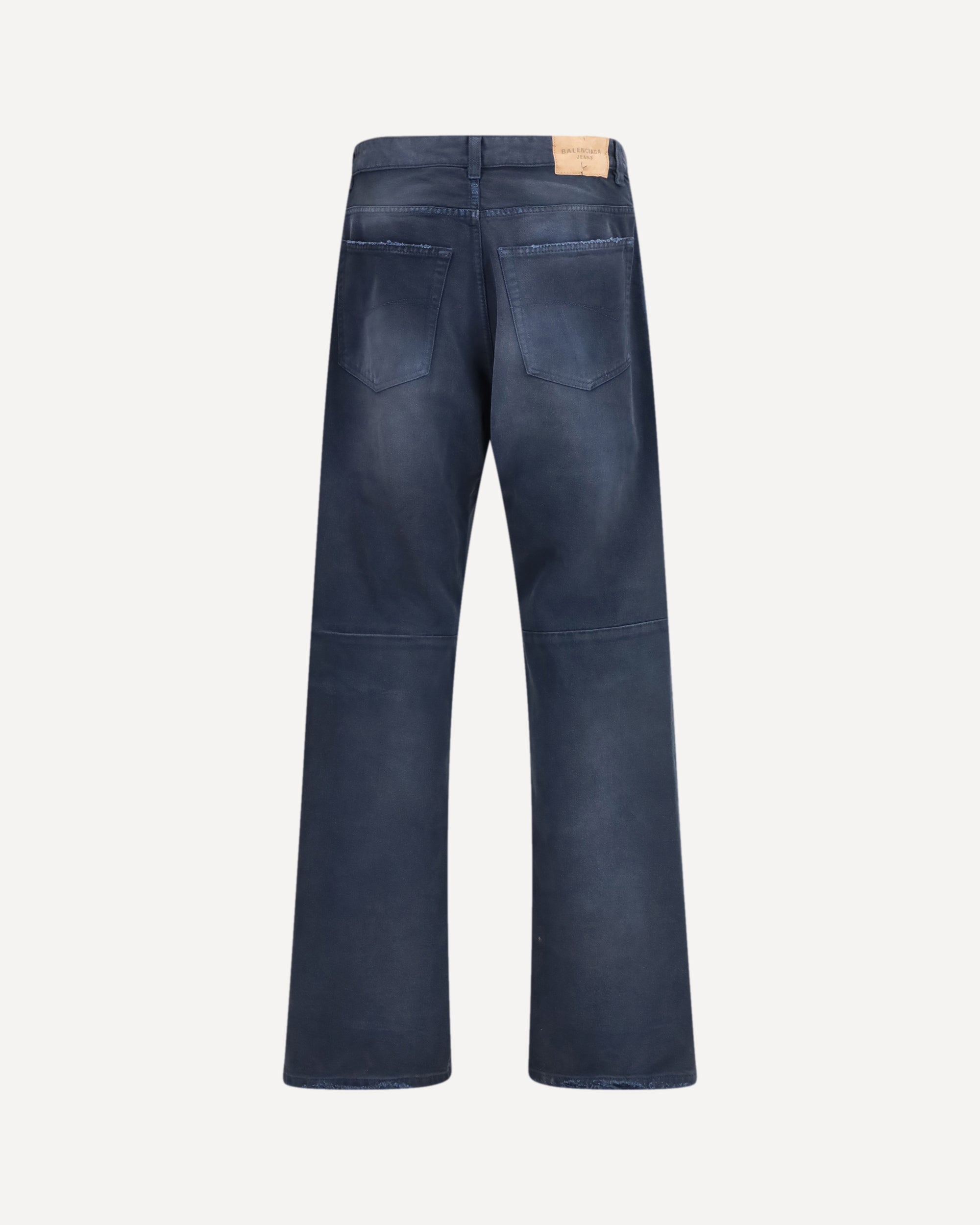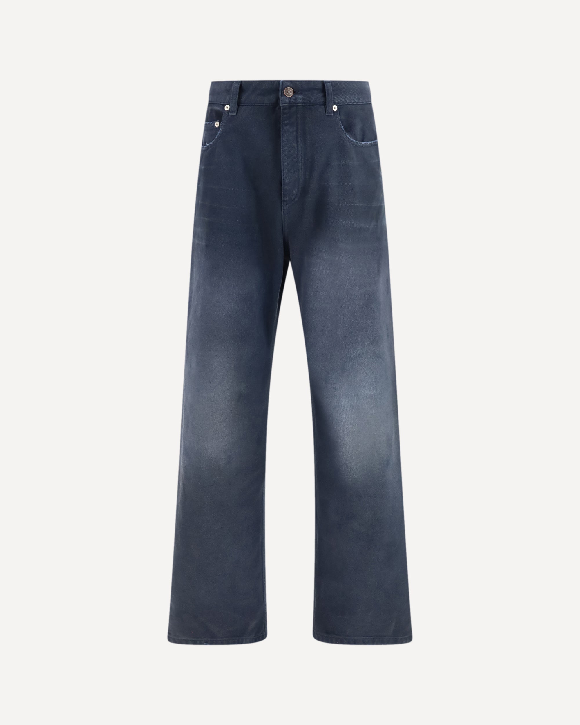 The wide-leg denim Jeans by Balenciaga reinterpret the classic five-pocket style with a relaxed and contemporary attitude. The loose silhouette is enhanced by a washed finish that adds depth and character, while belt loops and a zip-and-button fastening emphasize its clean construction. A logo patch applied at the back completes the design with Balenciaga’s unmistakable signature.
