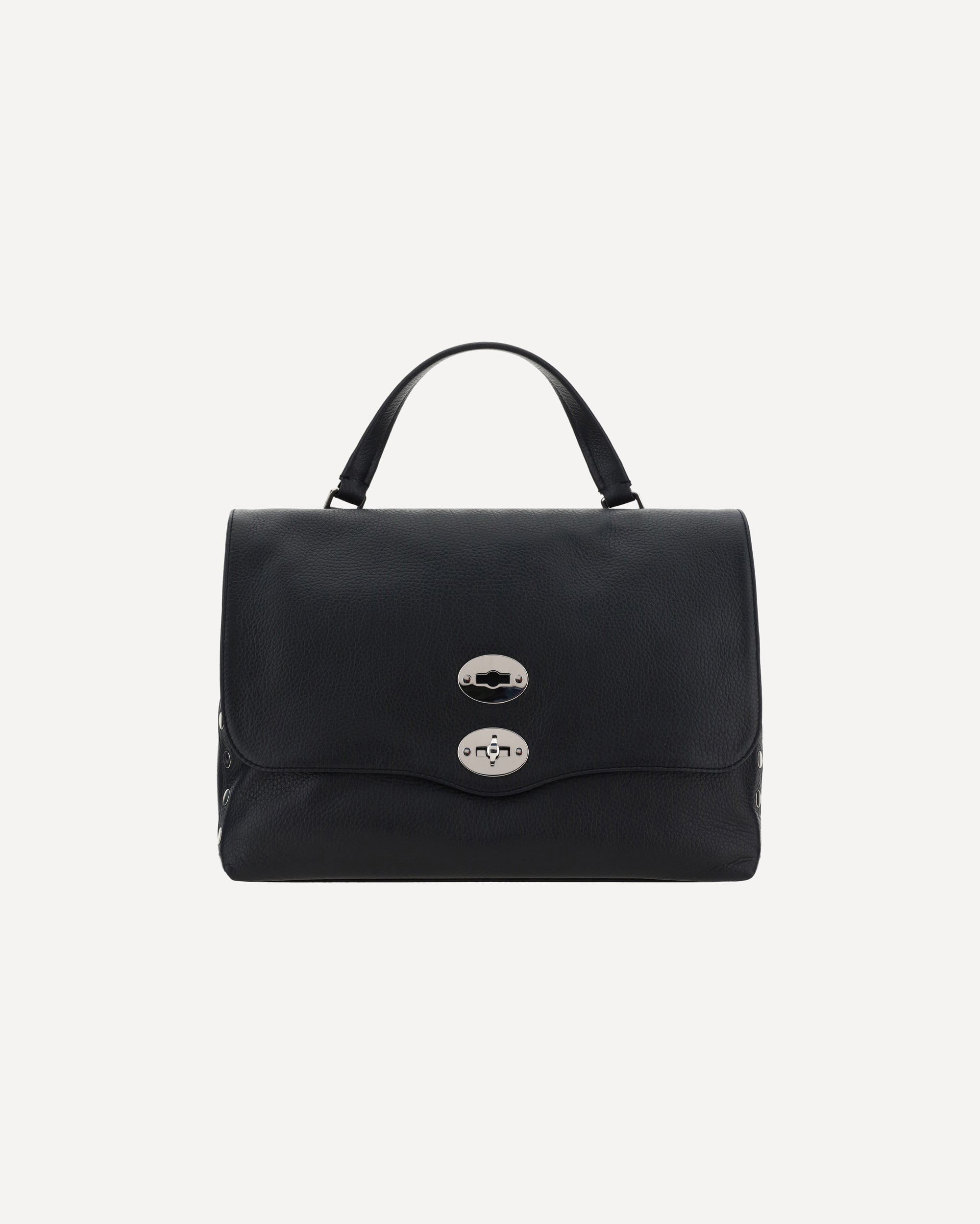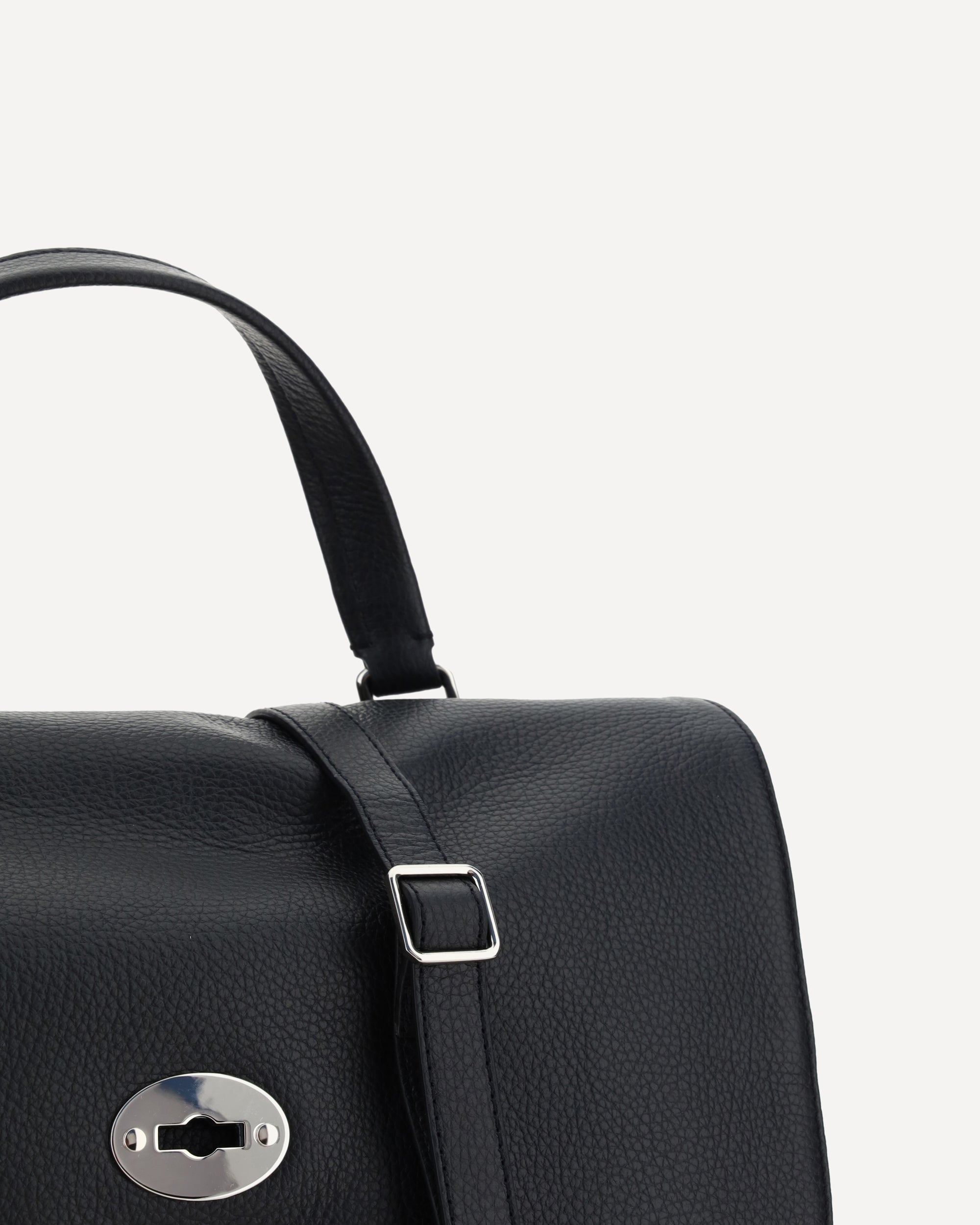 The Postina Daily leather Shoulder Bag by Zanellato is an icon of understated elegance and everyday functionality. Made of soft and durable leather, it features a single flat top handle and a front closure with swivel hook, a distinctive detail of the Postina model. The adjustable, removable shoulder strap offers several carrying options, while flat studs on the side panels add a contemporary touch. The well-organized interior is divided into two compartments with a handy welt pocket designed to neatly store essentials. A versatile accessory, ideal for accompanying the day in style.