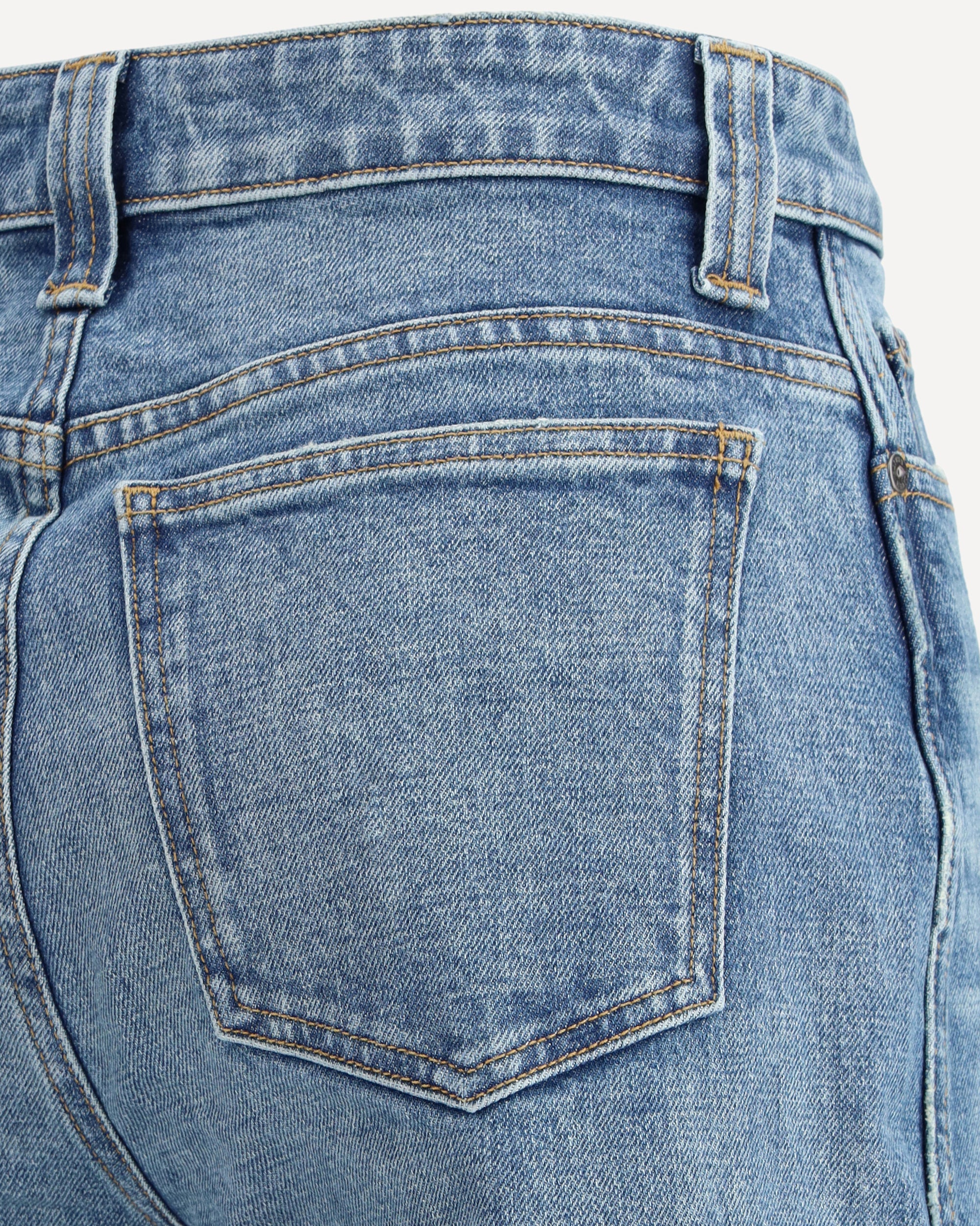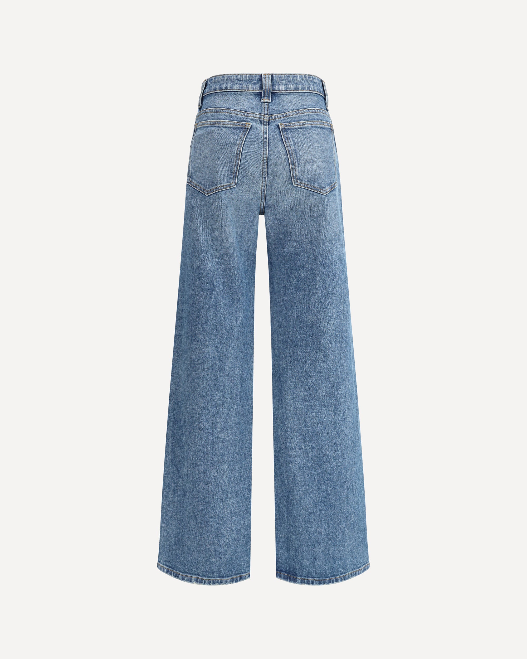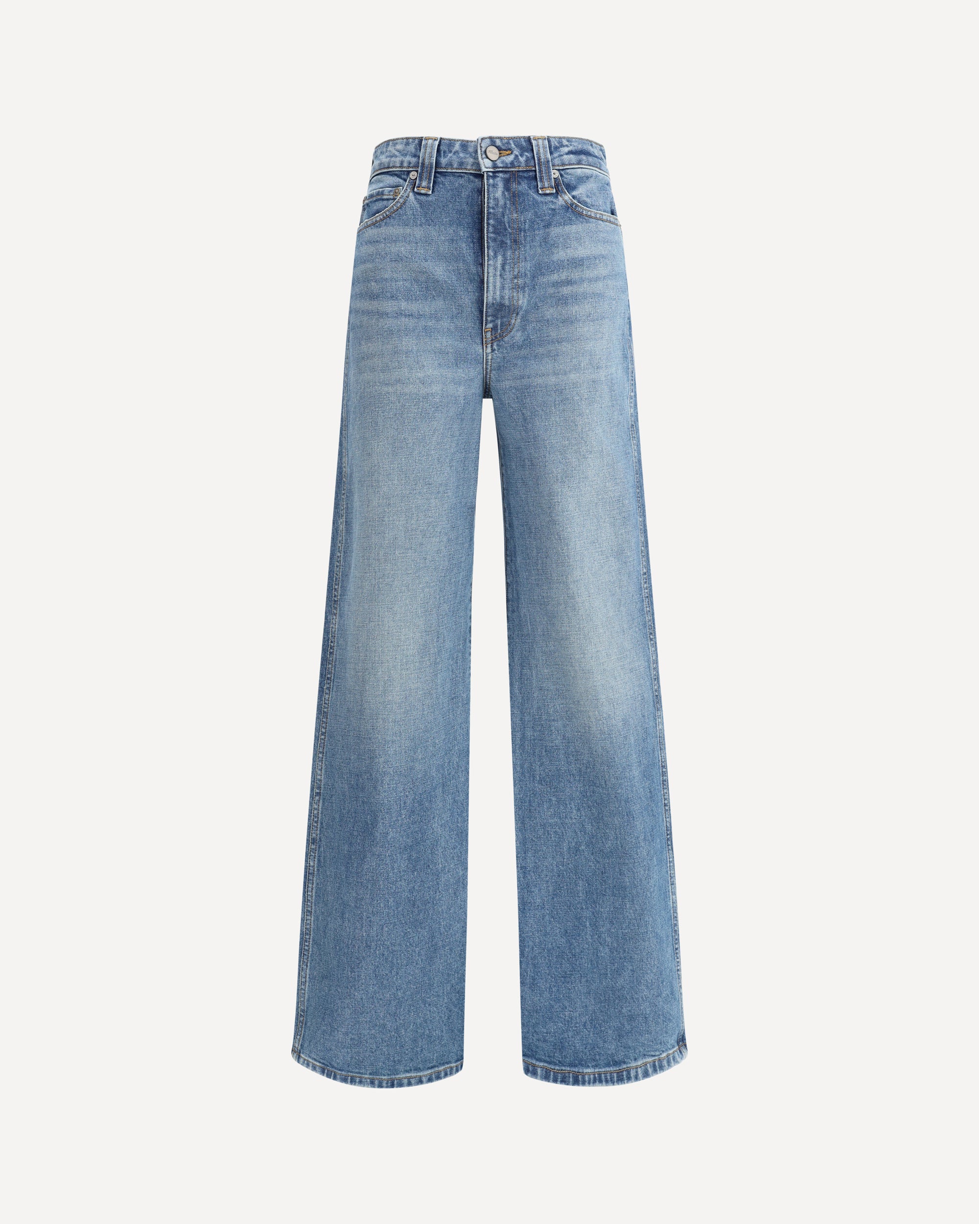 Khaite's cotton Dane Jeans are a wide-leg, five-pocket style with a mid-rise waist and front button and zipper closure. Belt loops at the waistband allow for customization of the fit.