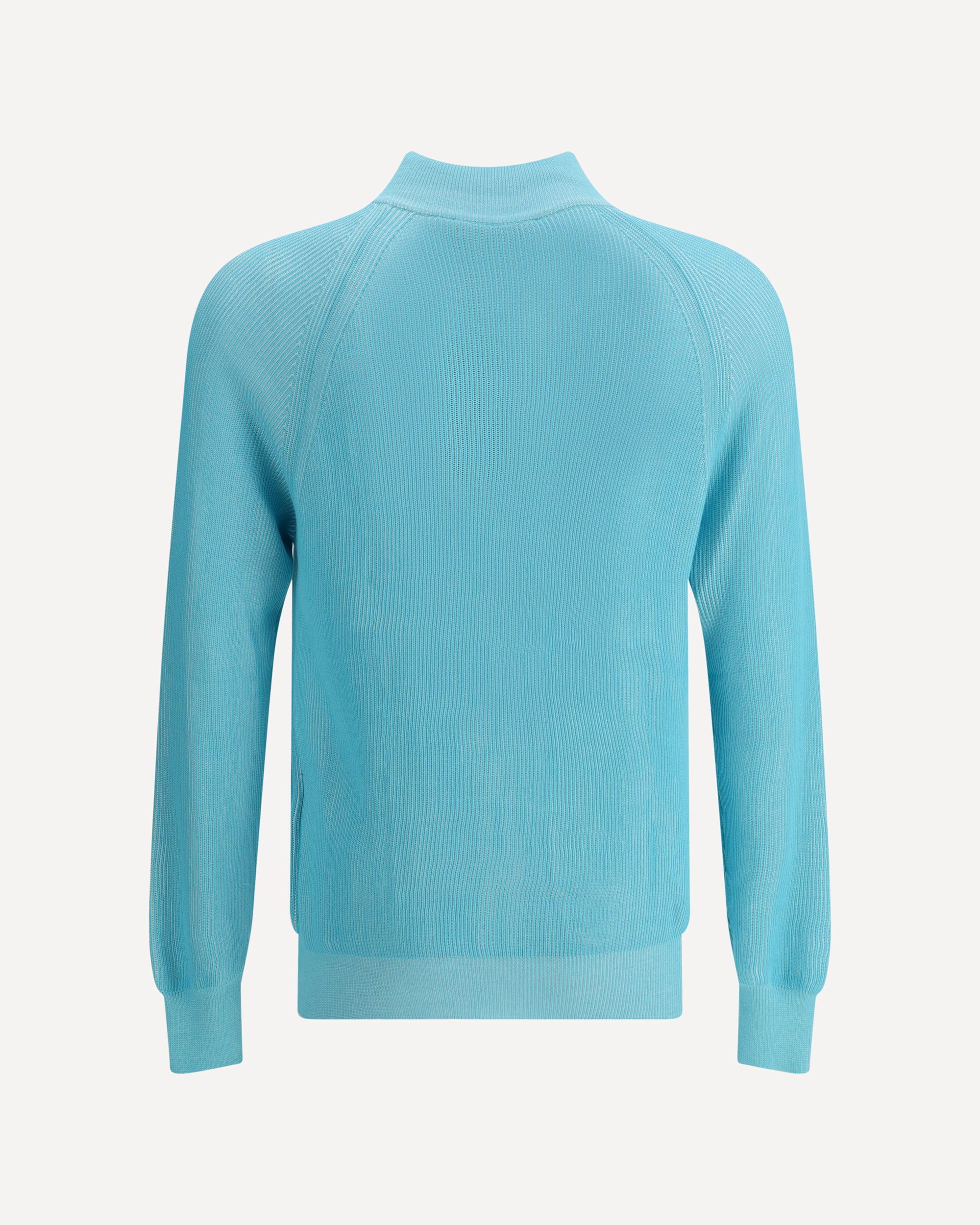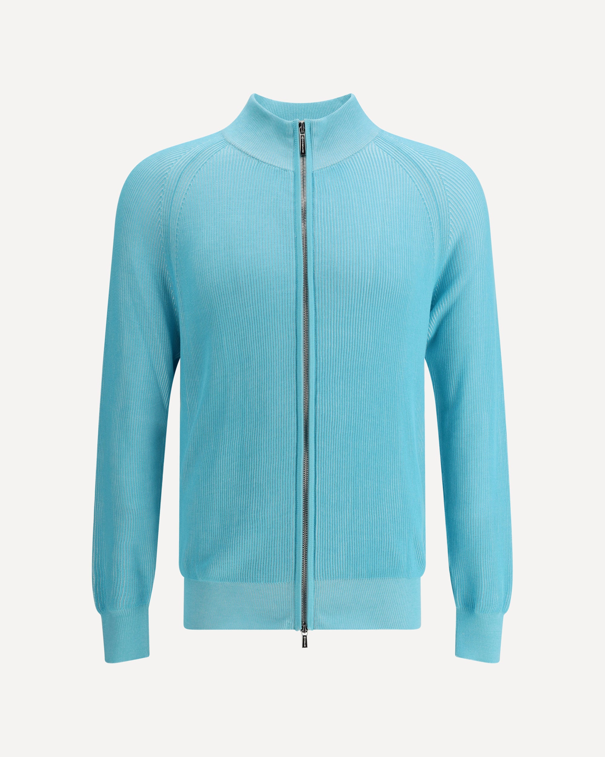 The Dean-sia Cardigan by Moorer is a refined and functional garment, ideal for a stylish yet practical look. The double-slider front zipper closure allows for an adjustable fit, while the high ribbed collar offers extra protection from the cold, giving the garment a sophisticated look. Ribbed hems and cuffs complete the design, ensuring a comfortable fit and snug fit. The all-over ribbed design adds an interesting texture, enhancing the garment with a stylish visual detail. Perfect for pairing with casual or smart-casual looks, this cardigan is a must-have for those seeking quality and style.