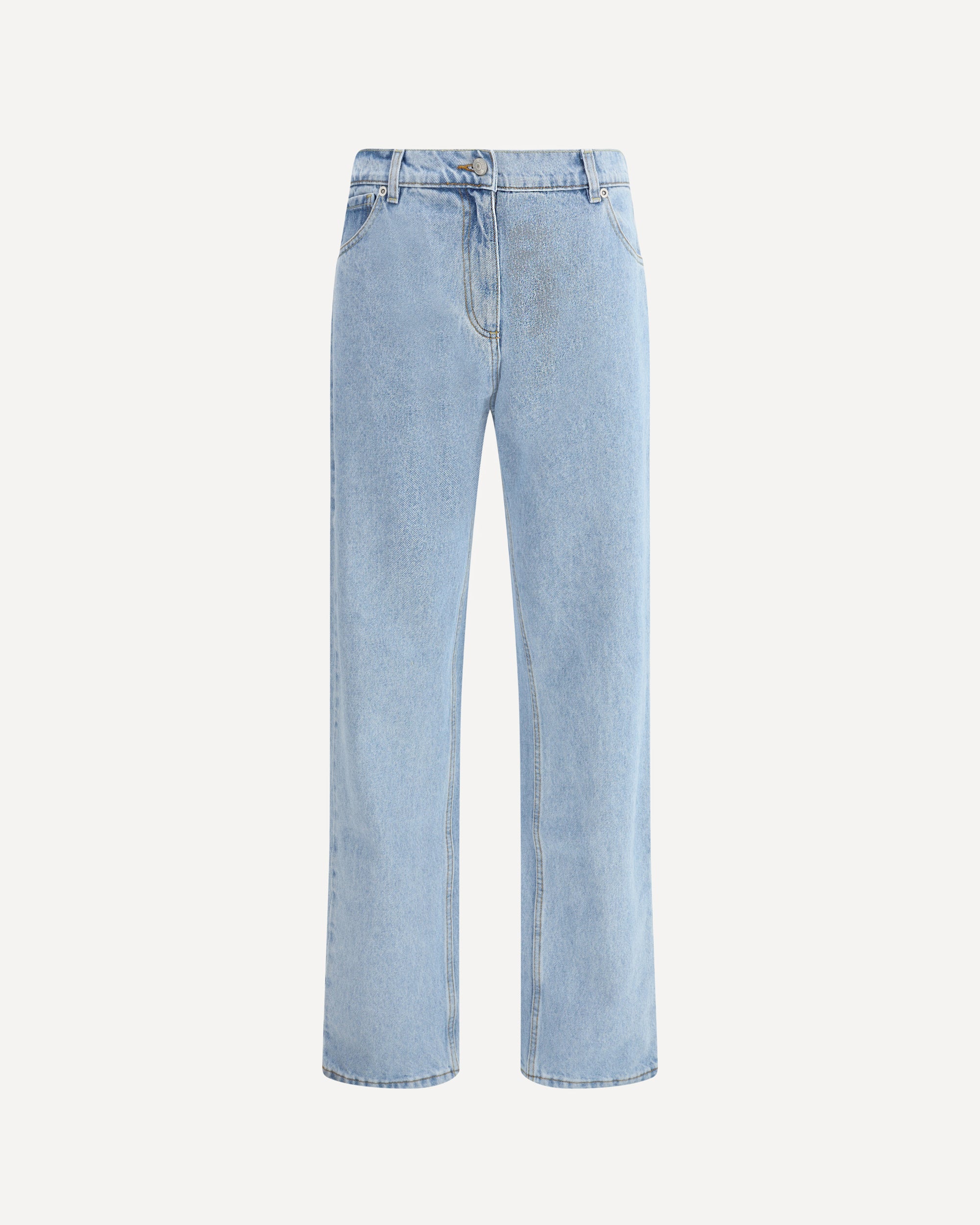 Made of pure washed cotton, Magda Butrym's straight jeans offer a casual yet curated aesthetic. Featuring a classic five-pocket design, they feature belt loops at the waist, a zipper fly and single button closure. The logo label on the back adds a distinctive detail, perfect for completing an everyday look with a touch of signature style.