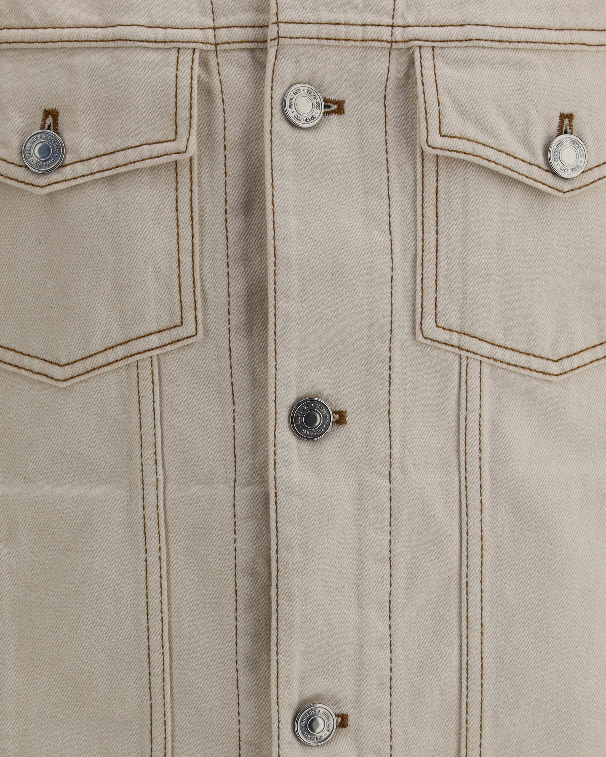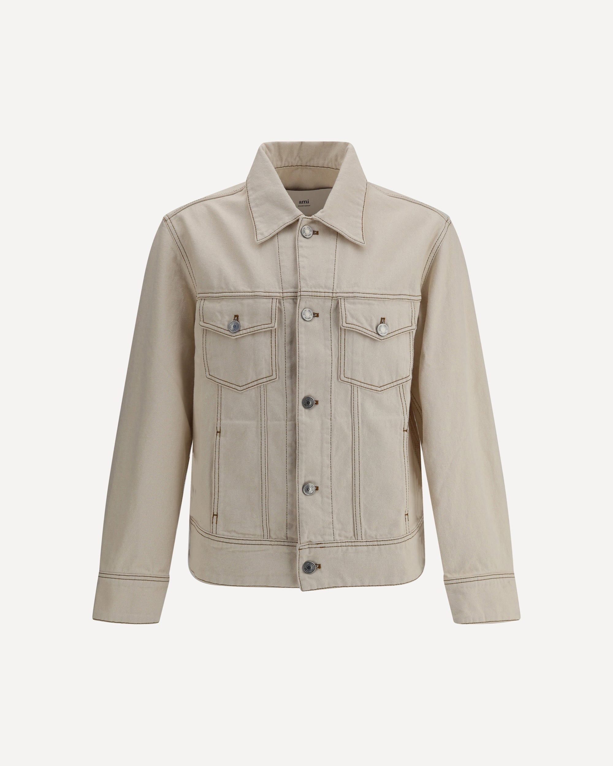 The cotton Denim Jacket by Ami Paris is a classic and modern design perfect for a casual and sophisticated look. It features a classic collar, which adds a touch of elegance, and a front button closure for a practical fit. The two flap welt pockets on the front and two side slit pockets provide functional space and a practical detail. Adjustable button cuffs allow you to adjust the fit. An ideal garment to add a touch of style to your daily wardrobe.