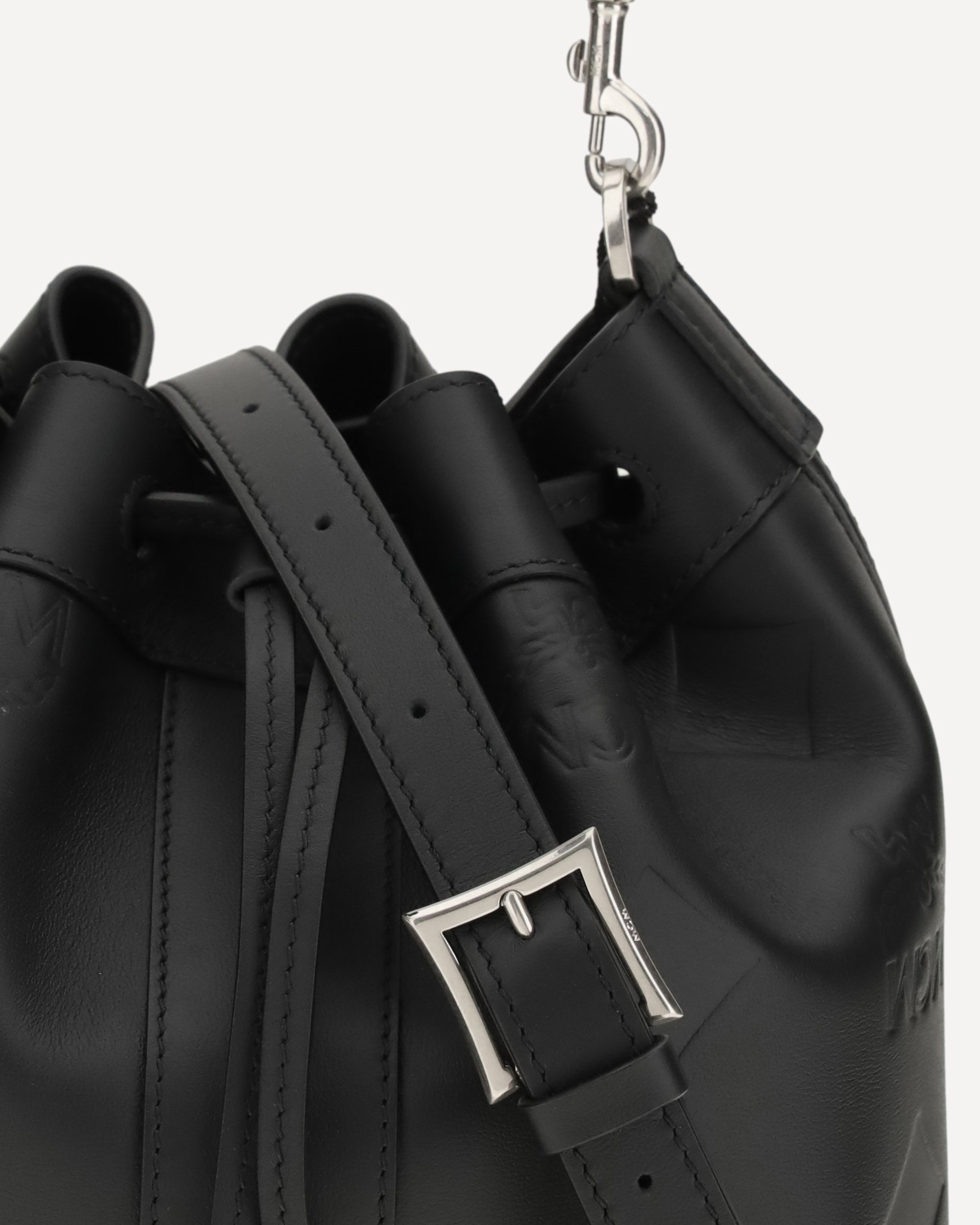 The Medium Dessau Bucket Bag by MCM impresses with a rounded, structured base that holds its shape no matter the occasion. The surface is decorated with the embossed MCM logo and distinctive graphic details, while the exposed stitching, profiled edges and drawstring closure combine functionality and style. A discreet metallic logo stands out on the front for a sleek, contemporary touch.