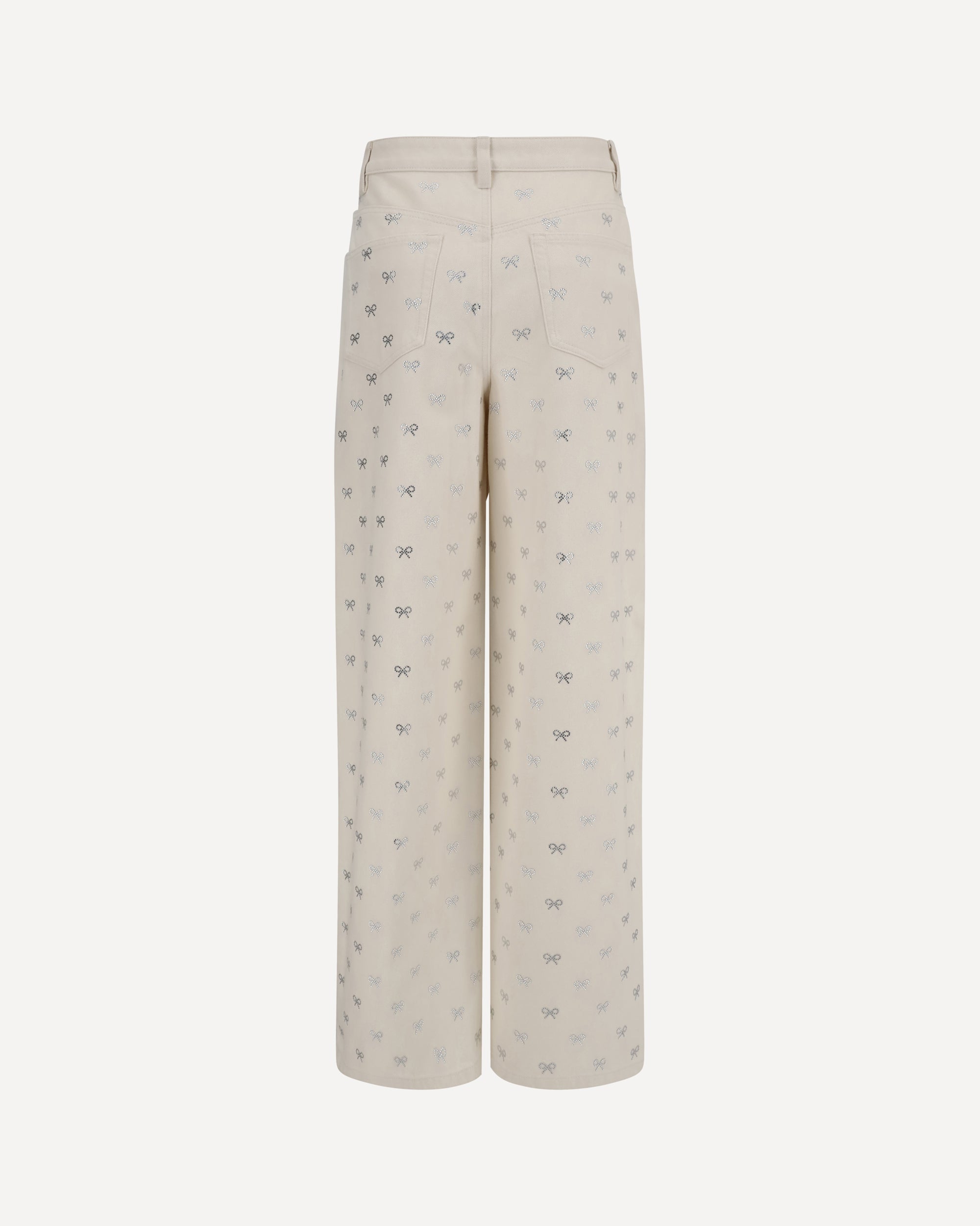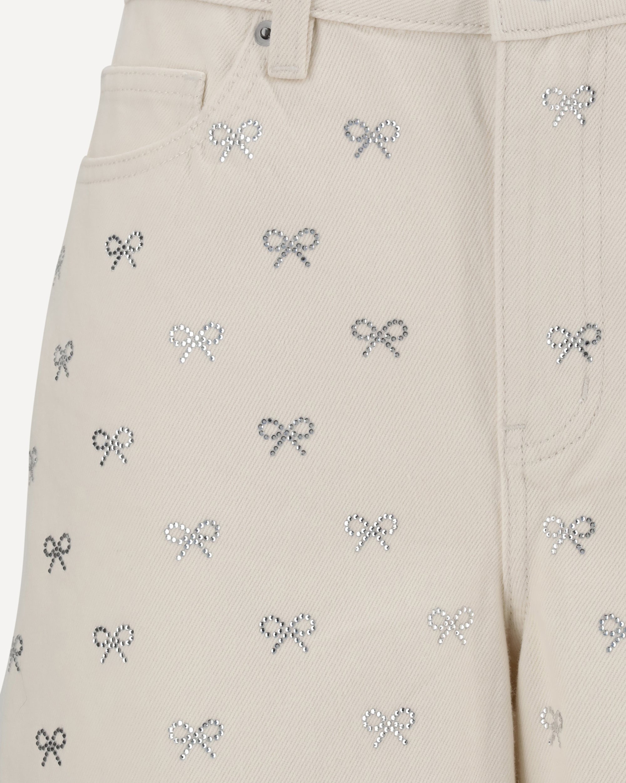 Self Portrait's Diamante Bow Jeans reinterpret the classic wide leg style with a glamorous twist. Made in the traditional five-pocket design, they feature a zip-and-button closure, waist loops and a shower of all-over rhinestone bows for a bold and shiny style.