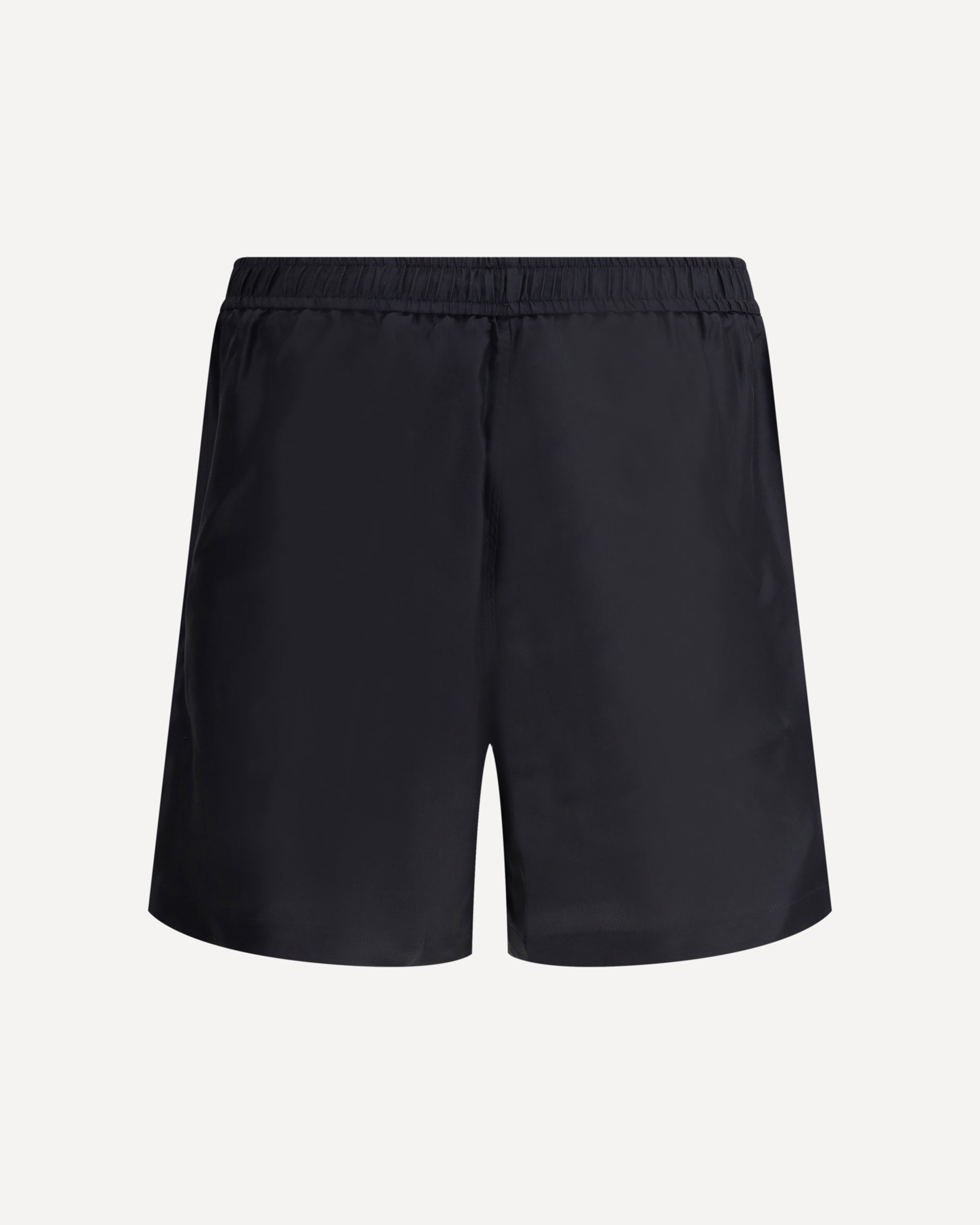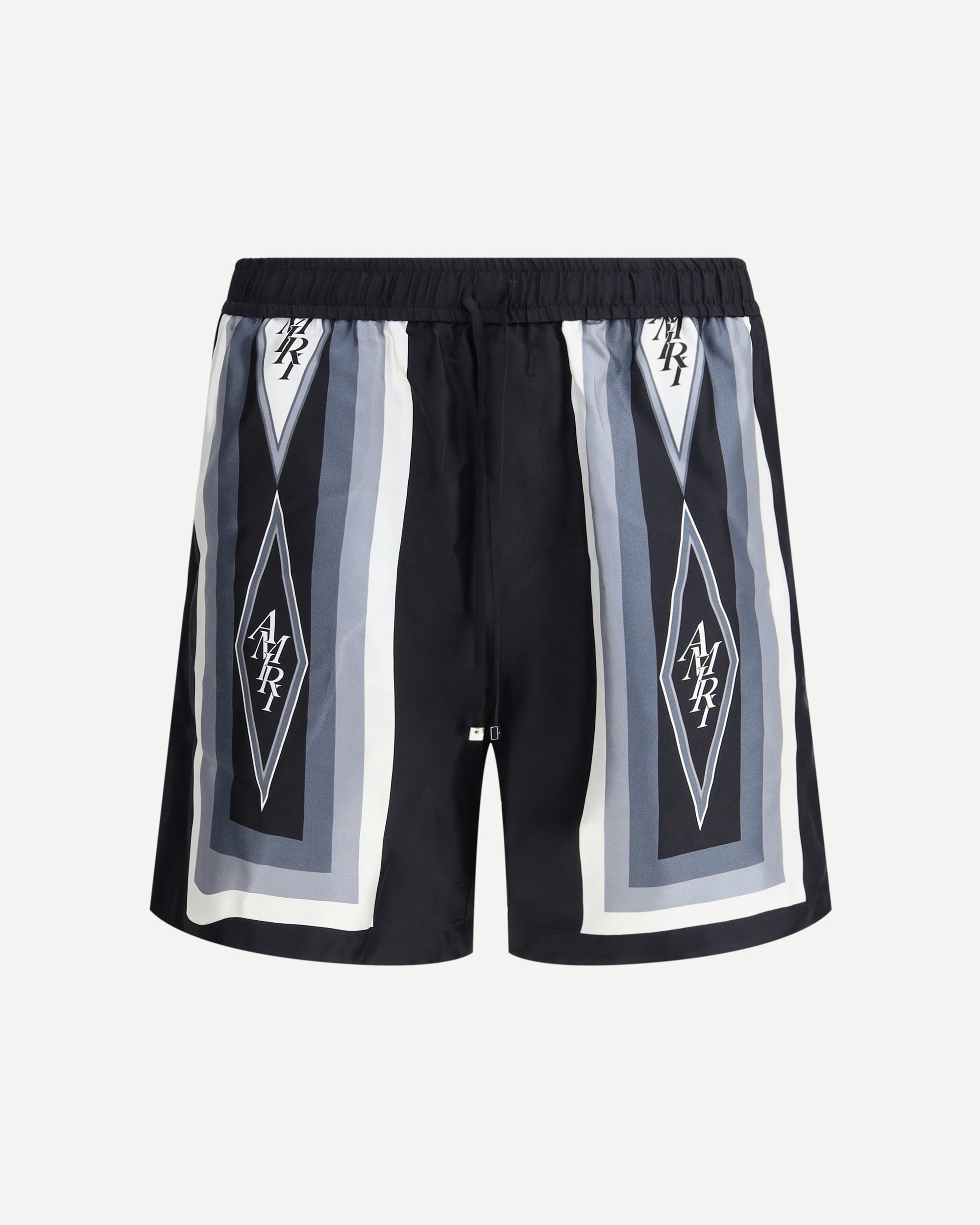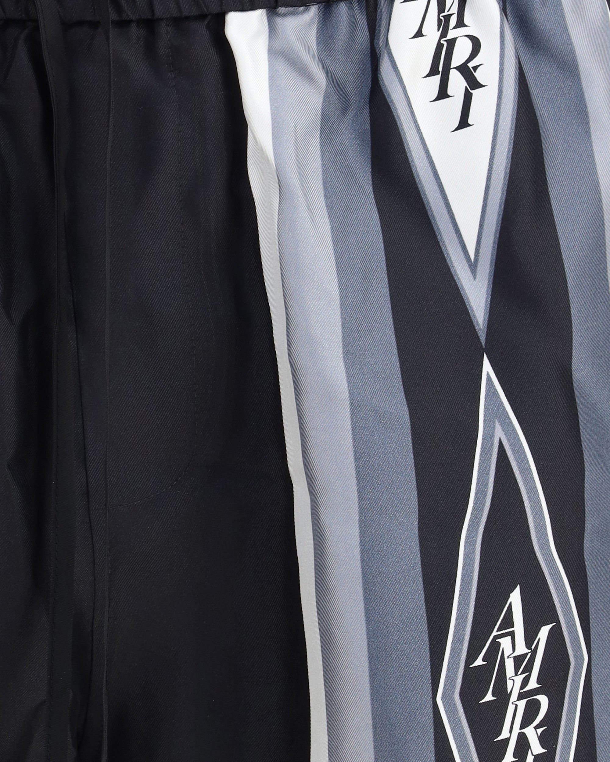 Amiri's silk Diamond Shorts represent the perfect balance of luxury and streetwear style. Made of lightweight, fluid silk, they offer a comfortable fit thanks to an elasticated waistband with adjustable drawstring. Featuring two side welt pockets, they are distinguished by the iconic contrasting Amiri monogram on the front, giving the garment a strong and recognizable identity.