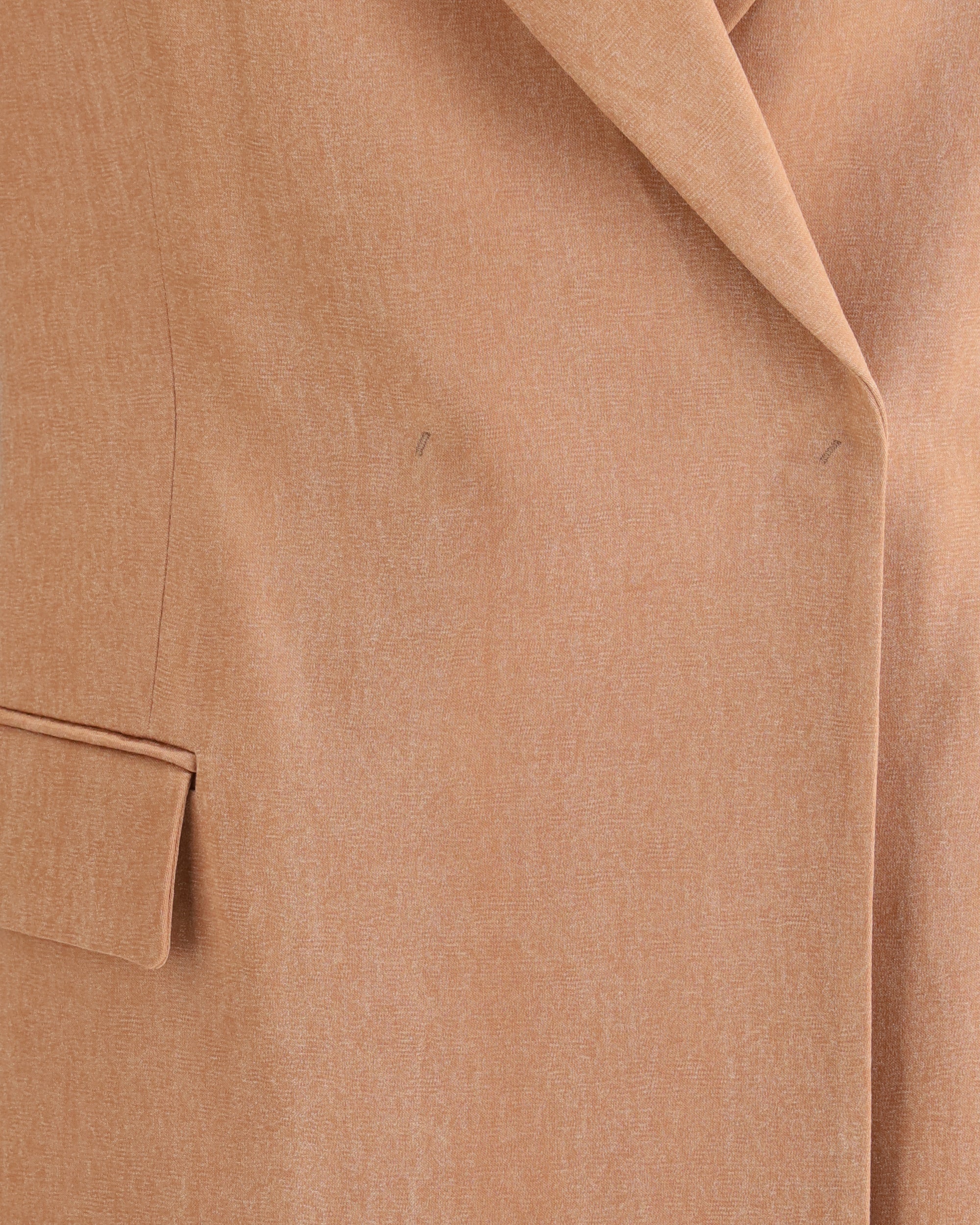 Giorgio Armani's double-breasted satin Blazer is a sophisticated and elegant piece. The double-breasted front closure with hidden buttons gives a clean and refined look, while the notched lapel adds a touch of timeless style. The two side welt pockets with flaps and the breast pocket offer practicality without compromising aesthetics. The two rear vents complete the design, ensuring a comfortable fit and a slender silhouette. Perfect for formal occasions, it expresses the quality and elegance typical of the brand.
