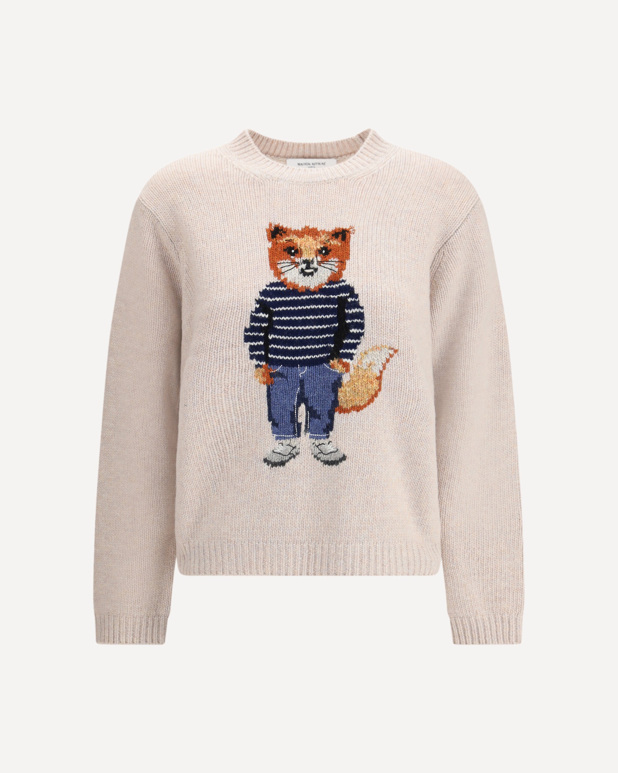 The merino wool Jumper by Maison Kitsuné blends natural softness with contemporary style. Its fine knit enhances the comfort-fit silhouette, while the crew neckline and ribbed trims bring structure and refinement. The signature Dressed Fox intarsia at the front embodies playful elegance and Parisian spirit, making this piece a versatile icon of character and craftsmanship.