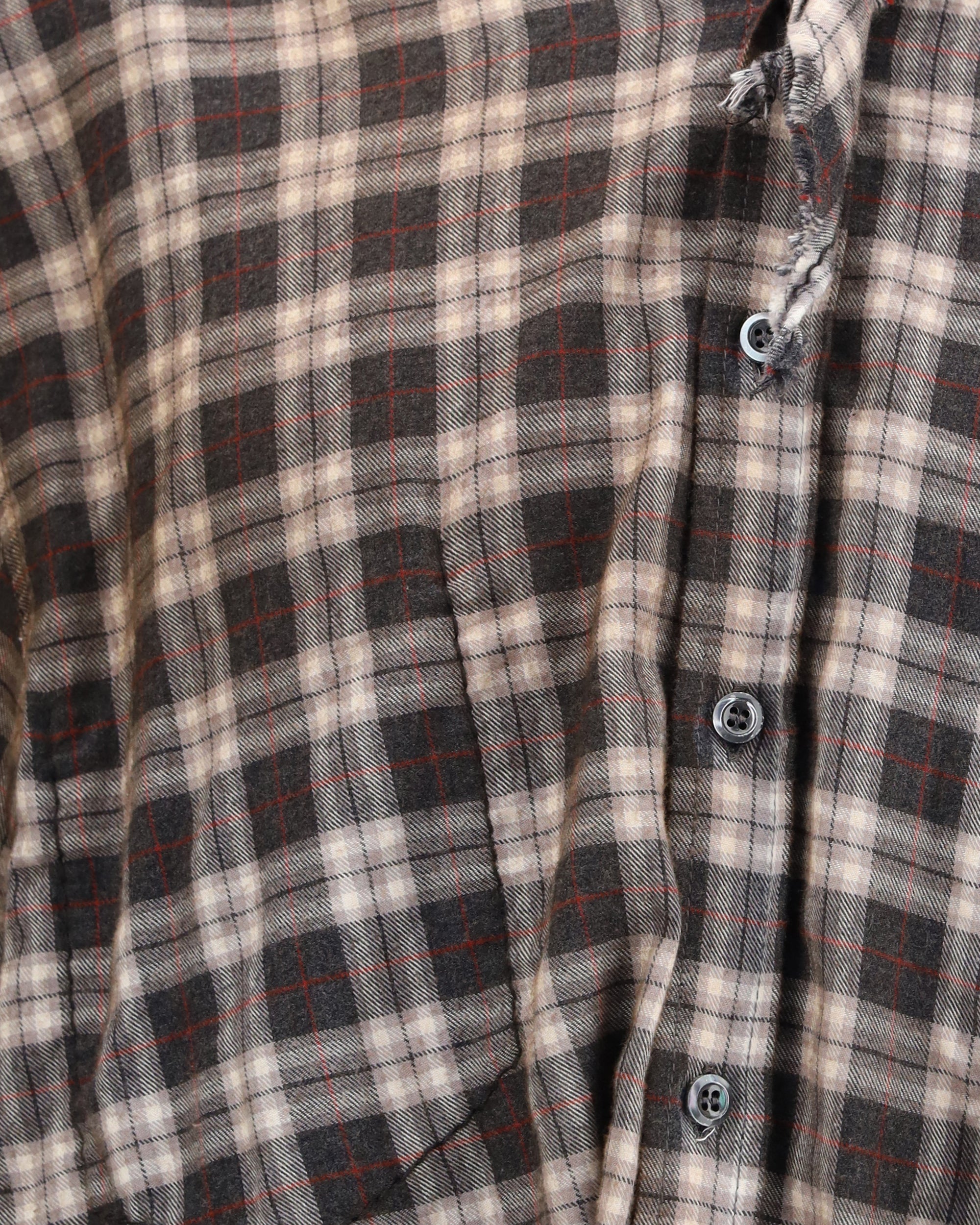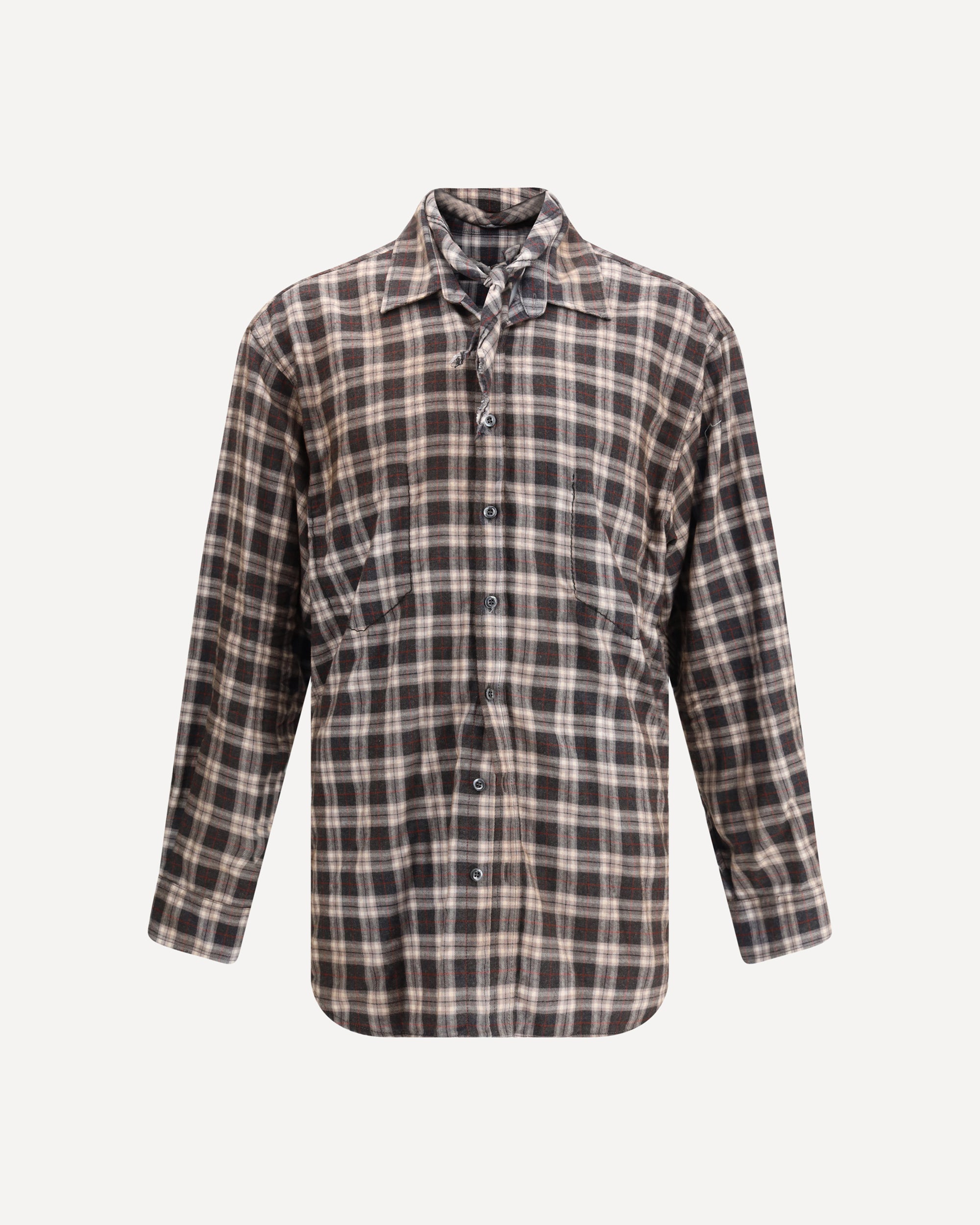 The Butch Cotton Shirt by Dsquared2 embraces warm brown tones and a unique collar design. Beyond the classic collar, it features an overlapping detail that allows you to tie a bow or knot, adding a sophisticated and feminine touch to a piece with bold and versatile character
