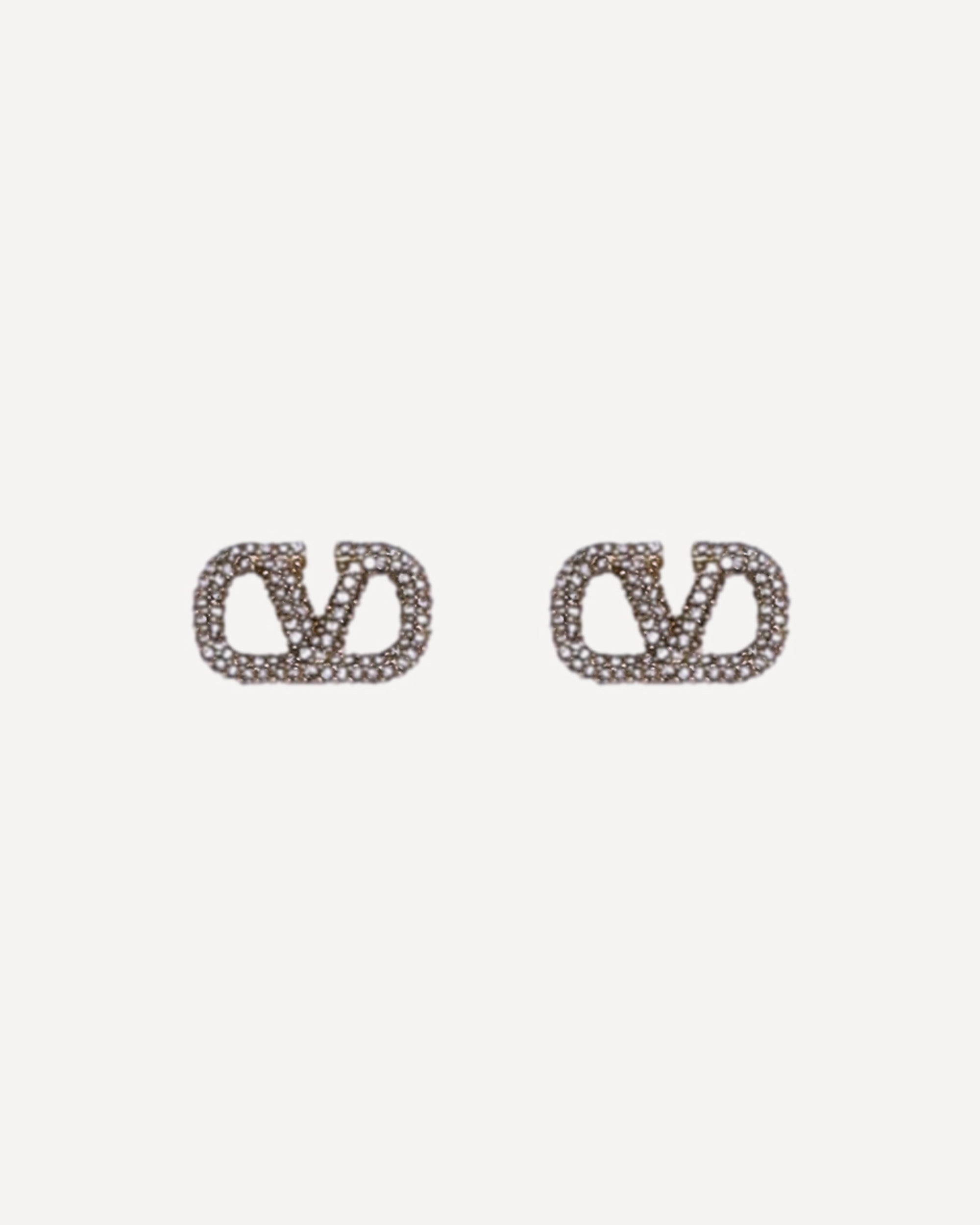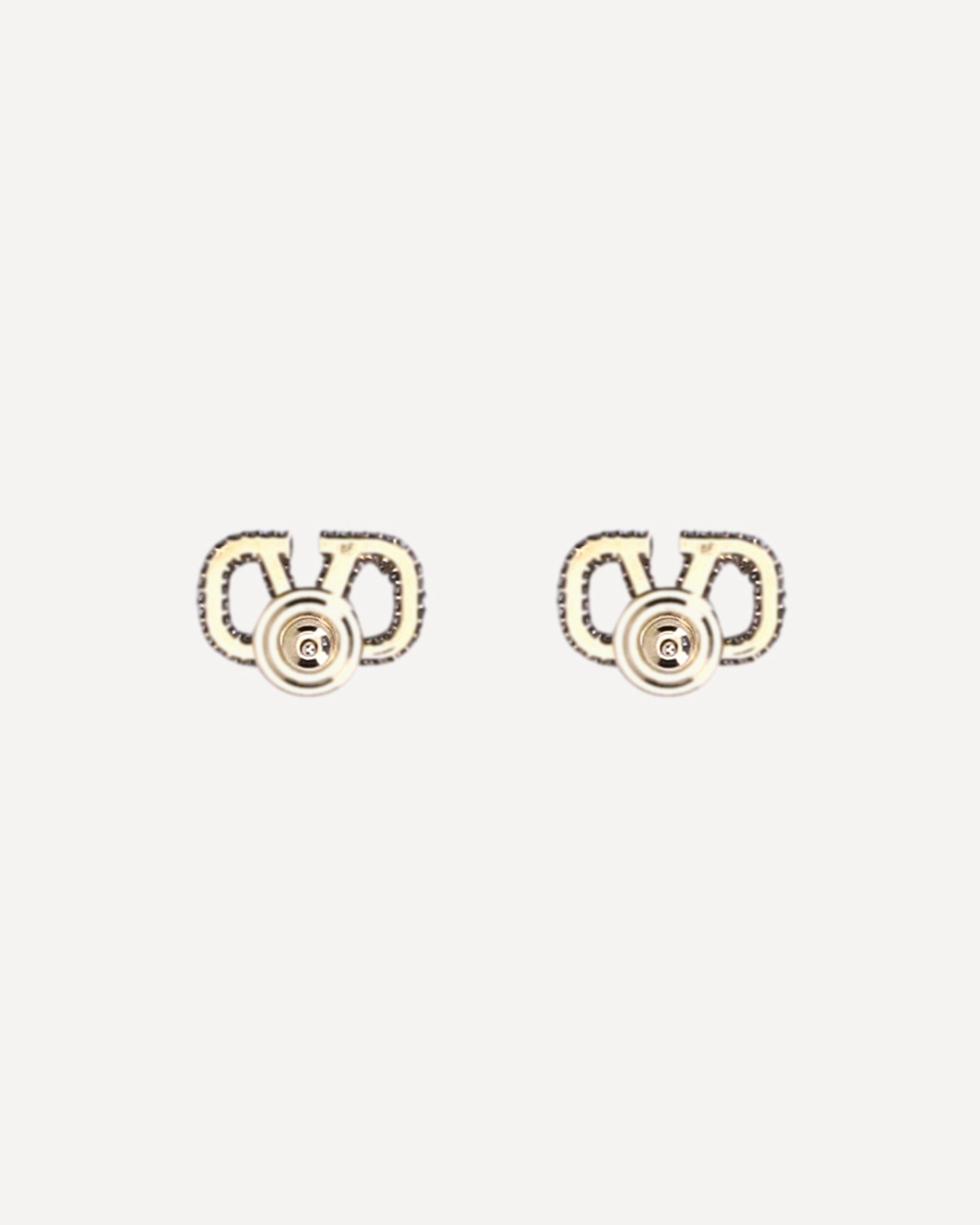 Valentino Garavani's VLogo Earrings are an elegant and luminous accessory, embellished with set crystals that enhance the Maison's iconic logo. Crafted with an 18-karat gold finish, they feature a compact silhouette measuring 1.6 x 1 cm. Equipped with a pivot clasp, they are designed for pierced ears and ideal for adding a refined and distinctive touch to any look, whether day or evening.