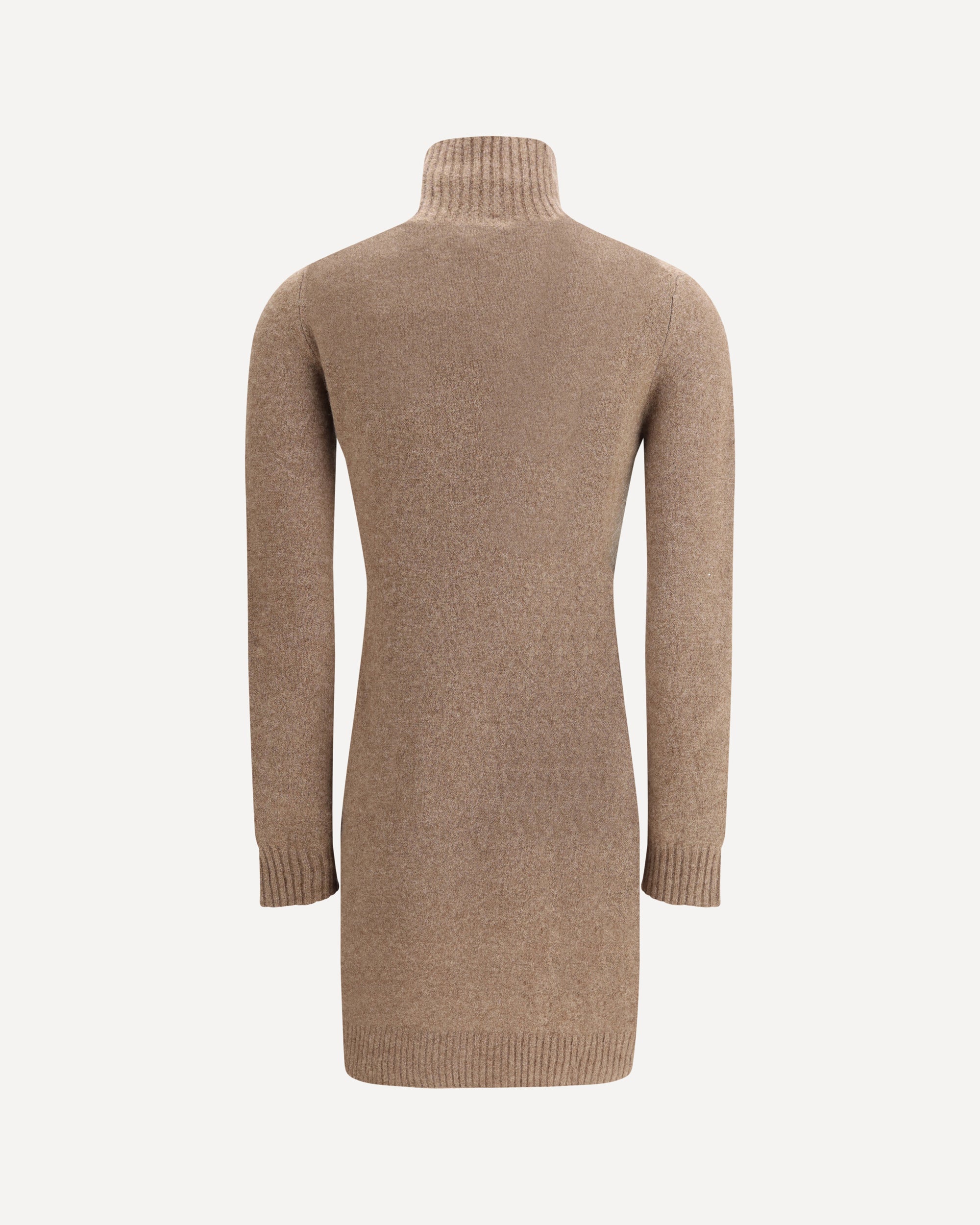 The Max Mara stretch cashmere mini Dress is defined by its sleek, close-fitting silhouette that embraces the body with refined simplicity. A high neckline and long set-in sleeves highlight its minimalist elegance, while ribbed finishes add a subtle touch of structure. Lightweight and unlined, this dress embodies effortless sophistication, making it a timeless piece for both day and evening wear.
