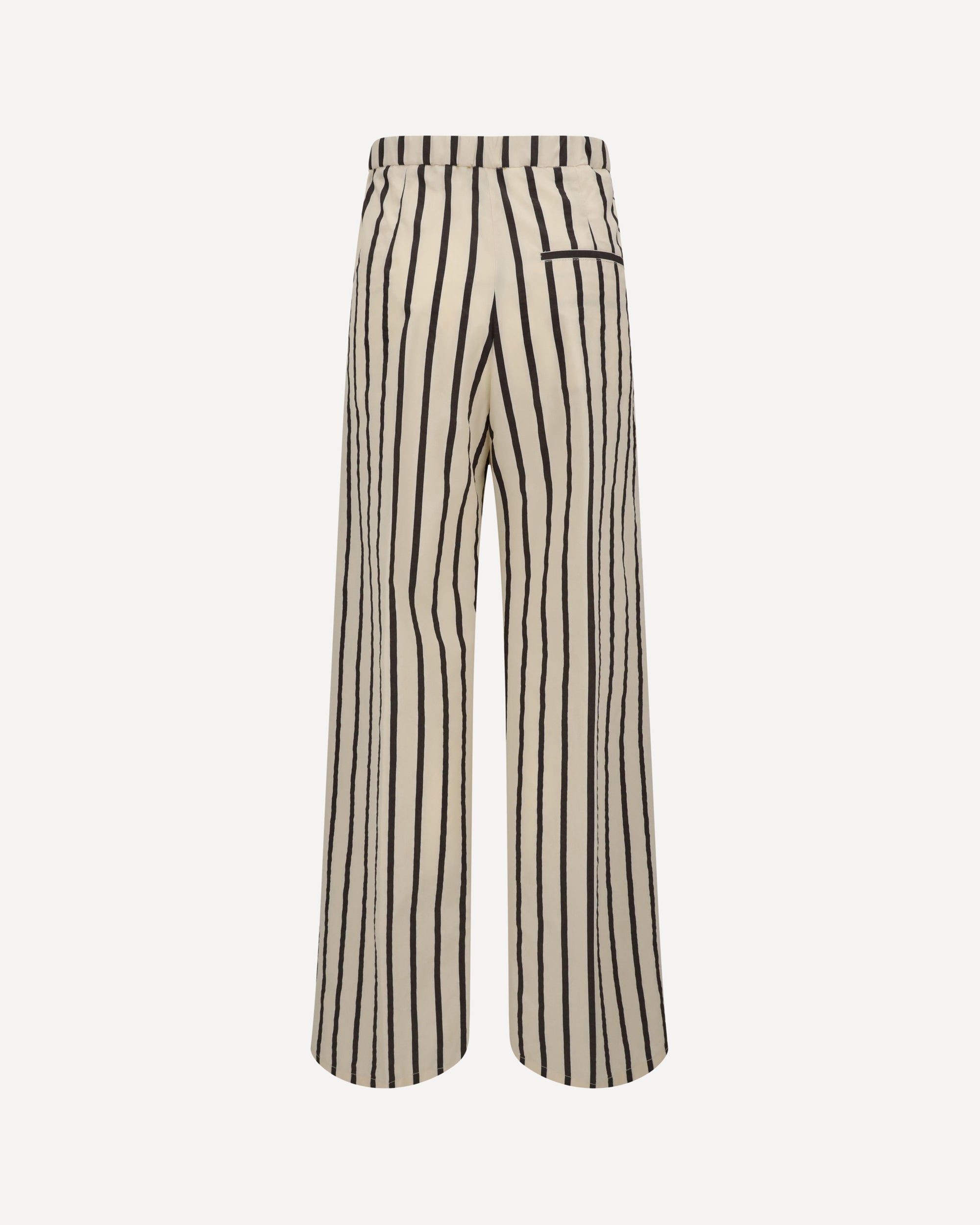 Forte_Forte's Striped wide leg Pants express relaxed, contemporary elegance, thanks to the wide cut and light vertical lines. The elasticated waistband ensures comfort and a natural fit, while the side zipper ensures a discreet and clean closure. Completing the design are two side welt pockets and two back pockets, also welt, for the perfect balance of functionality and style.