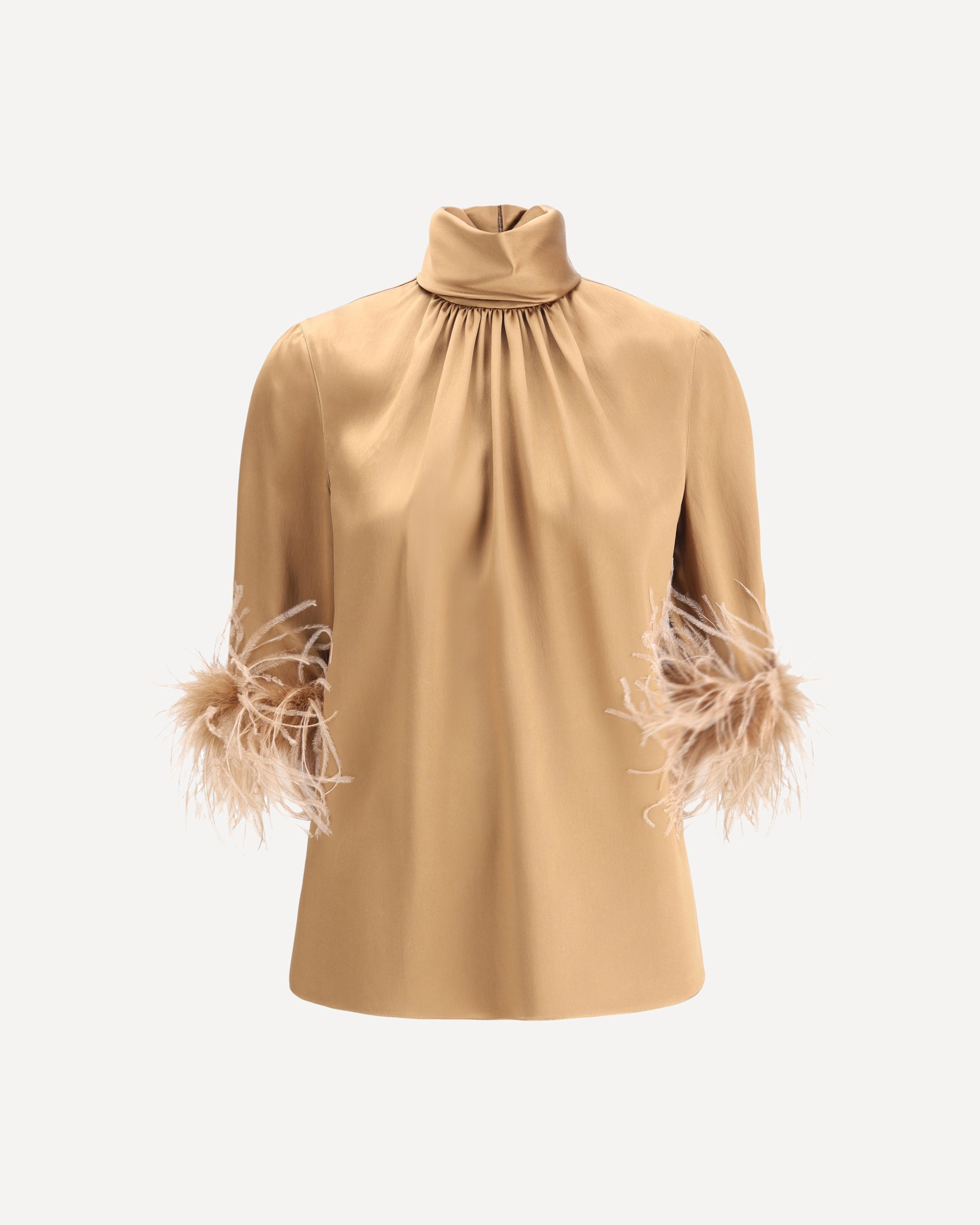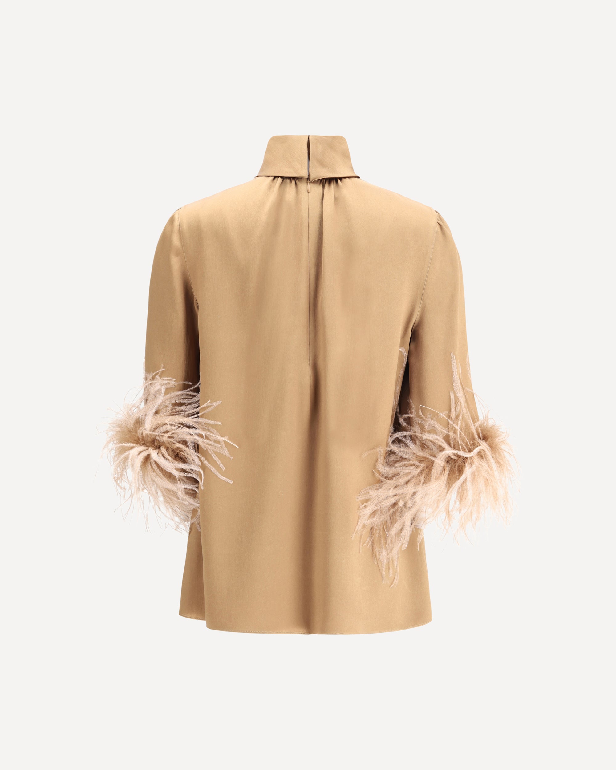 Dolce & Gabbana's feathers Blouse is an elegant and sophisticated piece. Featuring a high neck that adds a touch of sophistication, it has a back zipper closure for a perfect fit. The 3/4 sleeves, embellished with feather trim, create an elegant and chic contrast making this versatile and easily combinable garment ideal for those seeking a sophisticated look with a distinctive and luxurious detail.