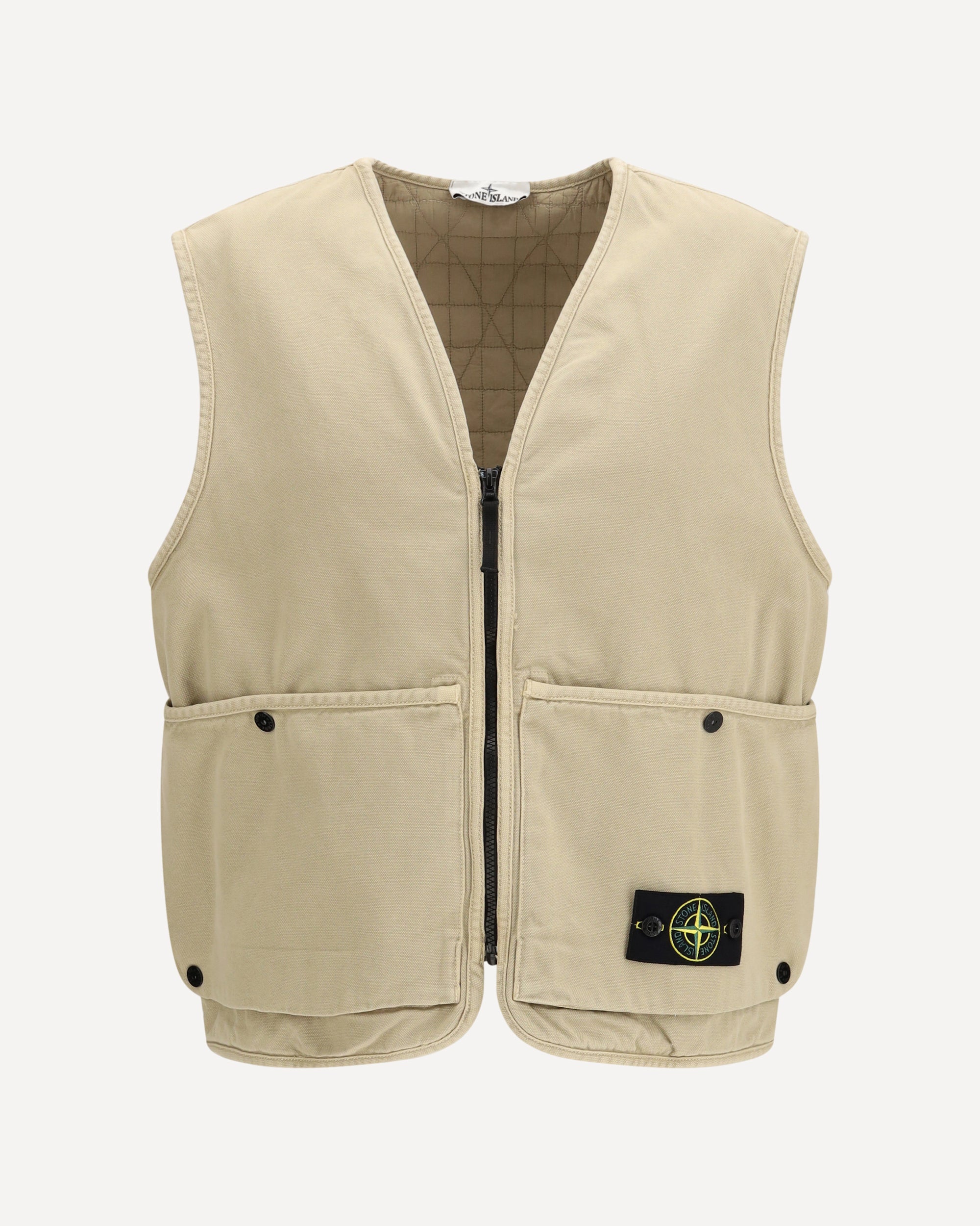 The oversized quilted Vest by Stone Island features a contemporary and functional design. Crafted from cotton with a quilted construction, it includes a front zip and button closure for practicality and style. The design is completed with buttoned pockets and the iconic Stone Island logo patch, a signature brand detail. The oversized fit adds a modern and relaxed aesthetic.