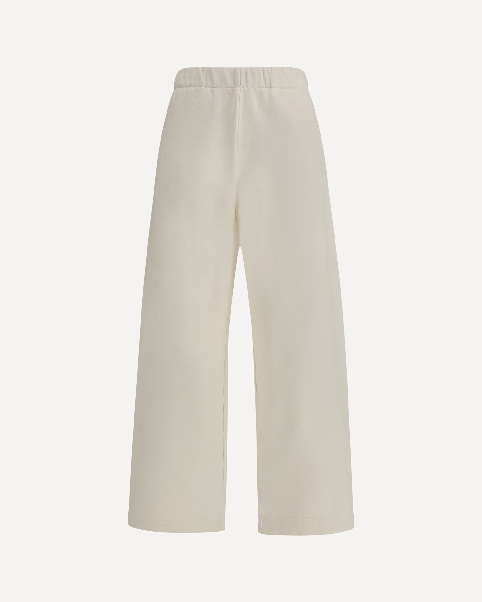 The silk and cotton Sweatpants by Max Mara reinterpret casualwear with a refined touch. Designed with a straight leg and cropped ankle cut, they balance comfort and sophistication. The gathered elastic waistband ensures ease of wear, while the welt side pockets add subtle functionality. Crafted in a soft silk-cotton jersey, they move effortlessly between laid-back elegance and contemporary versatility.