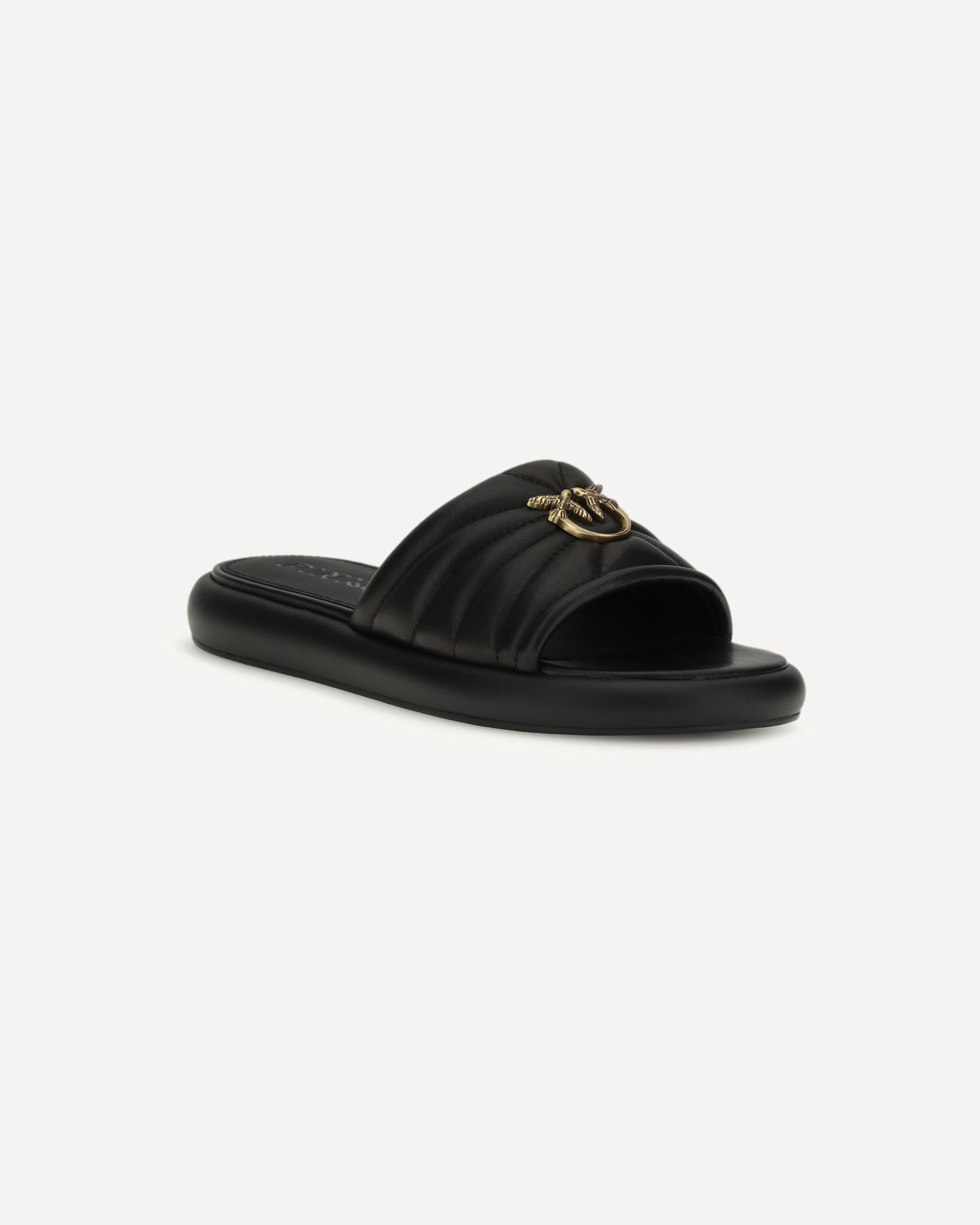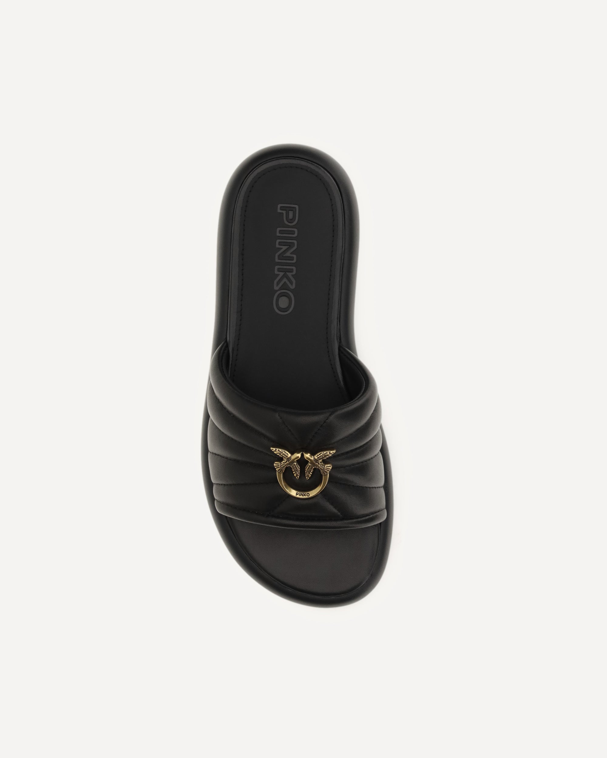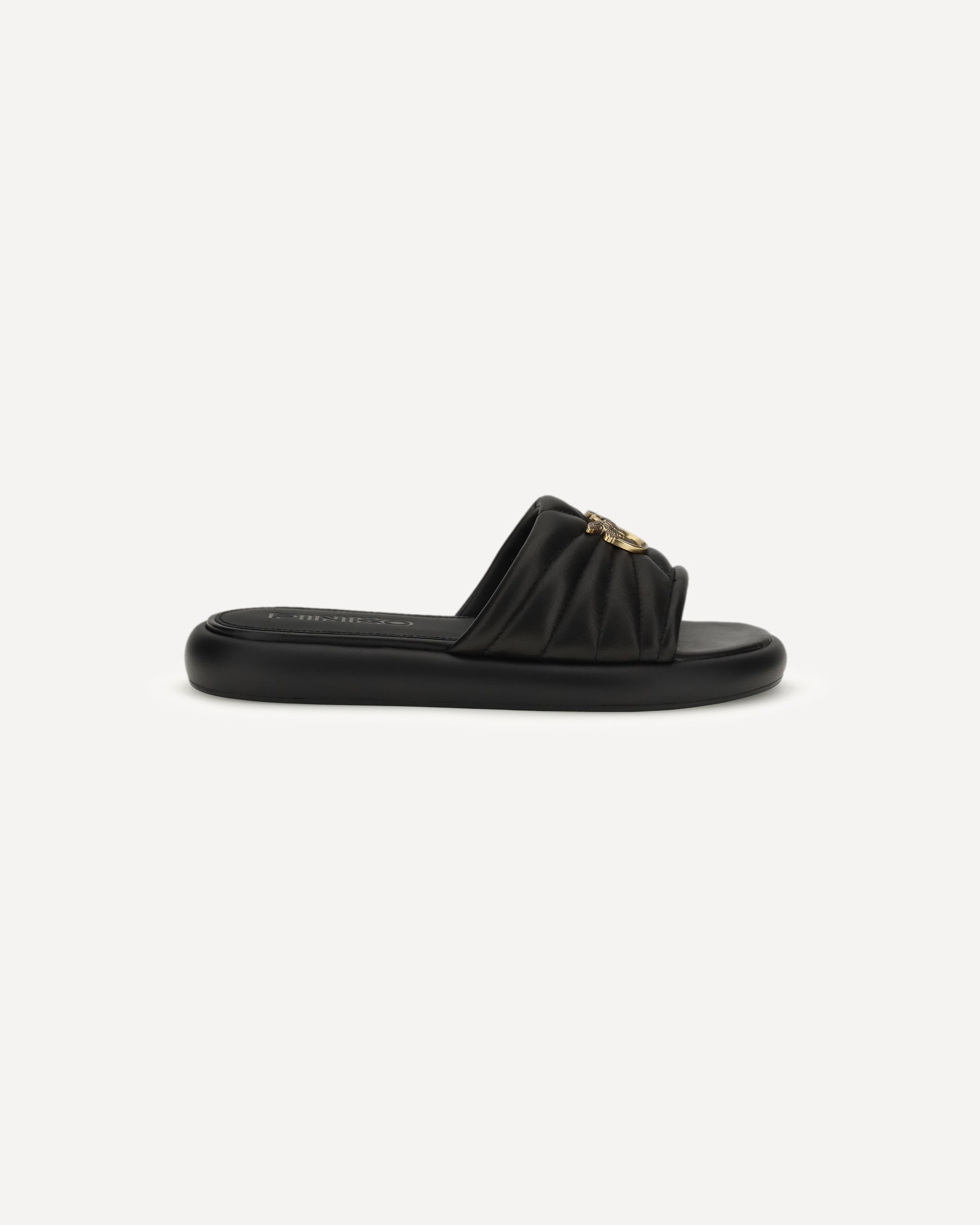 The Fiona Sandals by Pinko combine elegance with contemporary style. The round toe design is embellished with metal logo, while the logo-printed leather midsole adds a distinctive detail. The rubber sole completes the shoe, ensuring comfort and stability when walking.