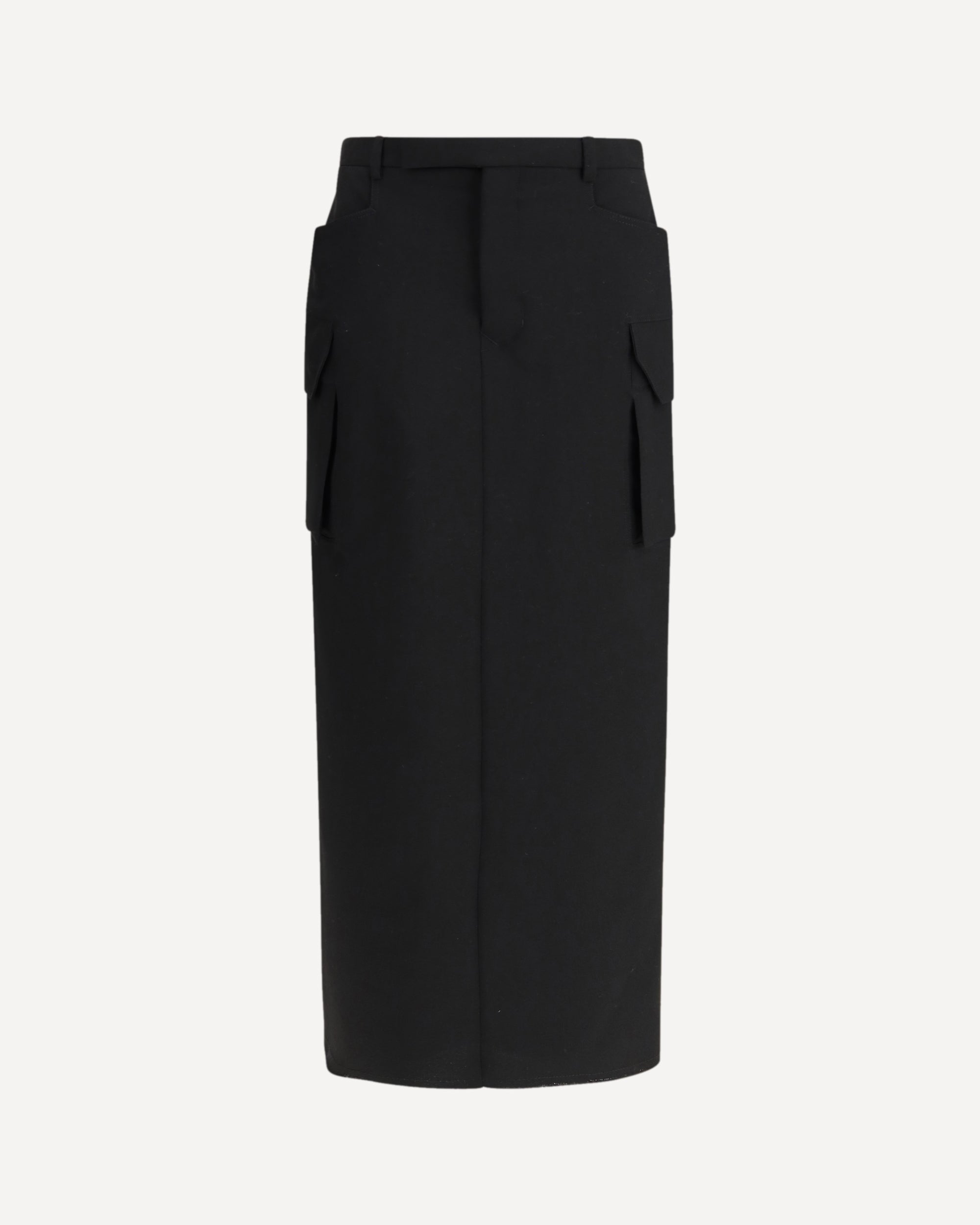 The Cargo midi Skirt by Rick Owens interprets utility style with a sophisticated twist. Featuring a front zipper and hook-and-eye closure, it has belt loops at the waist, two large side flap pockets and a raw-cut hem. The back slit adds movement and femininity to the structured design.