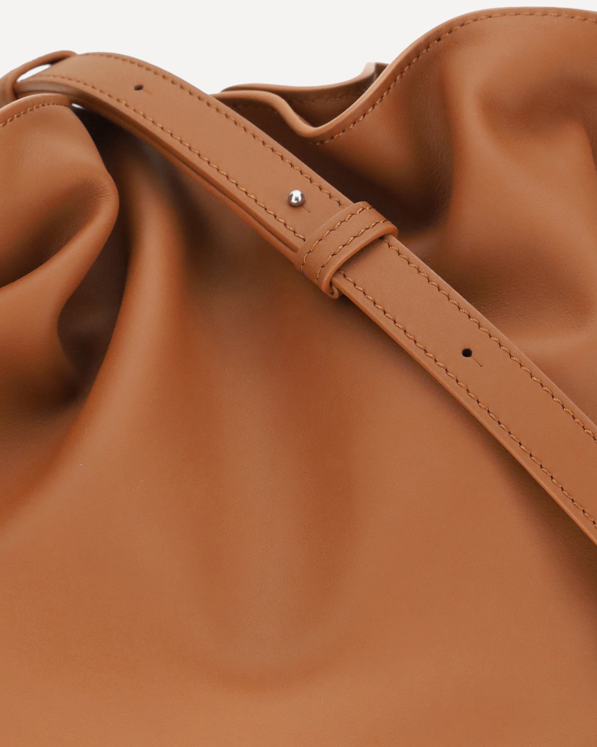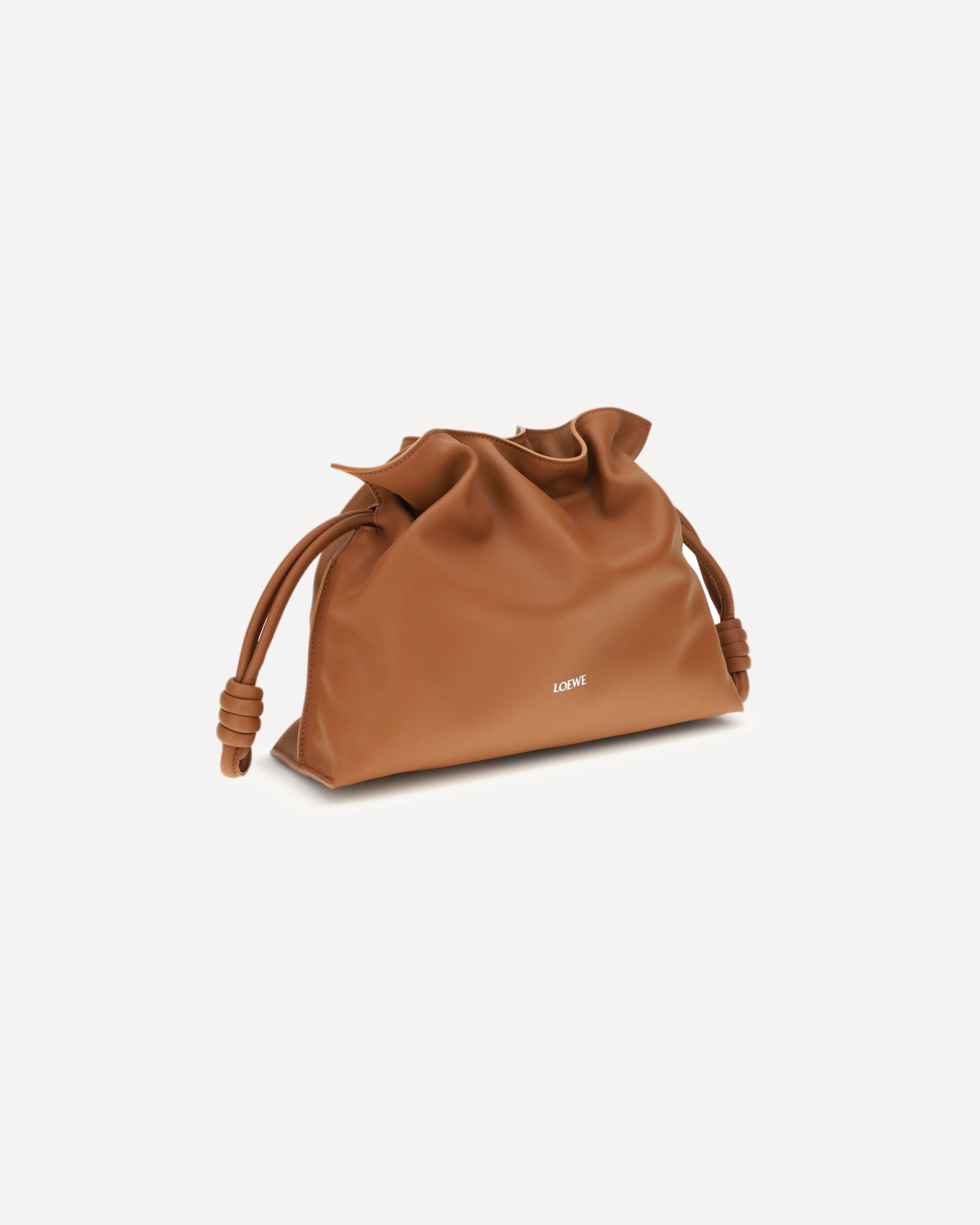 The Loewe Flamenco mini leather Pouch Bag features a magnetic top closure, enriched by a drawstring with the characteristic spiral leather knots, which enhance its distinctive design. The flat leather shoulder strap is removable and adjustable, offering versatility in use. The iconic logo of the brand is pressure-printed on the front, adding an elegant touch. The interior is a single compartment, perfect for carrying essentials. A sophisticated and practical accessory, perfect for any occasion.