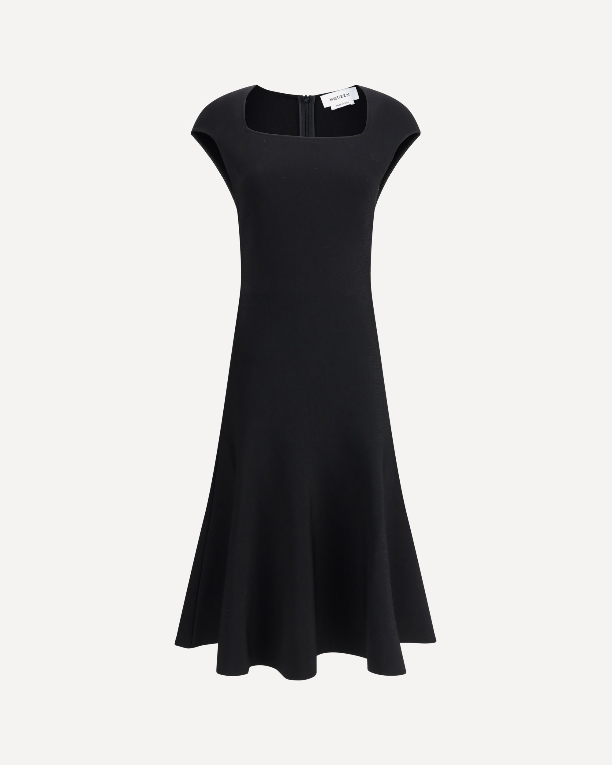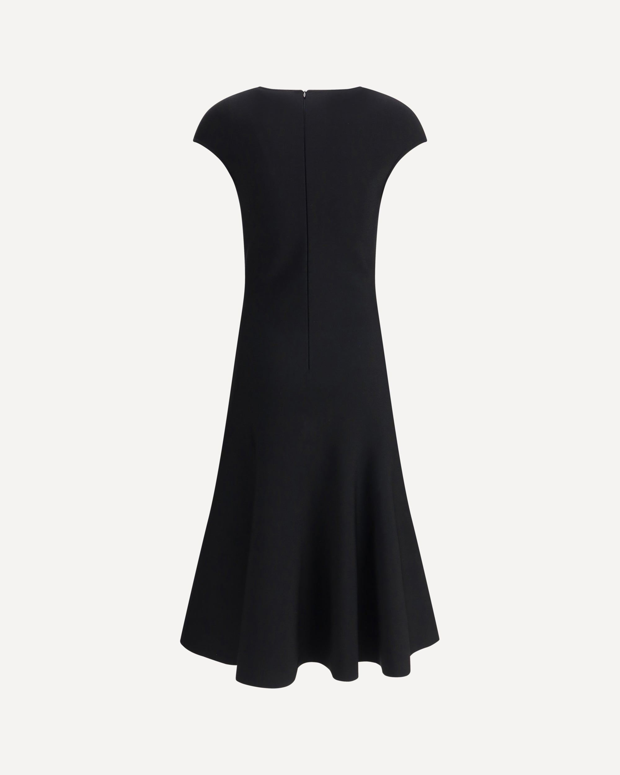 The Alexander McQueen flared mini Dress is a piece that combines elegance and modernity. Featuring a square neckline at the front, the dress has a zipper closure on the back panel, ensuring a perfect fit. The fitted silhouette enhances the figure, while the mini length and flared cut of the skirt add a dynamic and sophisticated touch. Perfect for special occasions, this dress is a contemporary interpretation of femininity.