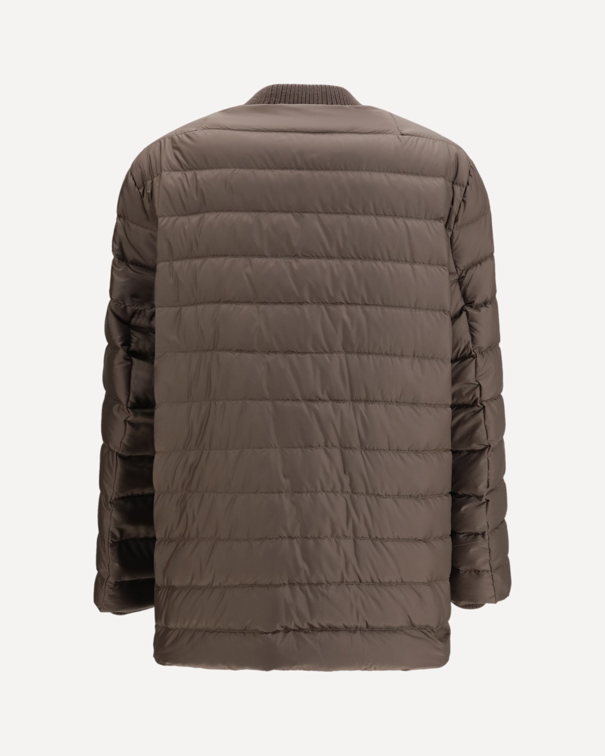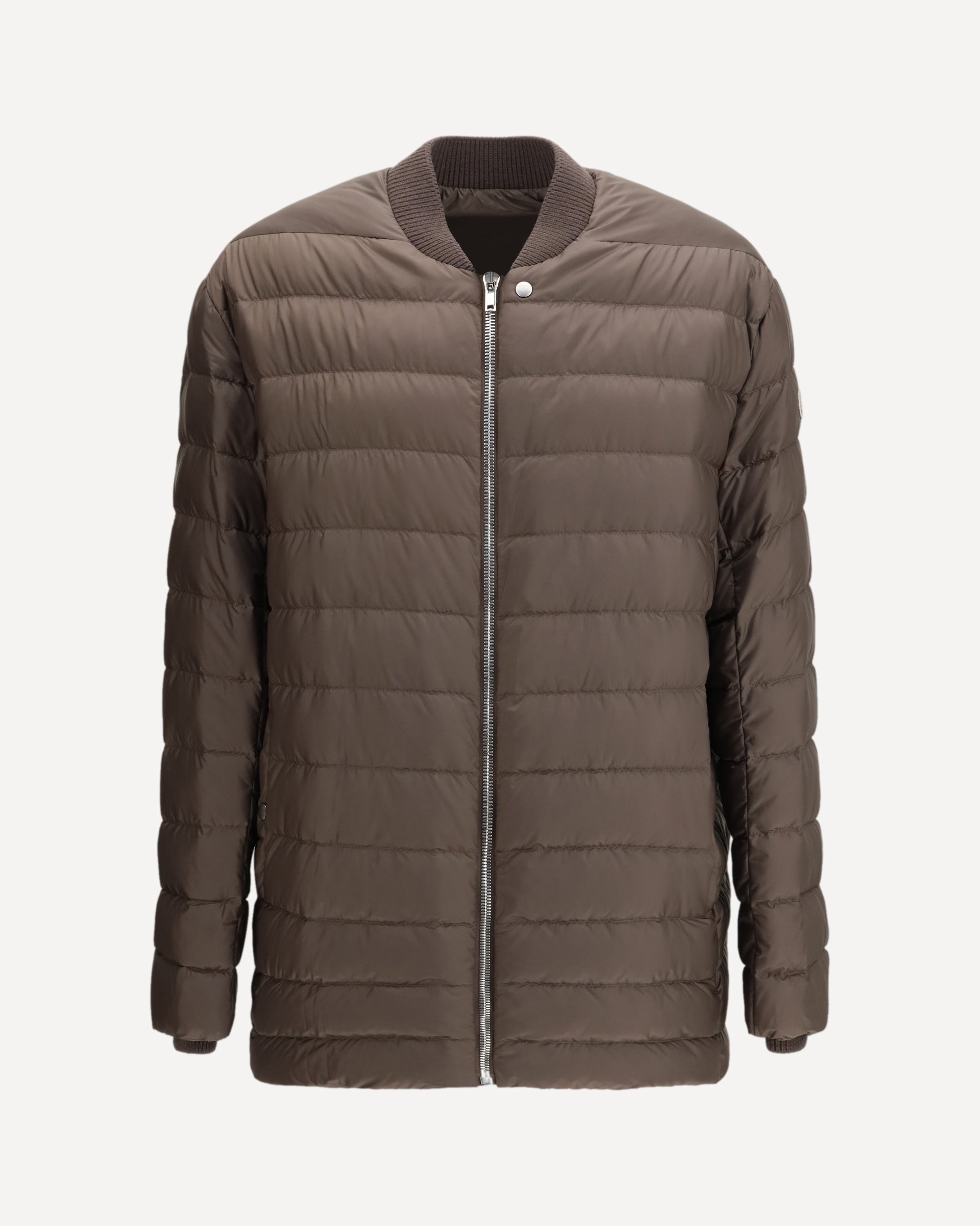 The Flight Down Jacket by Moncler + Rick Owens is a lightweight, quilted style, ideal for a practical and stylish look. The wool cuffs and collar offer comfort and warmth, while the front zip closure ensures a secure fit. The two side welt pockets add functionality, and the iconic patch sewn onto the left arm completes the design, giving the garment a distinctive and contemporary touch. A versatile down jacket that combines comfort and sophistication.