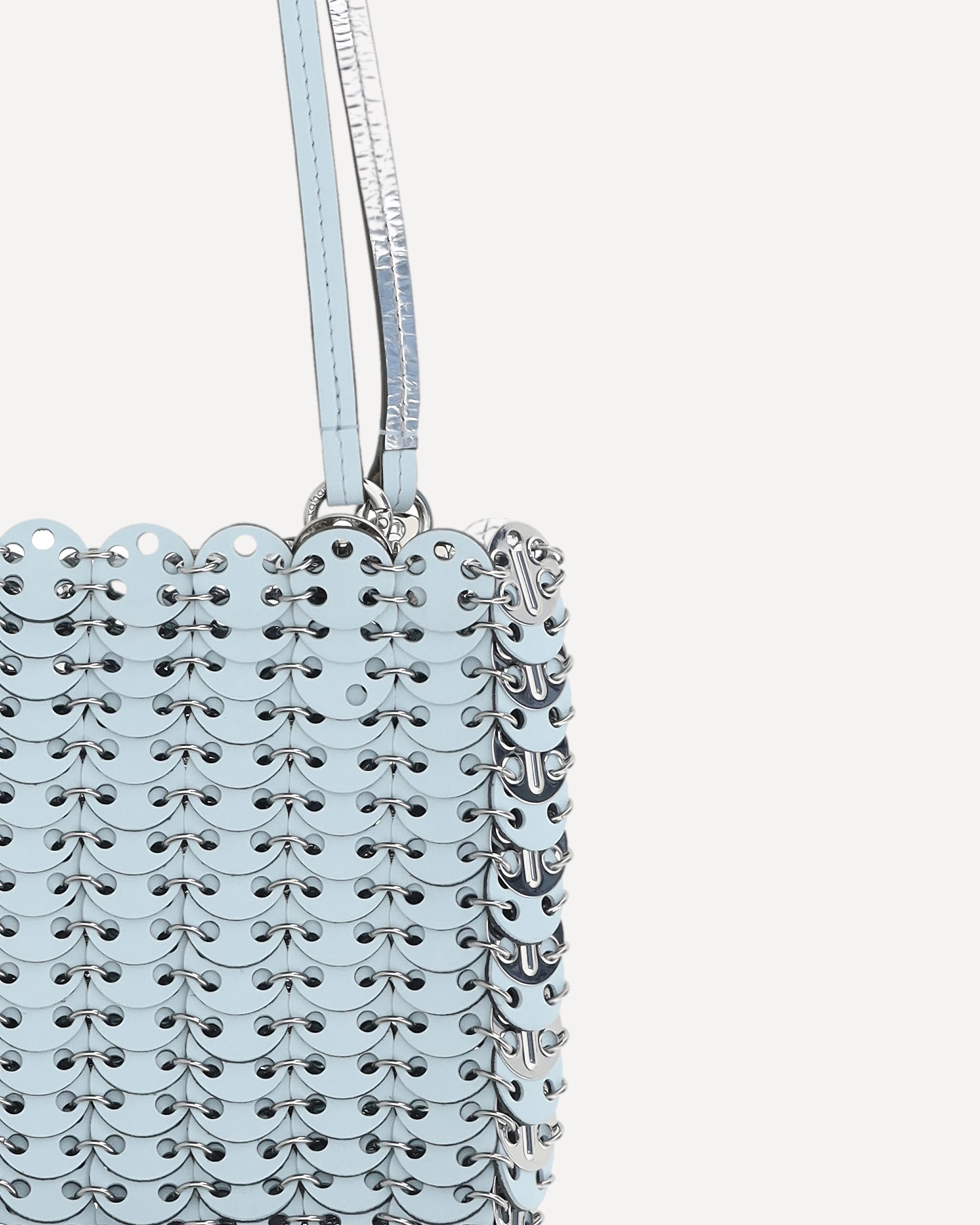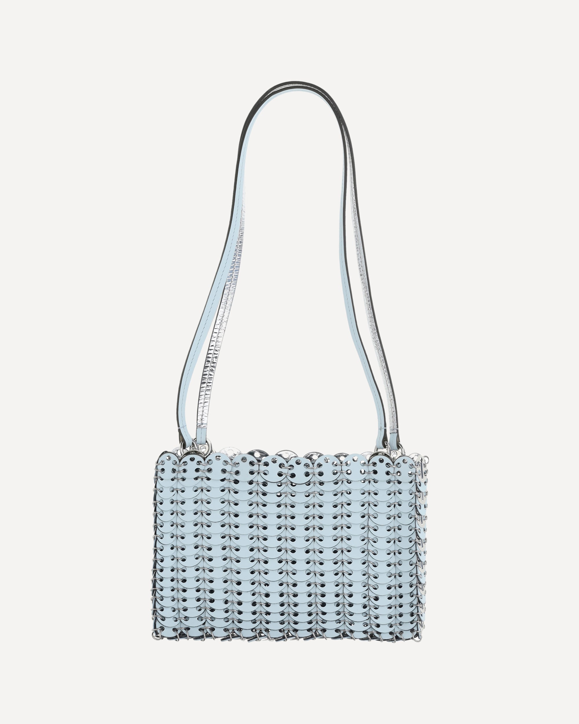 Rabanne's Flip 1969 Shoulder Bag is a style icon with a reversible design that offers versatility and modernity. Featuring two long, flat handles, it is comfortable to wear on the shoulder. The open top adds a touch of practicality, while the disc detail, the brand's iconic symbol, completes the look with a distinctive, contemporary accent. Perfect for those seeking a unique accessory with an innovative design.