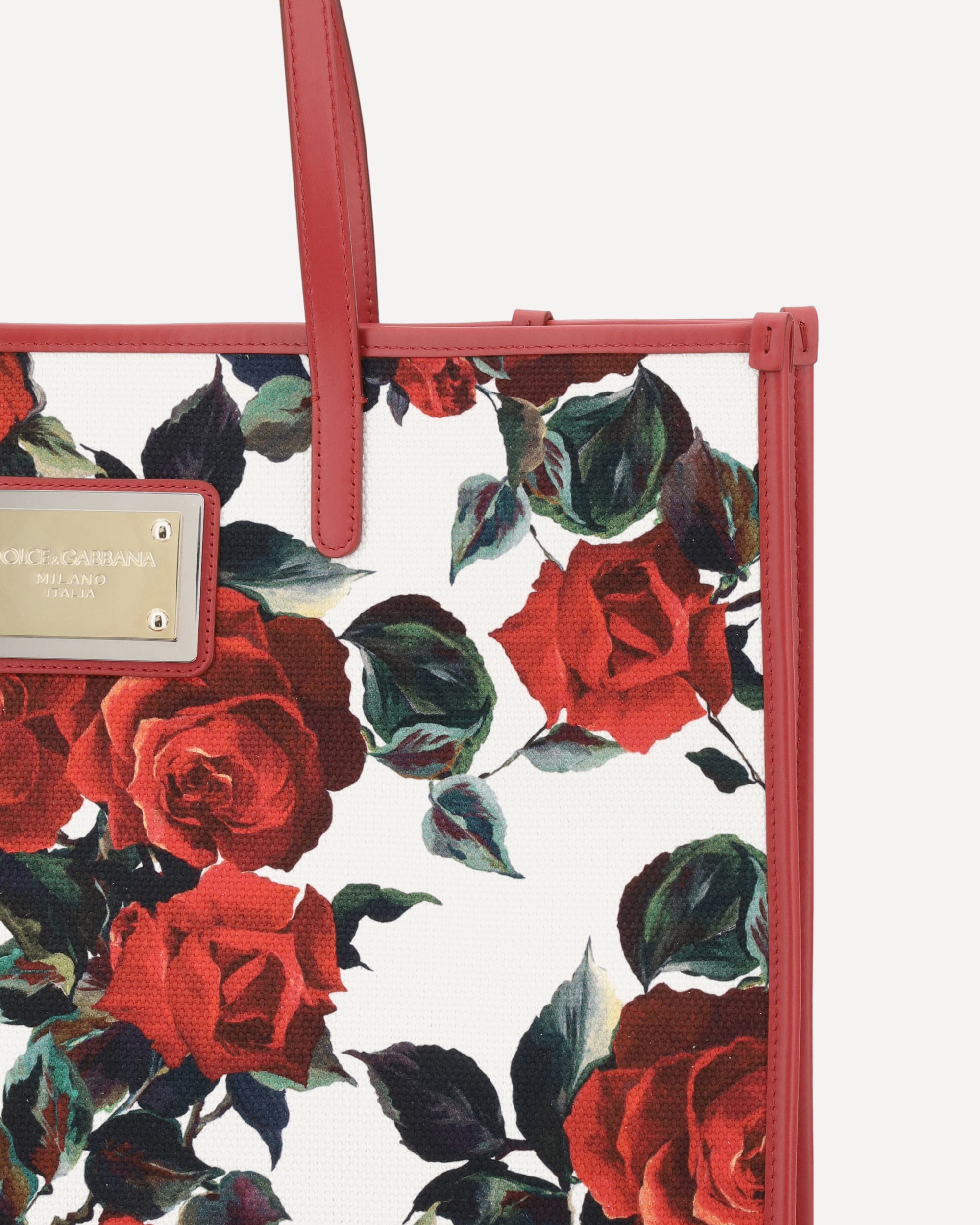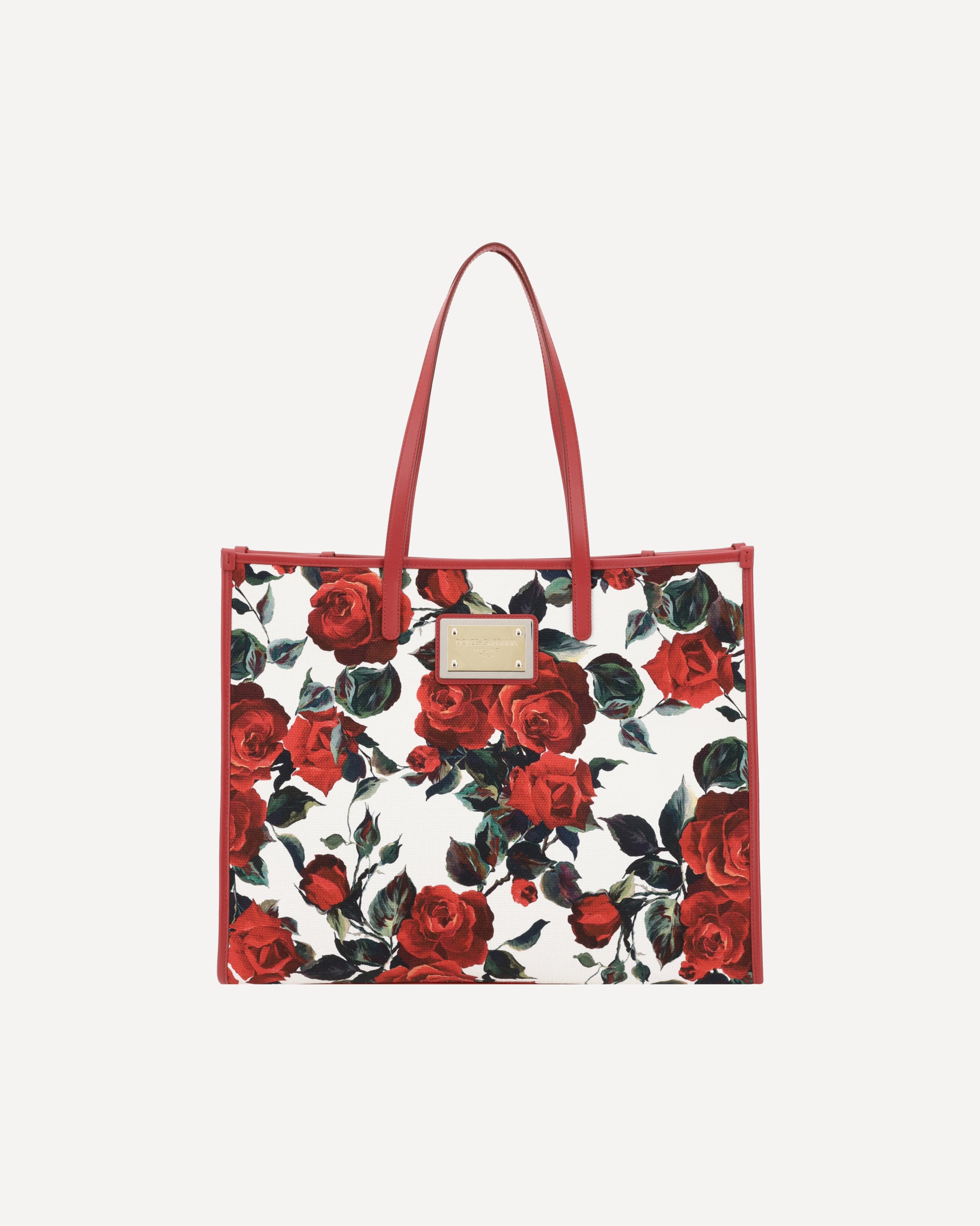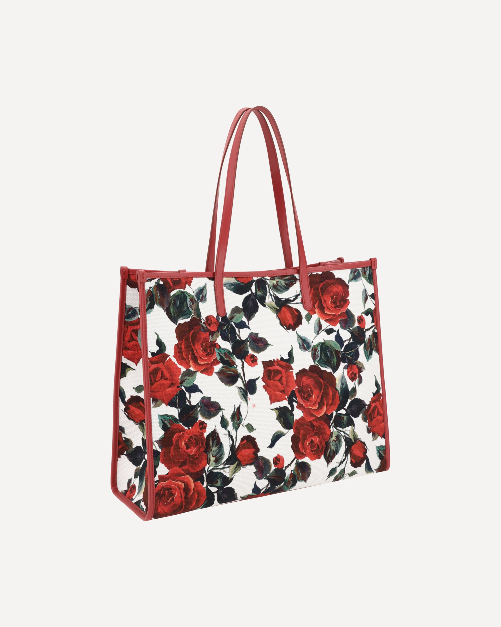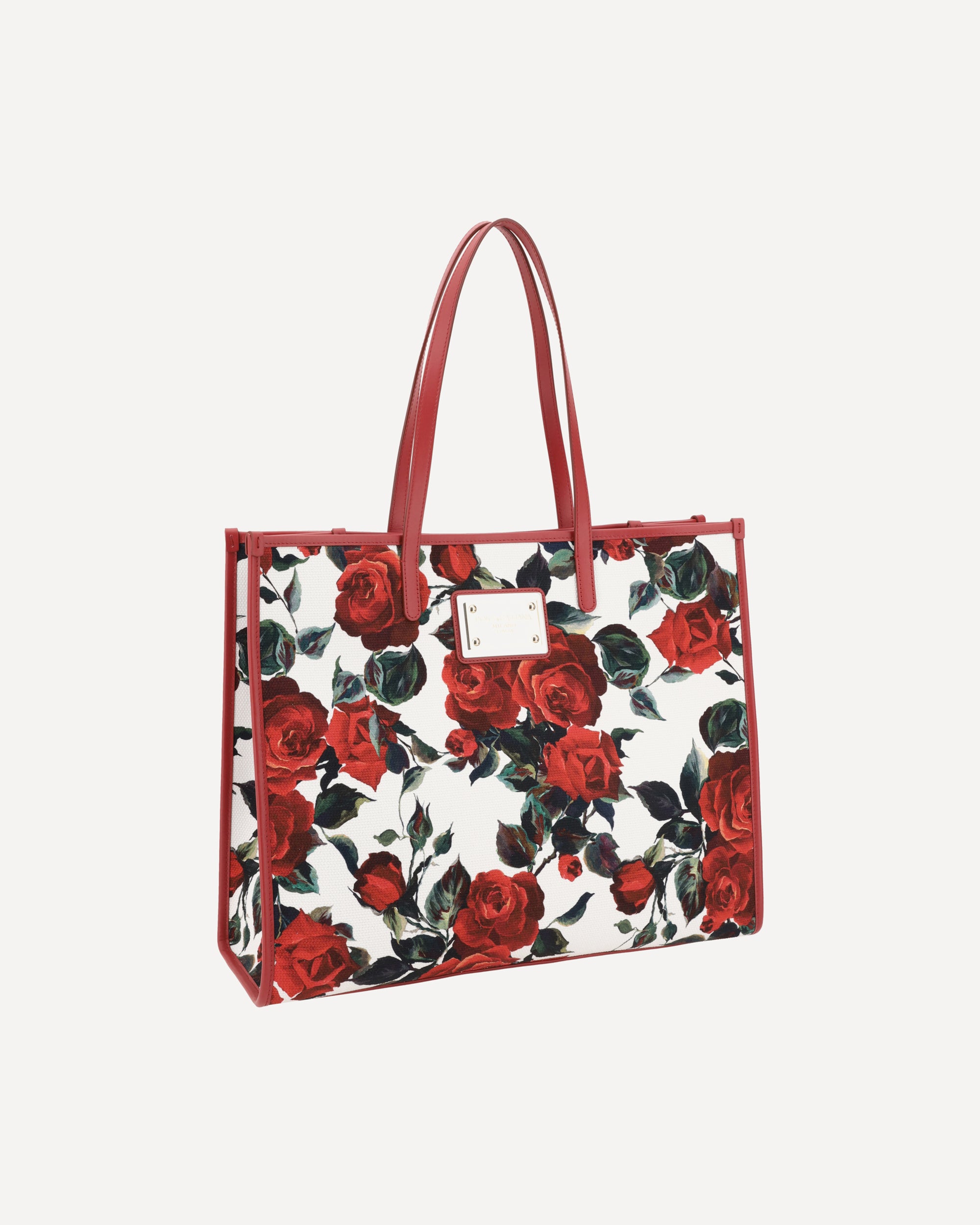 Dolce&Gabbana's Tote Bag features two flat leather handles, offering comfort and practicality. Applied logo hardware on the front adds a distinctive and luxurious touch. The vibrant floral print gives a fresh and feminine look, perfect for the season. Inside, the bag features a single compartment, ideal for storing your belongings neatly. A perfect mix of elegance and functionality, perfect for any occasion.