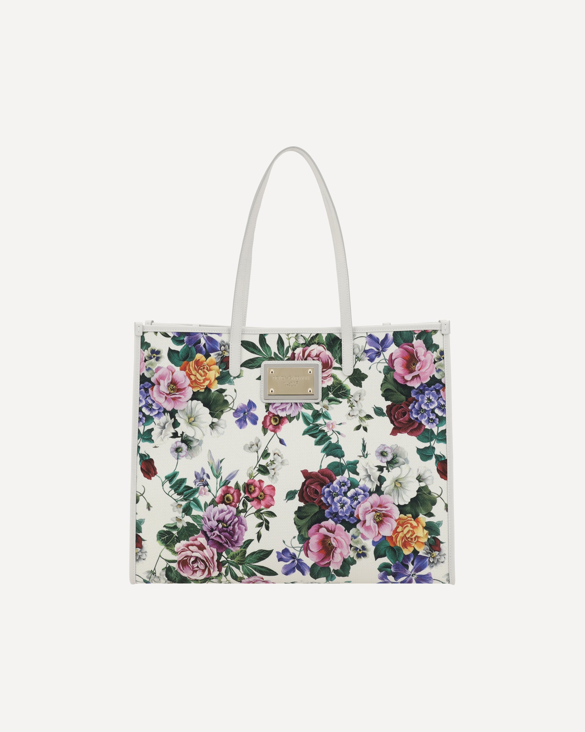 Dolce&Gabbana's Tote Bag features two flat leather handles, offering comfort and practicality. Applied logo hardware on the front adds a distinctive and luxurious touch. The vibrant floral print gives a fresh and feminine look, perfect for the season. Inside, the bag features a single compartment, ideal for storing your belongings neatly. A perfect mix of elegance and functionality, perfect for any occasion.