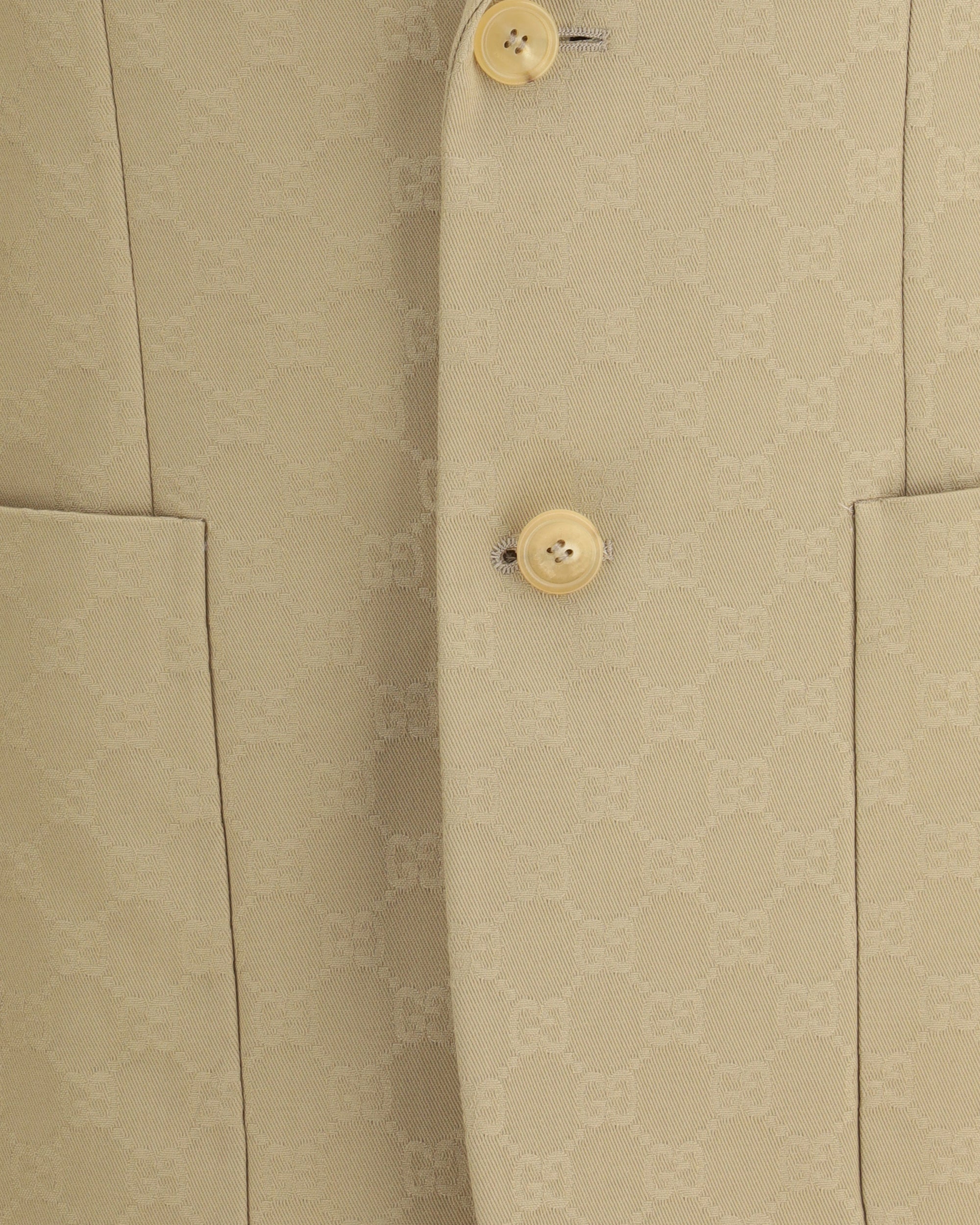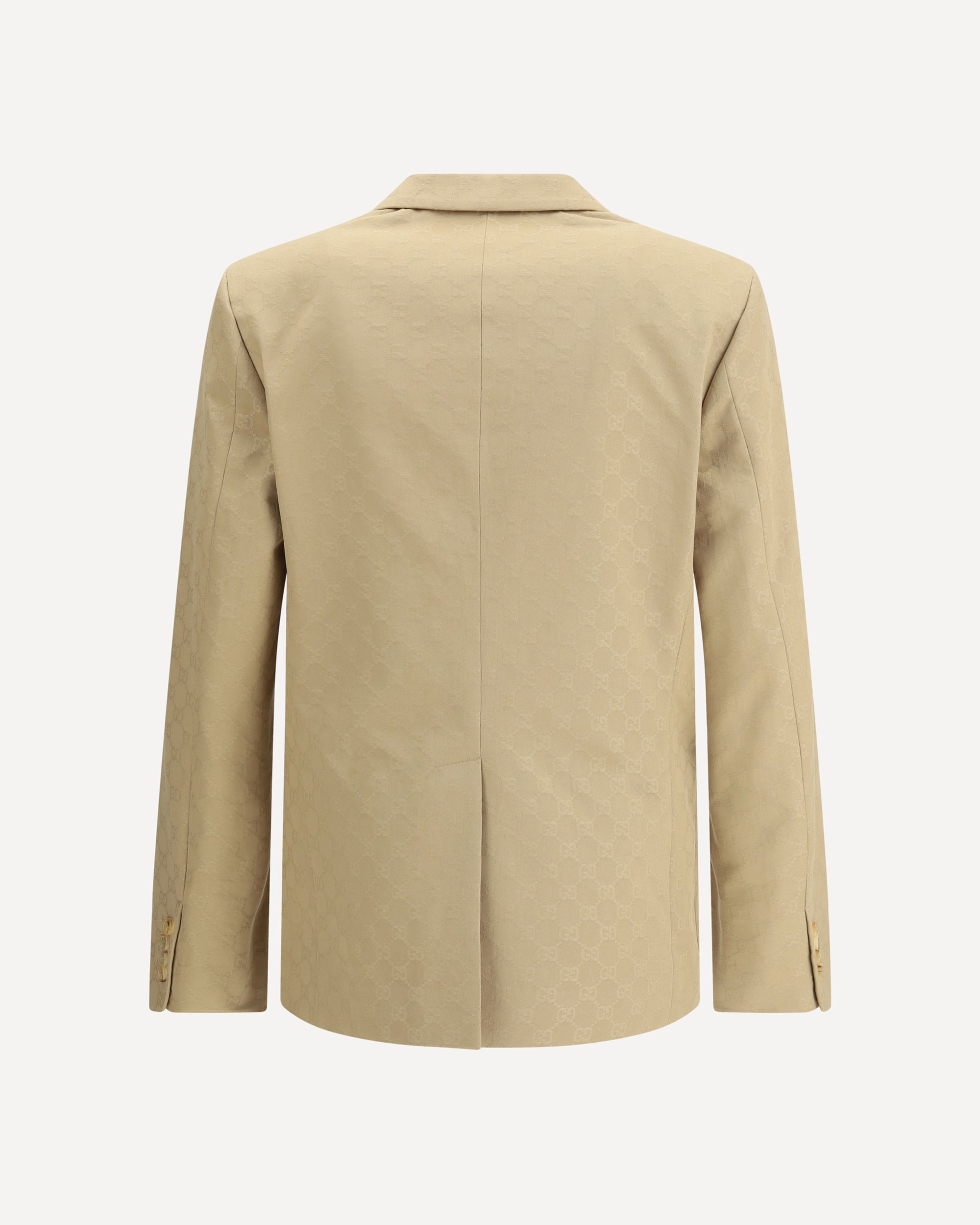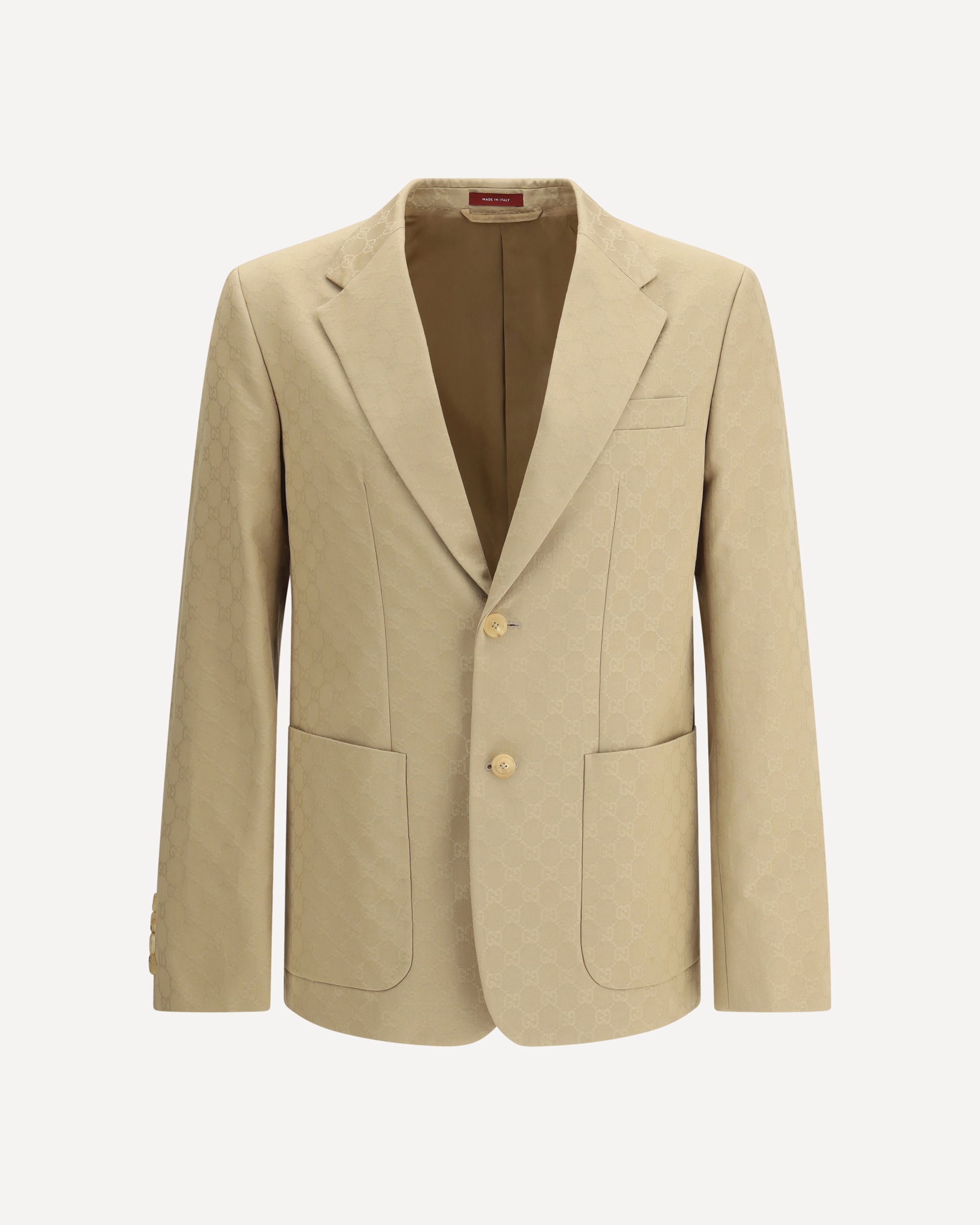 Gucci's GG jacquard blazer is an elegant and distinctive piece made of jacquard fabric with the iconic GG pattern. Fully lined, it features a single-breasted button closure, notch lapels, a chest pocket and two front pockets. A perfect balance of sartorial tradition and contemporary style.