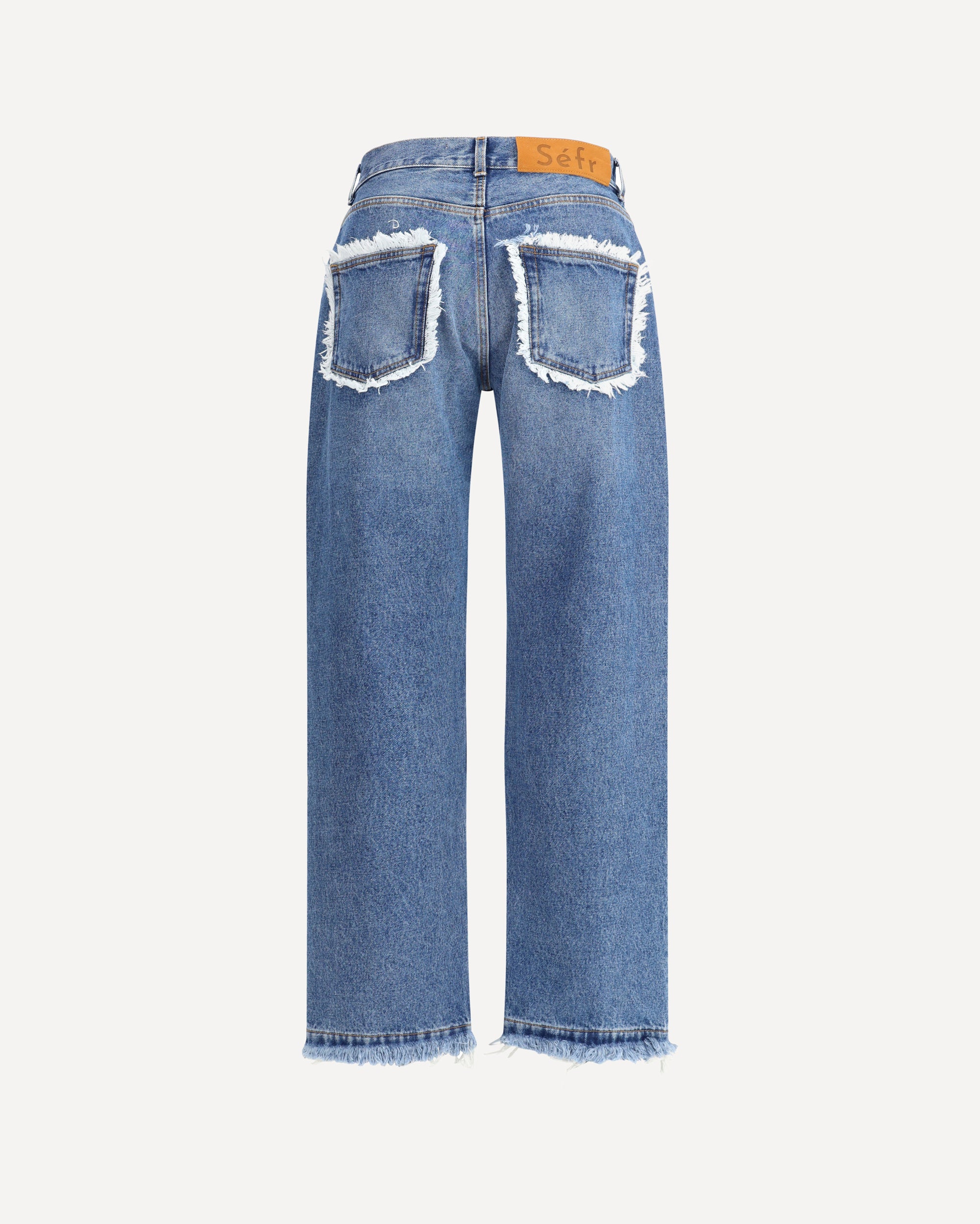 The Cotton Jeans Frayed Cut by Sèfr are crafted from a 13oz Italian Cotton twill, selected for its durability and authentic character. The five-pocket construction, slightly higher waist, and fringed details on the back pockets highlight a contemporary spirit. A raw hem enhances the essential aesthetic, while the regular fit and straight leg create a versatile piece that effortlessly blends tradition with modernity.