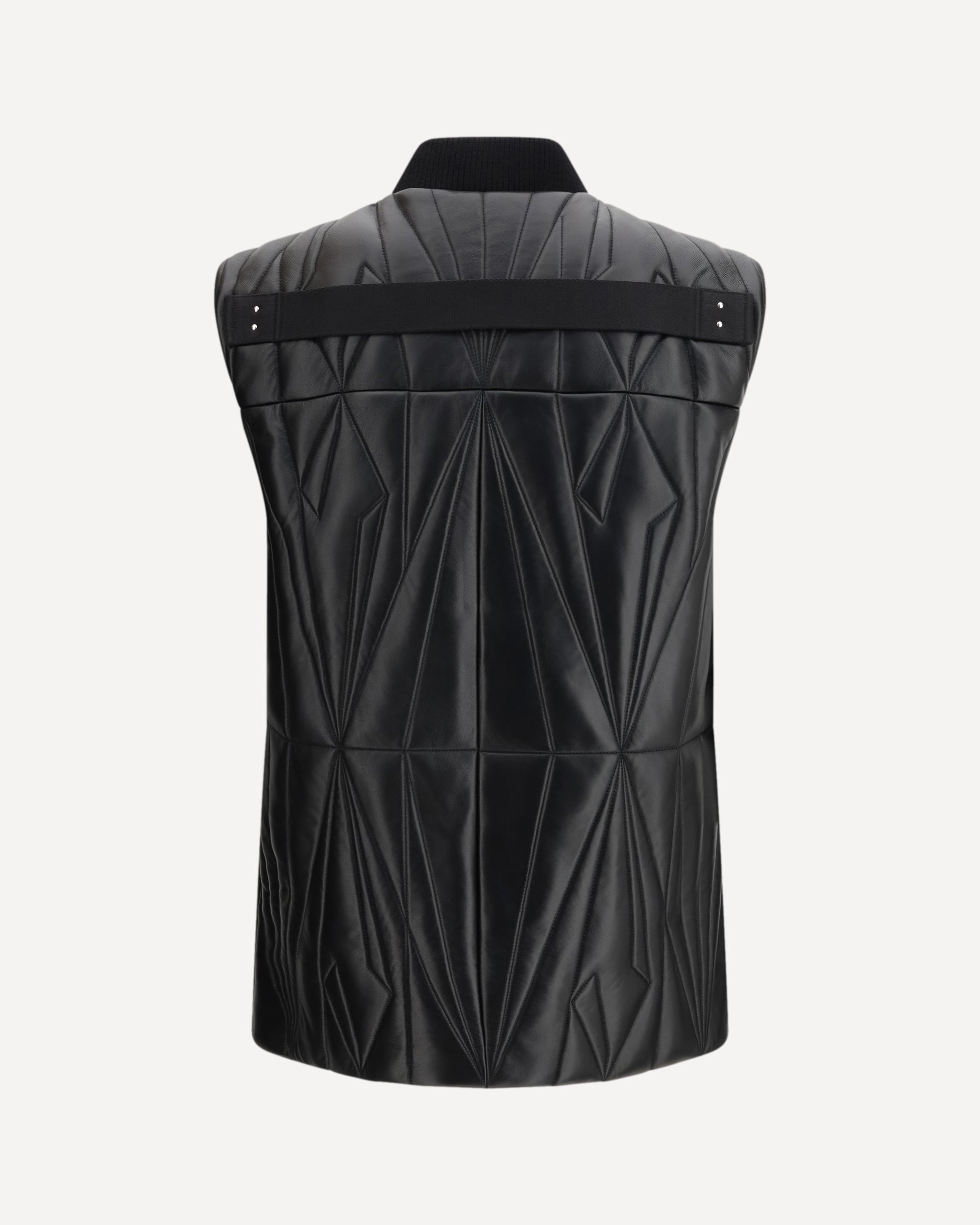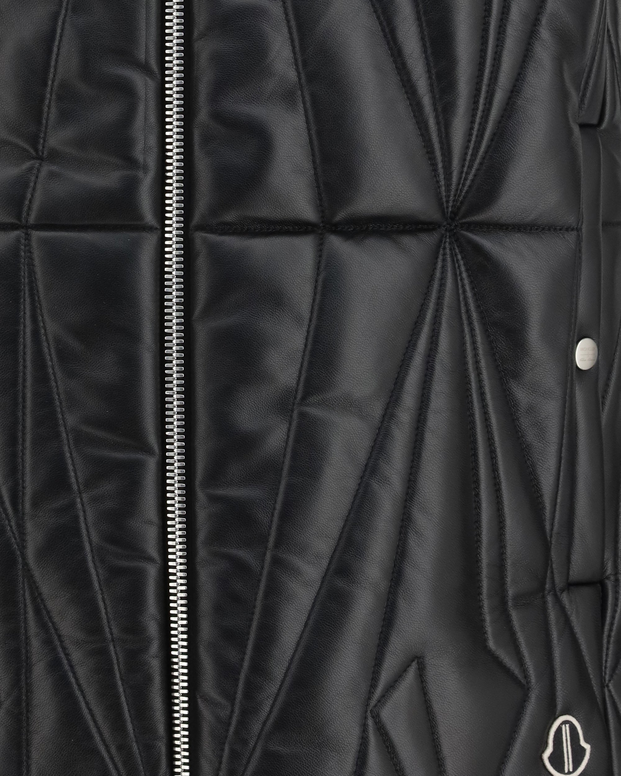 The Geocamo Flight Vest by Moncler + Rick Owens is a bold and sophisticated piece. Crafted from quilted leather with a geometric pattern, it offers a unique texture and a modern design. The ribbed wool collar adds a warm and stylish touch, while the front zip closure ensures practicality and comfort. Two side welt pockets with buttons complete the look, offering functionality without sacrificing class. The iconic logo patch applied at the bottom of the front adds the finishing touch, making this vest a distinctive and contemporary piece.