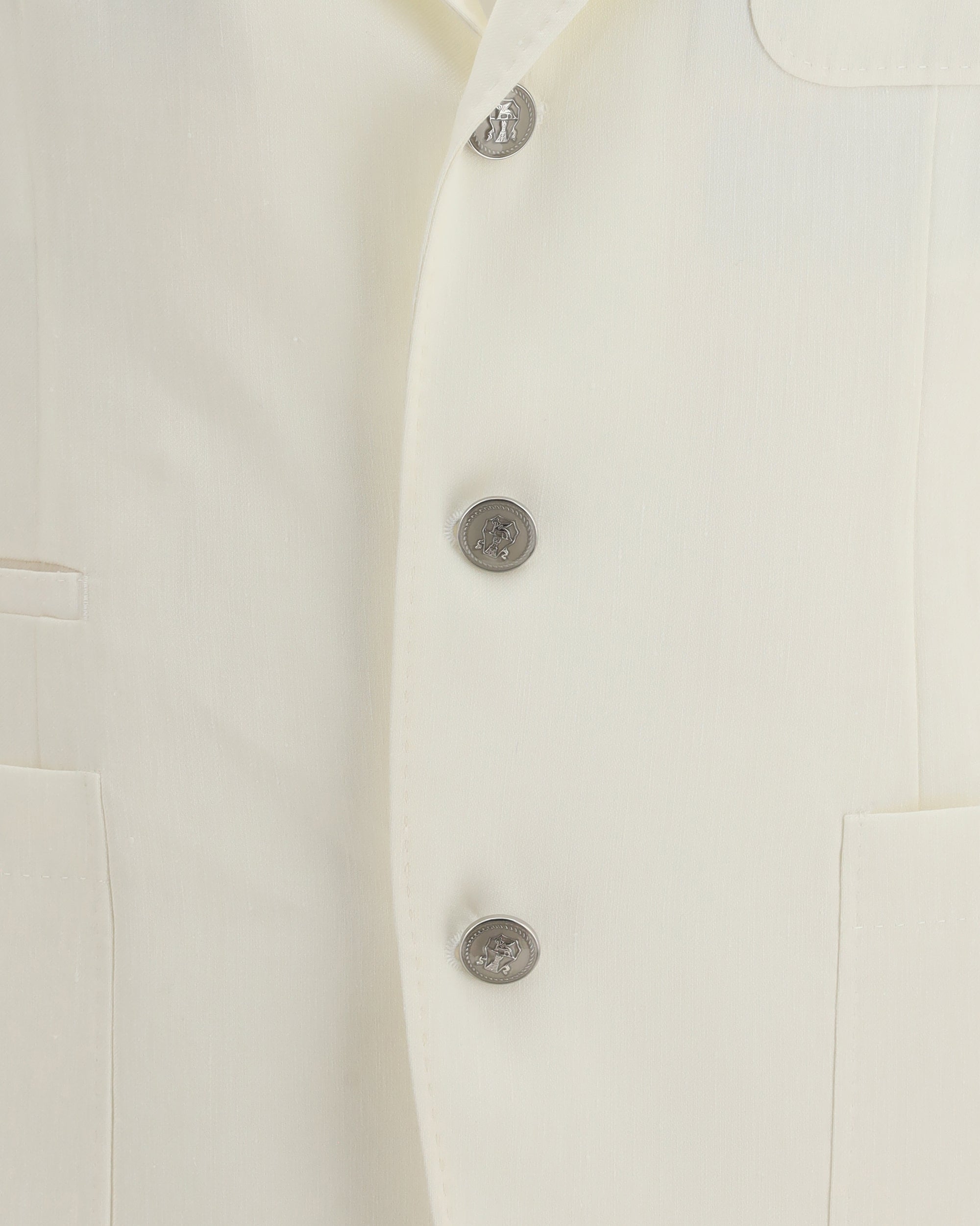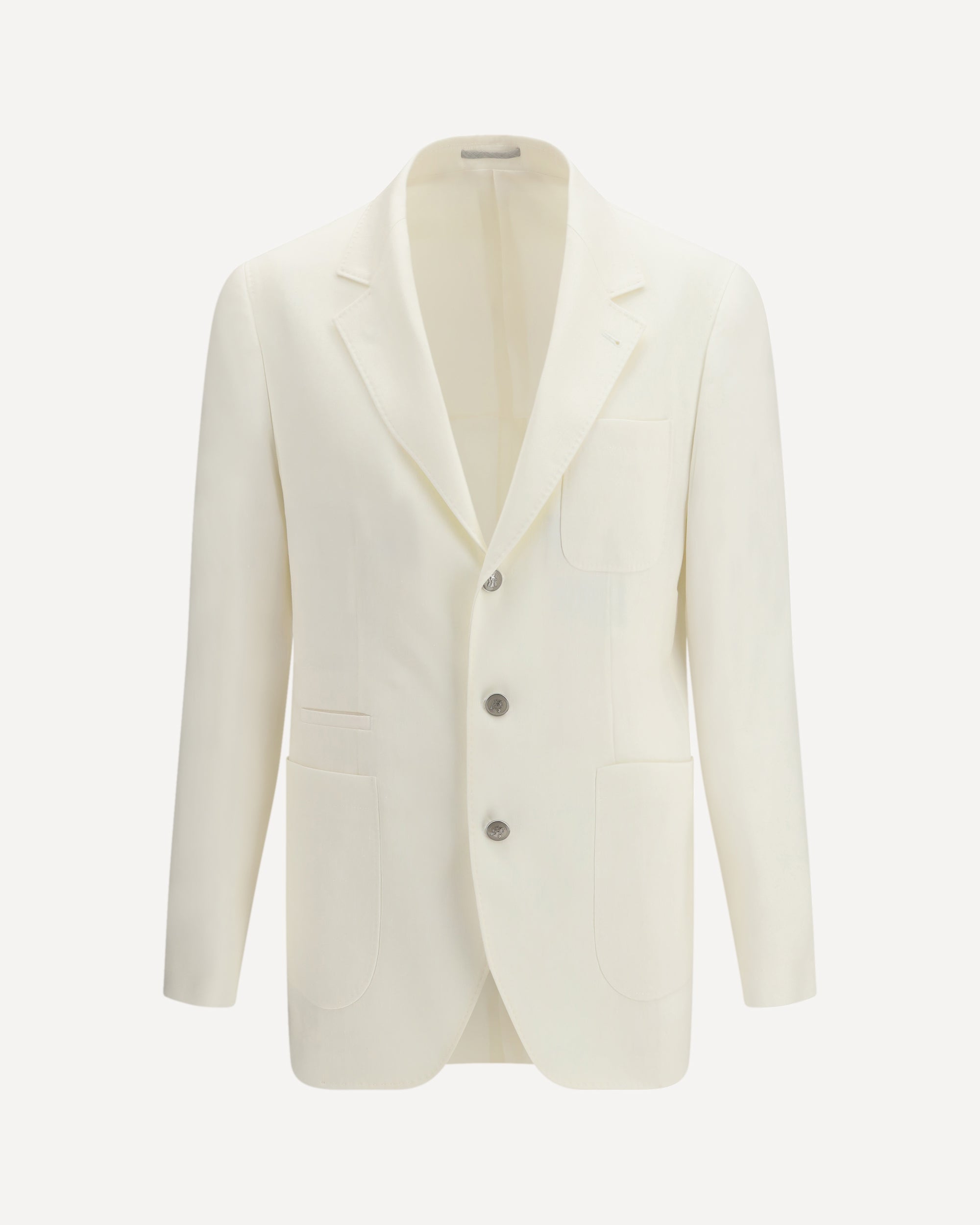 The single-breasted linen Blazer by Brunello Cucinelli embodies a refined sartorial elegance with a clean, contemporary character. Crafted from a linen and wool blend, it features a straight-cut silhouette with classic lapels and button fastening. Buttoned cuffs adorned with the brand emblem, three patch pockets and a front welt pocket define the design, while two back vents ensure comfort and ease of movement.