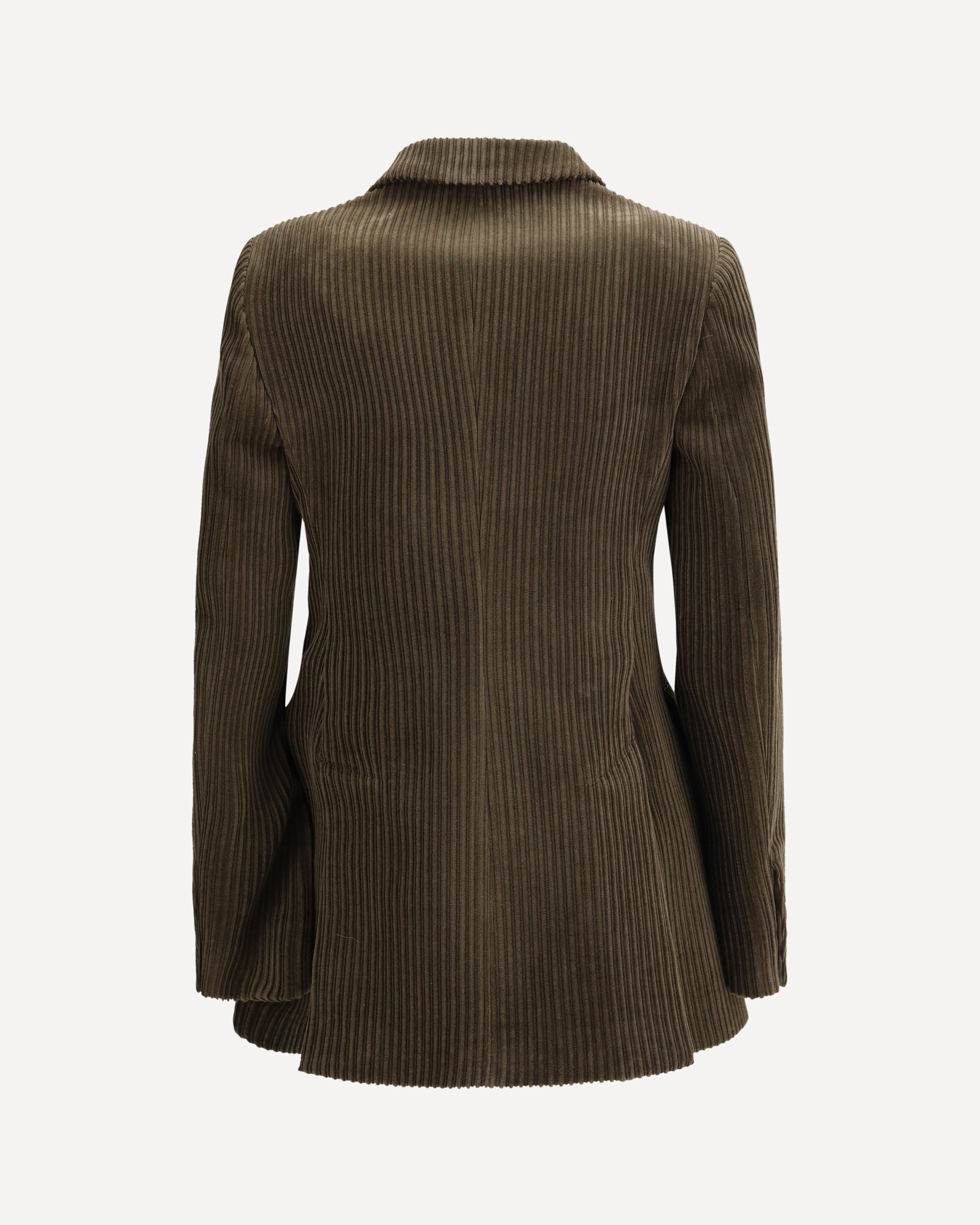 The dark green double-breasted Parosh blazer is crafted in a ribbed fabric, featuring an elegant and refined design. It comes with a double-breasted closure, classic lapels, welt pockets, and long sleeves, combining classic style and versatility to complete formal and sophisticated looks