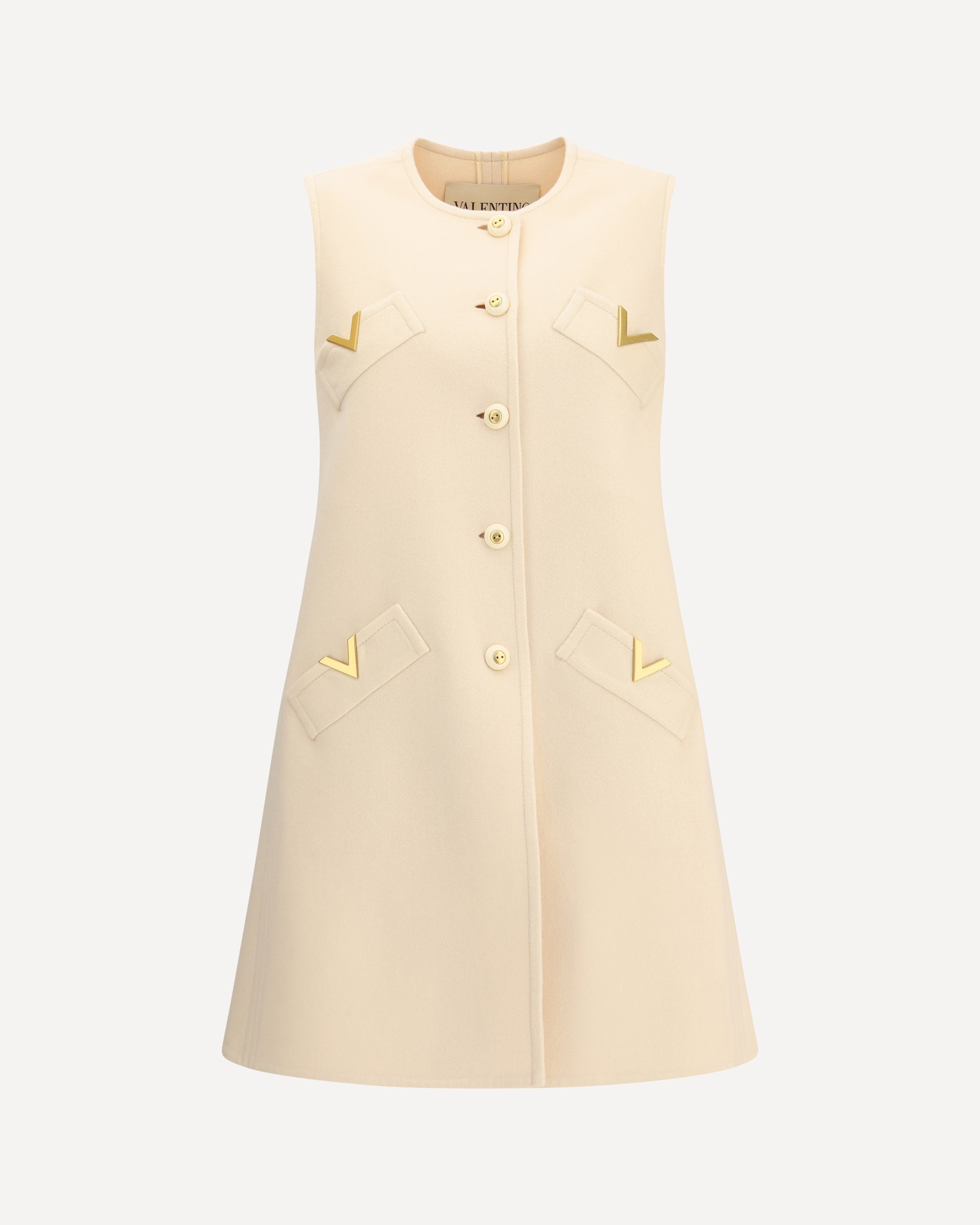 Valentino's compact drap long Vest is made from a fine blend of virgin wool and cashmere, providing comfort and warmth. It features a front button closure and four welt pockets on the front, embellished with the gold V logo for a touch of class and sophistication.